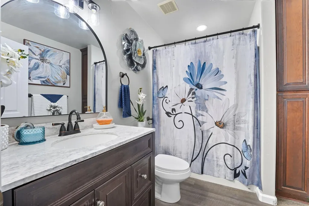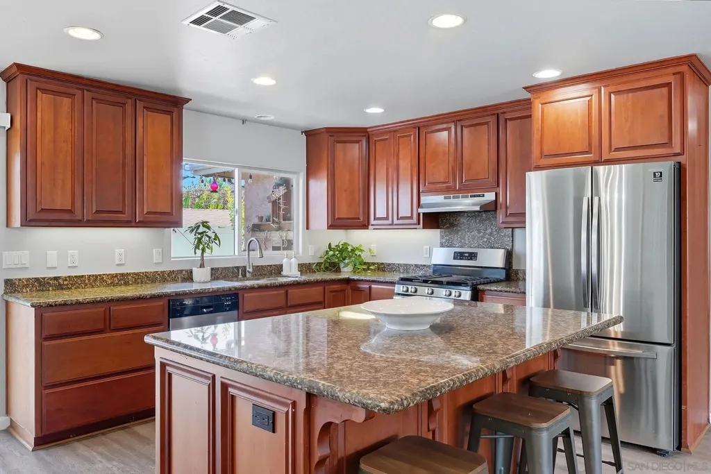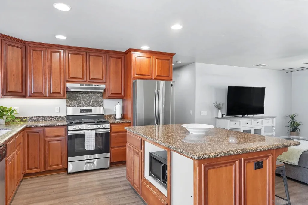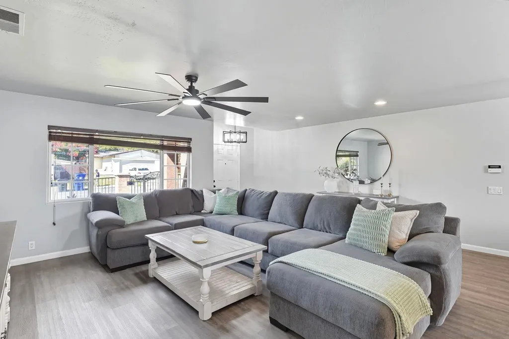 Welcome home! Completely rebuilt from the ground up in 2005, this single-story gem combines elegance, privacy, and convenience. The open floor plan is perfect for families and entertaining alike. The gourmet kitchen features stainless steel appliances and an oversized island for extra storage and seating, flowing seamlessly into the dining area and spacious living room. A hallway lined with abundant cabinets ensures plenty of storage throughout. The primary suite offers a private retreat with a luxurious oversized ensuite and walk-in closet. Outside, entertaining continues with multiple sitting areas and the added privacy of a corner lot. A gated entrance provides extra security, and there's optional RV parking for convenience. Just minutes from the 125 Freeway, this home truly has it all.