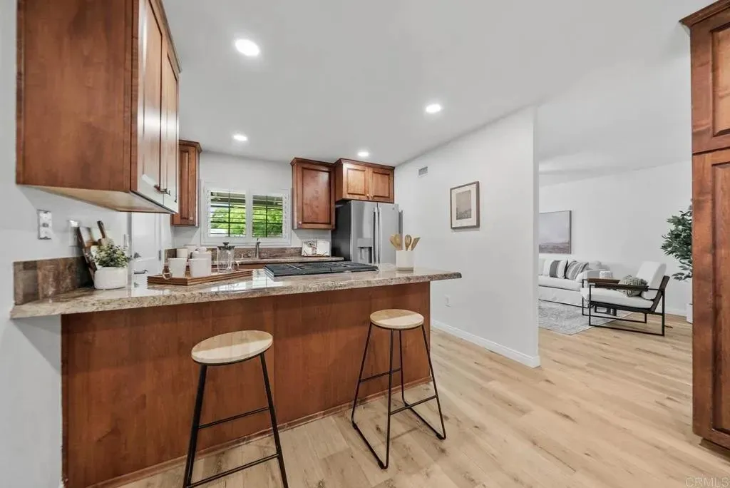 Welcome to this stunning 4-bedroom, 2-bath beauty in the heart of Santee! From the moment you arrive, you'll be impressed by the custom paver driveway and fresh interior paint that gives this home a bright, updated feel. Inside, enjoy brand new flooring throughout and a gorgeously remodeled kitchen perfect for hosting and everyday living. Step outside to your own entertainers paradisefeaturing a covered patio, sparkling crystal-clear pool, and a spacious, low-maintenance yard with room to party or relax. Bonus: Paid solar keeps energy bills low! Located in a lovely family-friendly neighborhood, youre just minutes from shopping, dining, parks, Cajon Park K-8, Santana High School, and all the amazing community perks that Santee has to offer. This home checks all the boxesstyle, space, and a lifestyle youll love!