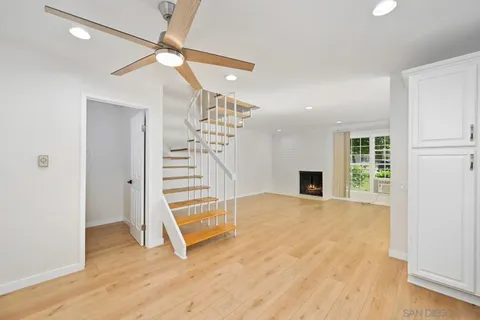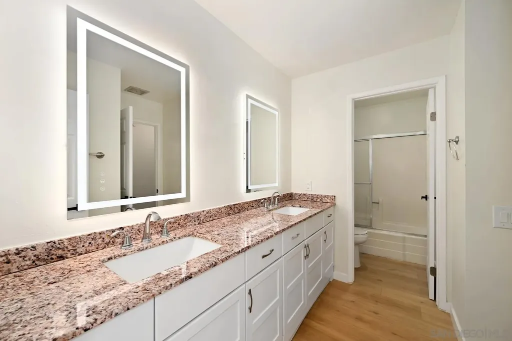Stylish End-Unit Townhome in the Heart of Mira Mesa with $20K in upgrades! Tucked within the highly desirable Playmor community, this beautifully refreshed end-unit townhome offers a perfect balance of comfort and modern style. Step inside to find a bright, open interior featuring new luxury waterproof vinyl plank flooring, freshly painted walls, cabinetry, and doors, and new baseboards, fixtures, and finishes throughout. The kitchen showcases granite countertops and a brand-new oven and range, while both bathrooms have been thoughtfully updated with LED mirrors, modern lighting, and a new shower door. Additional upgrades include new ceiling fans, closet doors, and bedroom doors, creating a crisp, contemporary feel in every room. Enjoy the privacy of your own fenced patio, ideal for relaxing or entertaining, complete with the convenience of in-unit laundry. The well-maintained Playmor community features lush greenbelts and mature trees, offering a serene atmosphere just steps from your door. With two assigned parking spaces (one covered carport and one open space) and an unbeatable location close to top-rated schools, shopping, dining, and freeway access, this move-in ready home delivers easy living in one of Mira Mesa's most sought-after neighborhoods. Modern comfort, unbeatable convenience, and peaceful surroundings - this one has it all!
