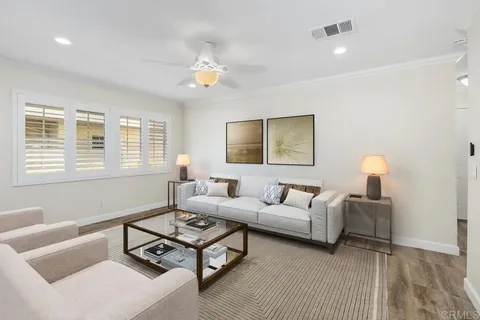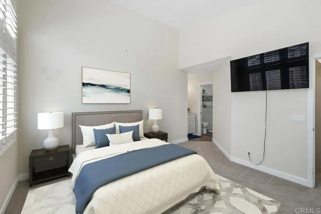 Price reduction!! Move in ready 3-bedroom, 2.5-bath located in the highly sought-after Magnolia Lakes community in the heart of Santee. Perfectly positioned adjacent to the sparkling community pool, spa, and tranquil fountains, this home offers residents a resort-style living experience. Step inside to a bright and inviting floor plan filled with natural light and designed to maximize both space and comfort. The kitchen features white cabinetry, refrigerator, gas range, microwave, and dishwasher. A dedicated dining area flows seamlessly into the spacious living room, creating the perfect setting for both everyday living and entertaining. Upstairs, youll find three bedrooms and two bathrooms. The primary suite is a private retreat, complete with an ensuite bathroom featuring a beautifully tiled walk-in shower. Additional highlights include a whole-house attic fan, plantation shutters, ceiling fans, recessed lighting, crown molding, neutral paint, and ample storage throughout. Outside, enjoy a fully fenced patio ideal for potted plants, outdoor dining, or a play area for pets. This home also includes a one-car garage plus an additional assigned parking space. HOA monthly fee covers water, trash and sewer.