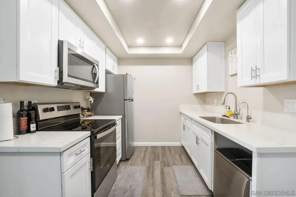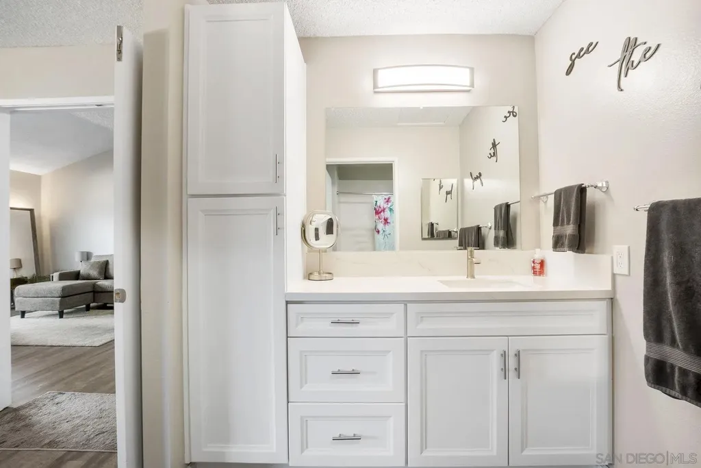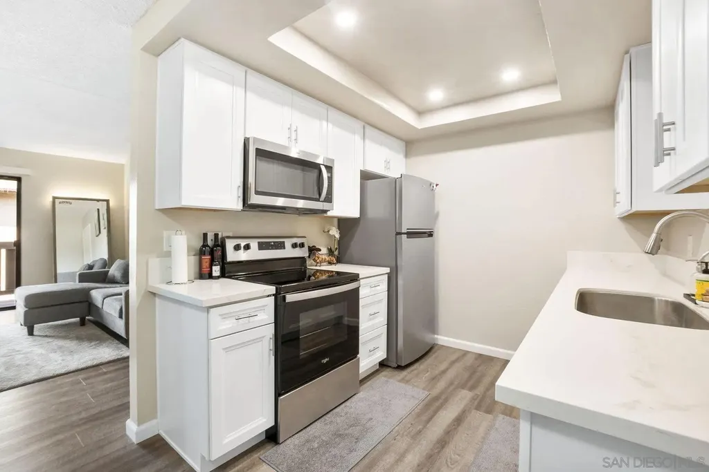 Welcome home to this beautiful, turnkey 1-bedroom condo in the lovely Quail Creek community. This second-floor unit offers added privacy with no one above, and features a fully renovated kitchen with modern cabinetry, sleek countertops, and newer stainless steel appliances. Enjoy updated light fixtures throughout and upgraded GFCI outlets for safety and peace of mind. Bright and open layout with abundant natural light. Move-in ready and perfect for first-time buyers or investors. Conveniently located near the 15 freeway (without any freeway noise), Miramar College, Miramar base air station, shopping centers and a 23 minute drive to La Jolla Beach. Enjoy the community pool and tennis courts as well! Don't miss your opportunity to live in this low-maintenance home!