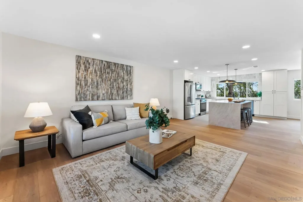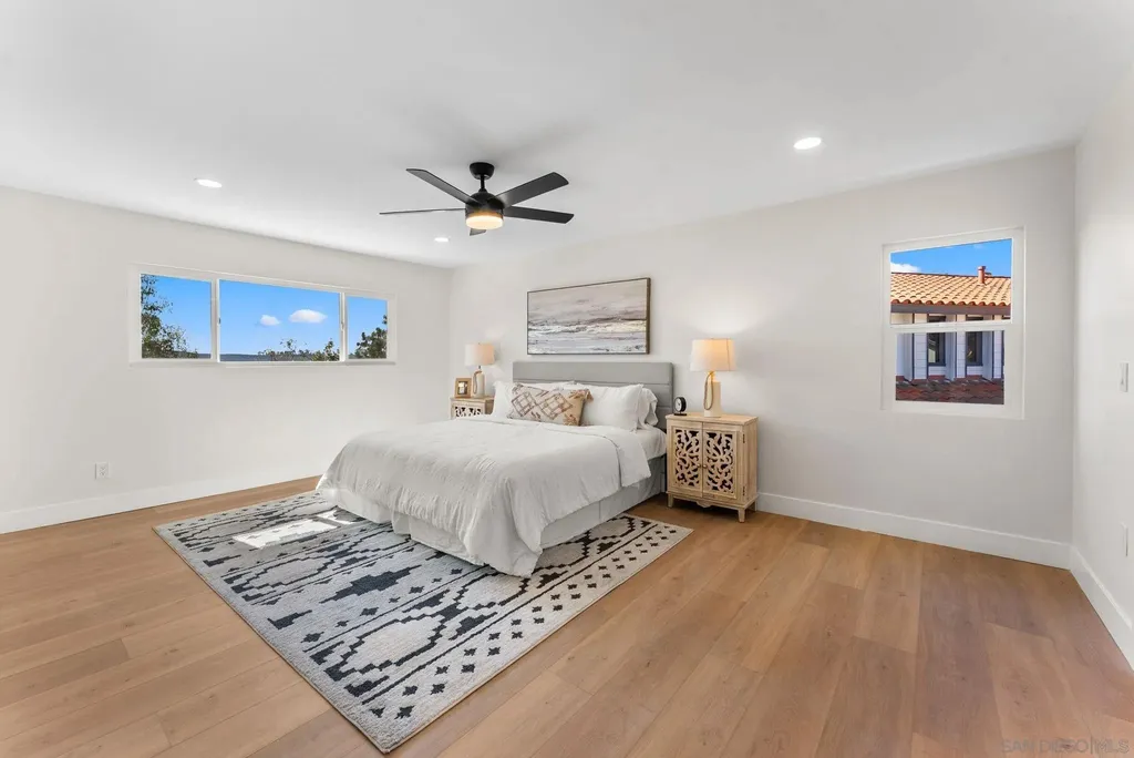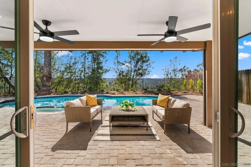 Dwell West presents this beautifully renovated 4-bedroom, 2.5-bath home with 2,464 sq. ft. in the desirable Scripps Ranch community. Located at the end of a cul-de-sac with a private backyard, this home offers style and comfort inside and out. Exterior updates include new landscaping with sod, mulch, and a full irrigation system, fresh exterior paint, and a fully replastered pool with new Pentair lighting. Inside, upgrades include new LVP flooring, interior paint, lighting, doors, and hardware. The kitchen features white shaker cabinets, a large oak island with waterfall edges and quartz counters, stainless-steel appliances, and modern fixtures with updated hardware. Bathrooms include updated vanities, tiled shower and tub surrounds, and contemporary finishes. Enjoy energy efficiency with dual-pane windows throughout and a new HVAC system. Conveniently located near top-rated schools, shopping, and restaurants, this turnkey home showcases the best of Scripps Ranch living.