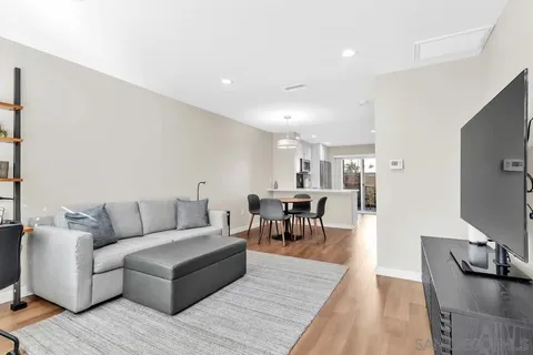 Fully rebuilt in 2022, this stunning 2-bedroom, 1-bathroom home offers modern finishes and thoughtful upgrades throughout. Enjoy new plumbing, wiring, HVAC, drywall, and dual-pane windows for efficiency and comfort. Engineered wood flooring enhances the main level, with carpet upstairs for a cozy touch. The upgraded kitchen and bathroom feature modern cabinetry and countertops, and the primary bedroom includes a walk-in closet. Convenient built-in USB chargers in electrical. Outdoor living shines with a spacious covered patio featuring concrete, turf, and extra storage space. The property also offers a 2-car tandem carport with additional storage. The Carefree community boasts lush landscaping, a sparkling pool and a great location close to schools, shopping, dining, and Mission Trails Regional Park. Move-in ready and rebuilt with quality craftsmanship - don't miss this exceptional opportunity!