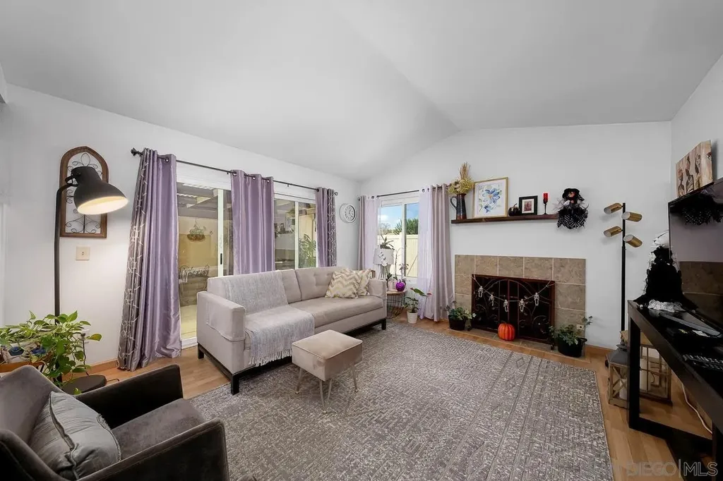 Move-in ready 3 bed 2.5 bath home in central Santee neighborhood! Great value and low HOA dues! Open floorplan with vaulted ceiling, cozy fireplace, neutral color palette, light & bright kitchen with breakfast nook, ceiling fans, 2 car garage and covered patio area perfect for entertaining. Well maintained community with lush landscaping, sparkling pool and gated RV storage. Conveniently located to shops, dining, parks and schools!