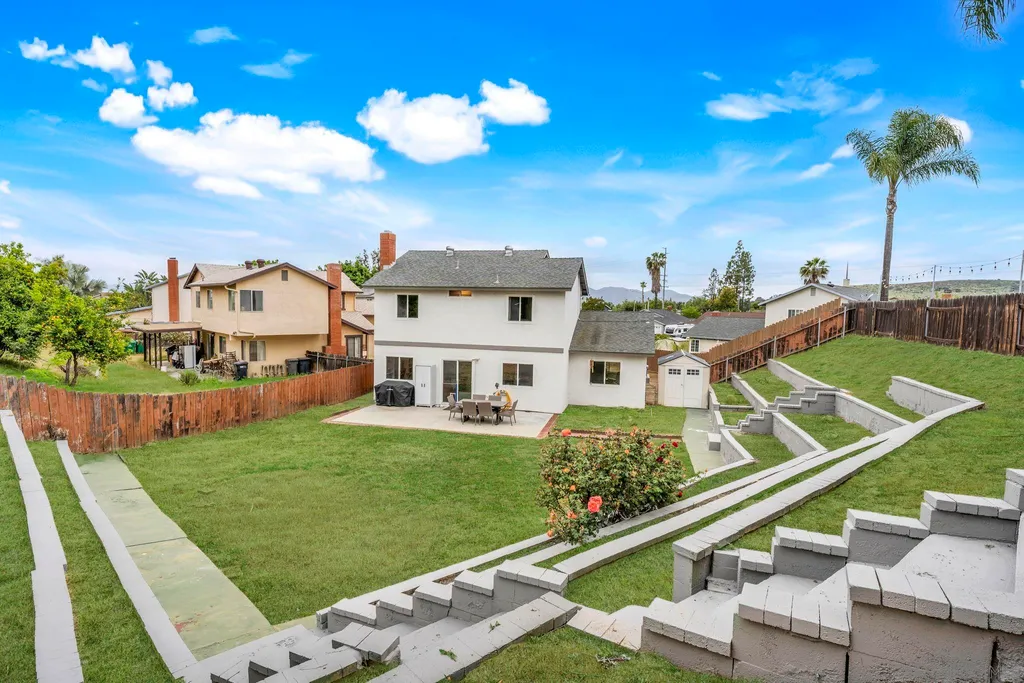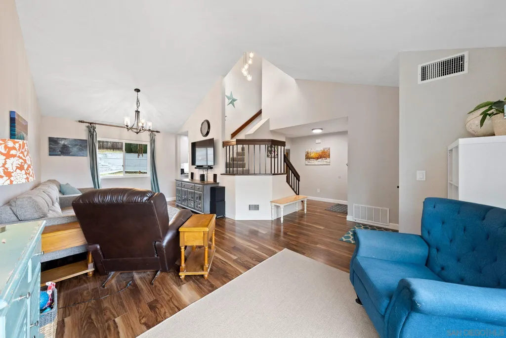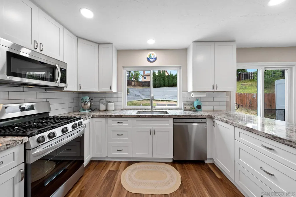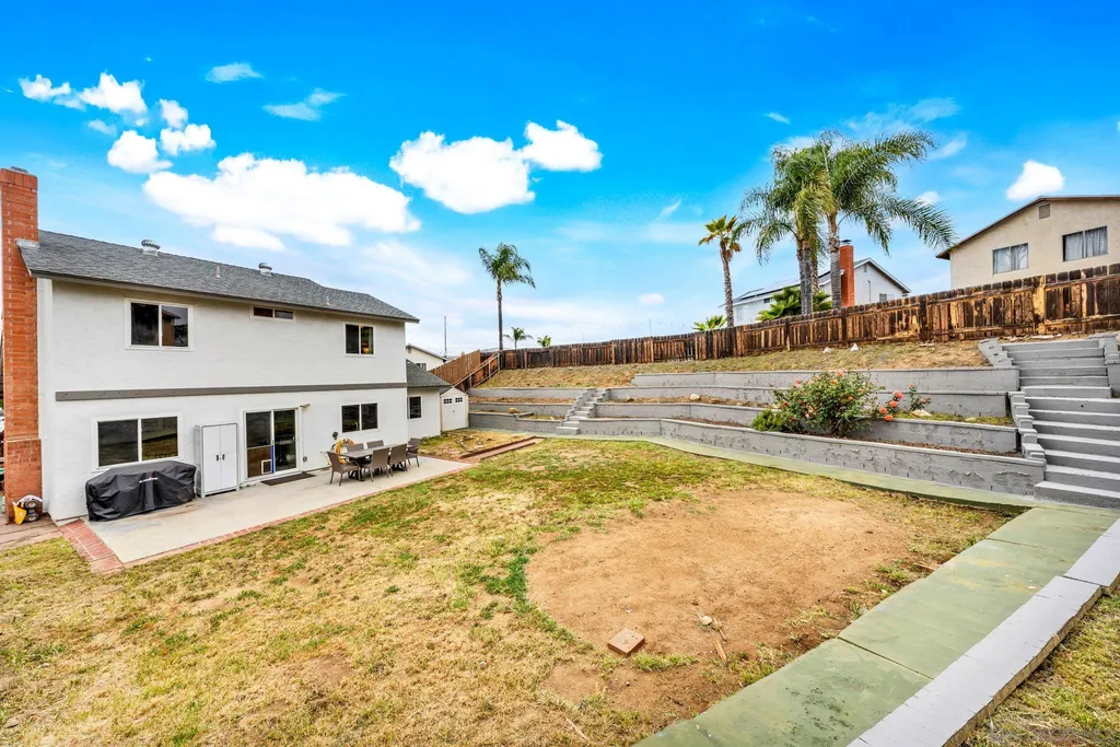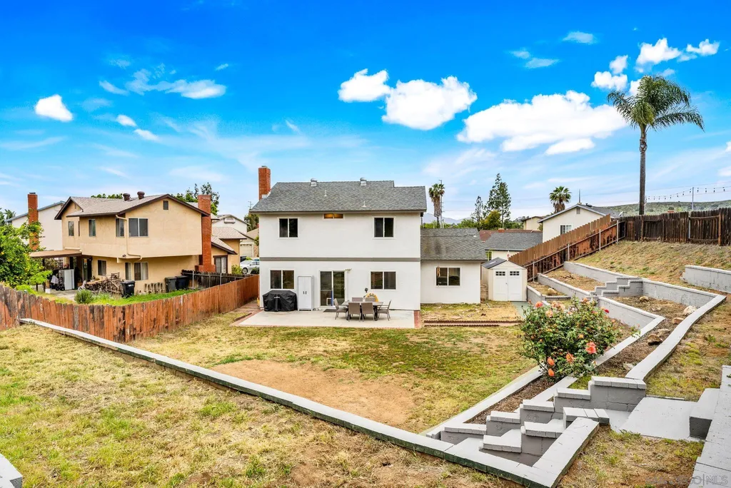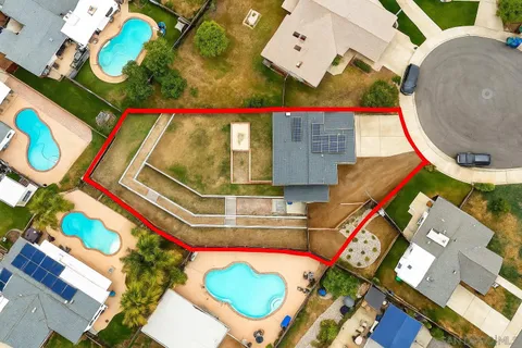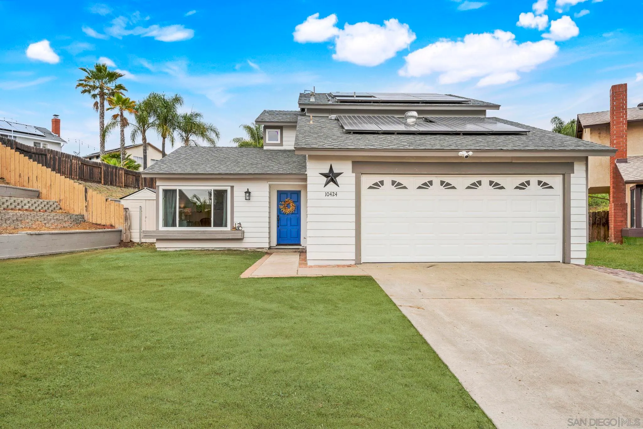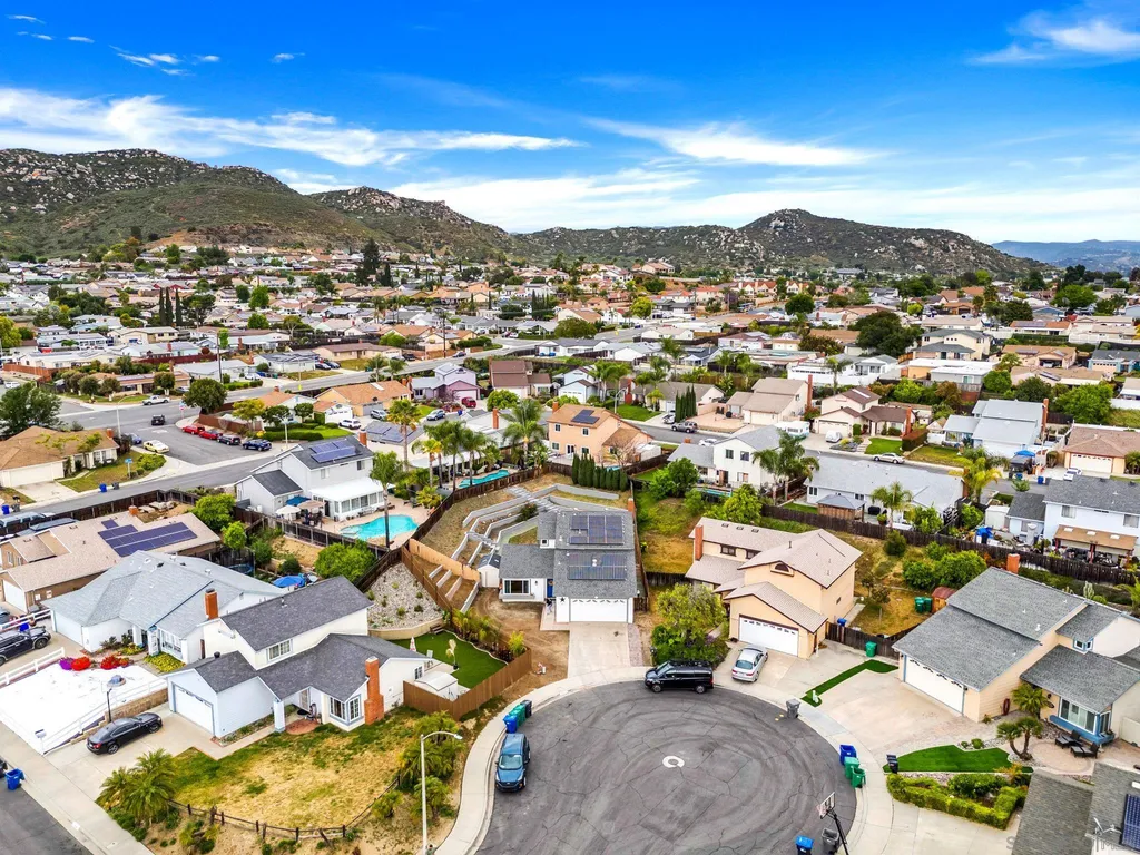 Charming remodeled 4BR/3BA home w/ Solar nestled on a peaceful cul-de-sac in the sought-after Sunburst/Starlight Circle festive neighborhood of Santee, offers the perfect blend of comfort and community. The flexible floorplan features a downstairs bedroom/bath - ideal for a home office, guest suite, or multi-generational living. Enjoy a recently remodeled sleek kitchen w/ Stainless Steel LG Appliances, white shaker cabinetry, modern granite counters & stainless dual basin sink looking over the yard. Owners recently installed lam wood flooring, tile & carpet plus enjoy an oversized living room with soaring vaulted ceilings & a separate dining area with fireplace for entertaining leading to your backyard. The spacious primary suite provides a tranquil retreat, while Solar Panel PPA & central air-conditioning ensures year-round comfort. The flat lot is one of the largest lots in the community, and creates a blank canvas private backyard for future owners' dreams of landscaping, pool, sport court or entertainment area + additional front side yard space for Boat/RV/REC vehicles, toys, parking. All this in a neighborhood renowned for its vibrant Halloween and Christmas celebrations - Starlight Circle truly shines year-round! 1) 2 Car Garage w/laundry and storage w/ Direct access inside house 2) New Water Heater installed 2022 3) PPA Solar between $40-$175 per month 4) Cul De Sac Living and Large Lot for Pool/RV/Boat side parking