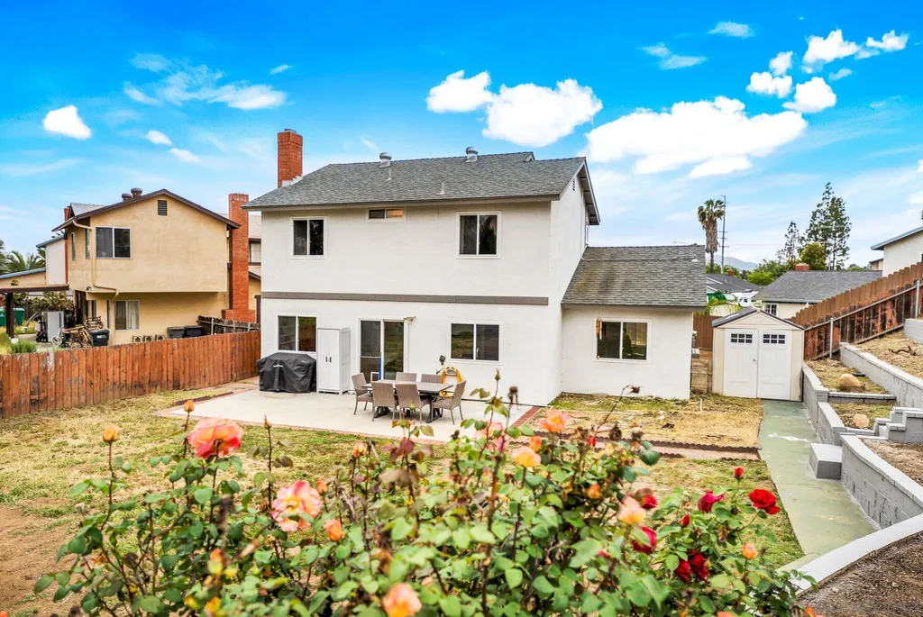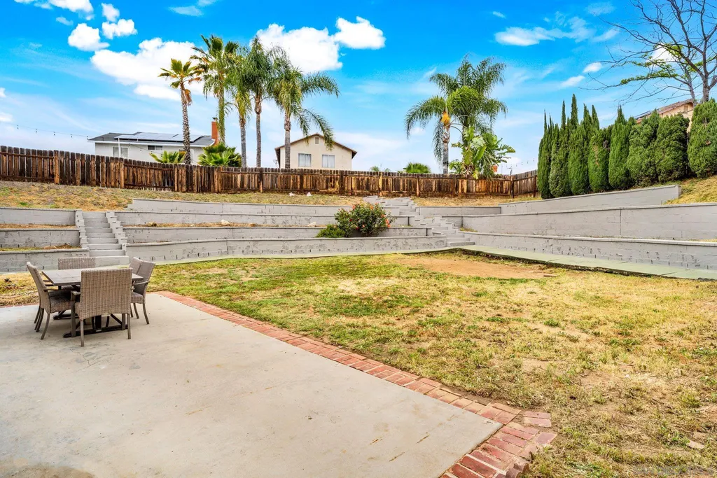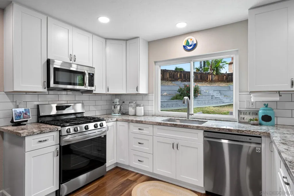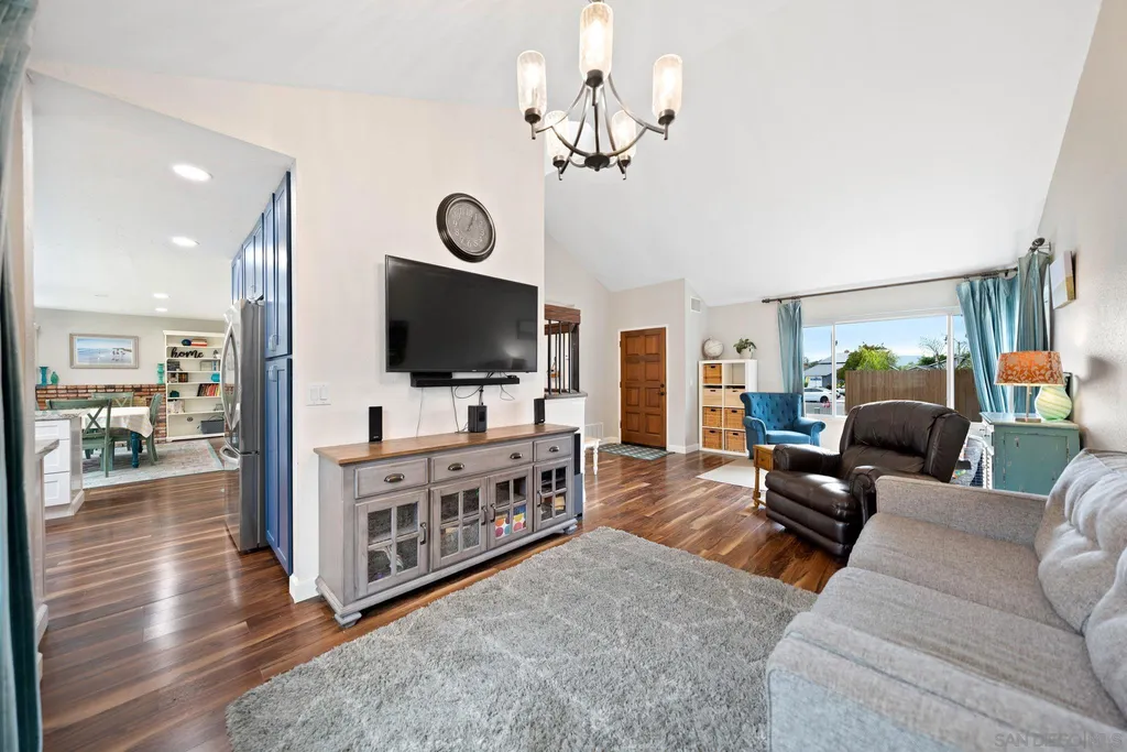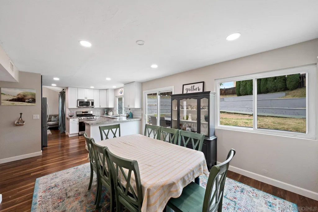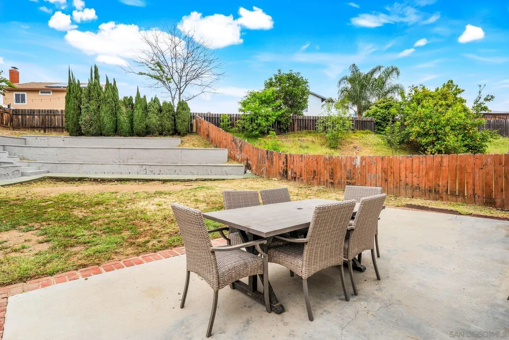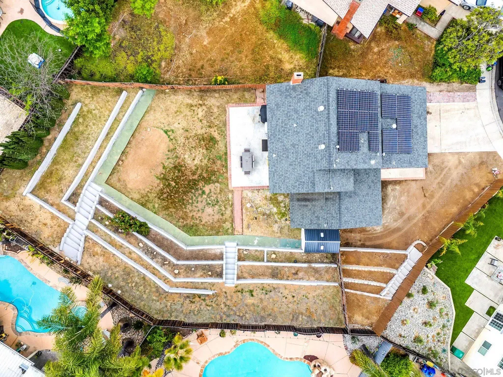 Charming remodeled 4BR/3BA home w/ Solar nestled on a peaceful cul-de-sac in the sought-after Sunburst/Starlight Circle festive neighborhood of Santee, offers the perfect blend of comfort and community. The flexible floorplan features a downstairs bedroom/bath - ideal for a home office, guest suite, or multi-generational living. Enjoy a recently remodeled sleek kitchen w/ Stainless Steel LG Appliances, white shaker cabinetry, modern granite counters & stainless dual basin sink looking over the yard. Owners recently installed lam wood flooring, tile & carpet plus enjoy an oversized living room with soaring vaulted ceilings & a separate dining area with fireplace for entertaining leading to your backyard. The spacious primary suite provides a tranquil retreat, while Solar Panel PPA & central air-conditioning ensures year-round comfort. The flat lot is one of the largest lots in the community, and creates a blank canvas private backyard for future owners' dreams of landscaping, pool, sport court or entertainment area + additional front side yard space for Boat/RV/REC vehicles, toys, parking. All this in a neighborhood renowned for its vibrant Halloween and Christmas celebrations - Starlight Circle truly shines year-round! 1) 2 Car Garage w/laundry and storage w/ Direct access inside house 2) New Water Heater installed 2022 3) PPA Solar between $40-$175 per month 4) Cul De Sac Living and Large Lot for Pool/RV/Boat side parking
