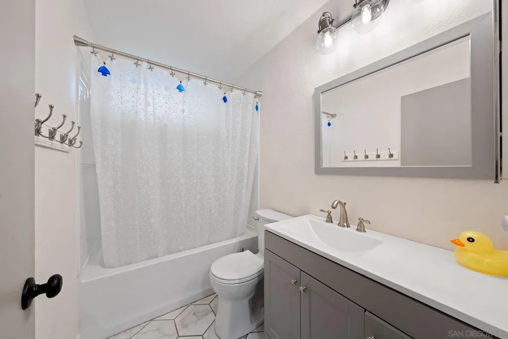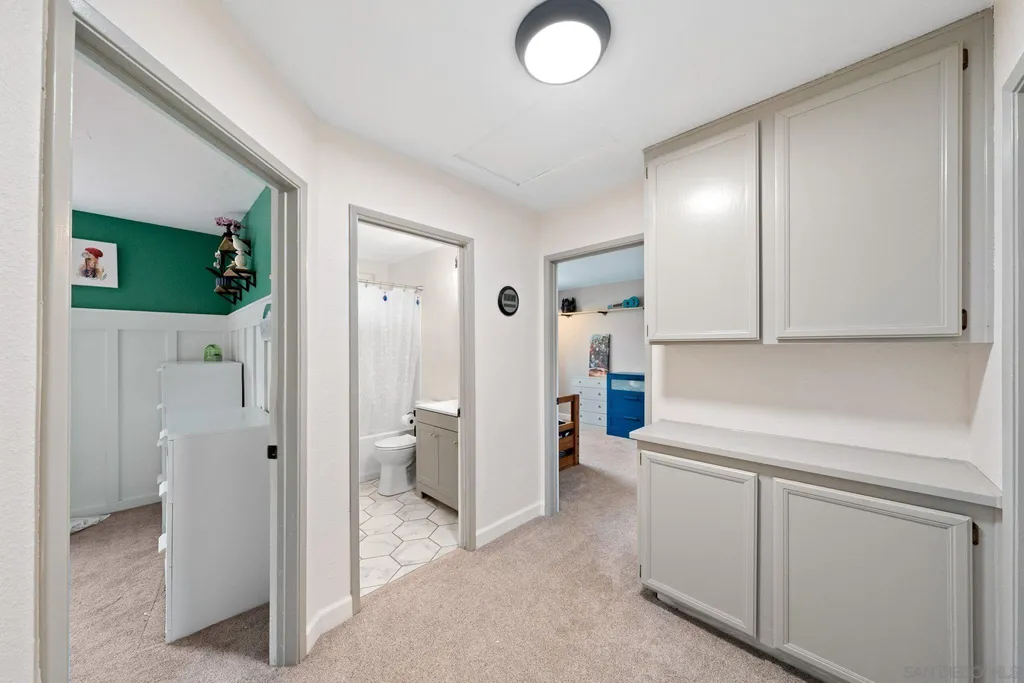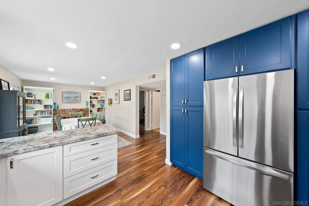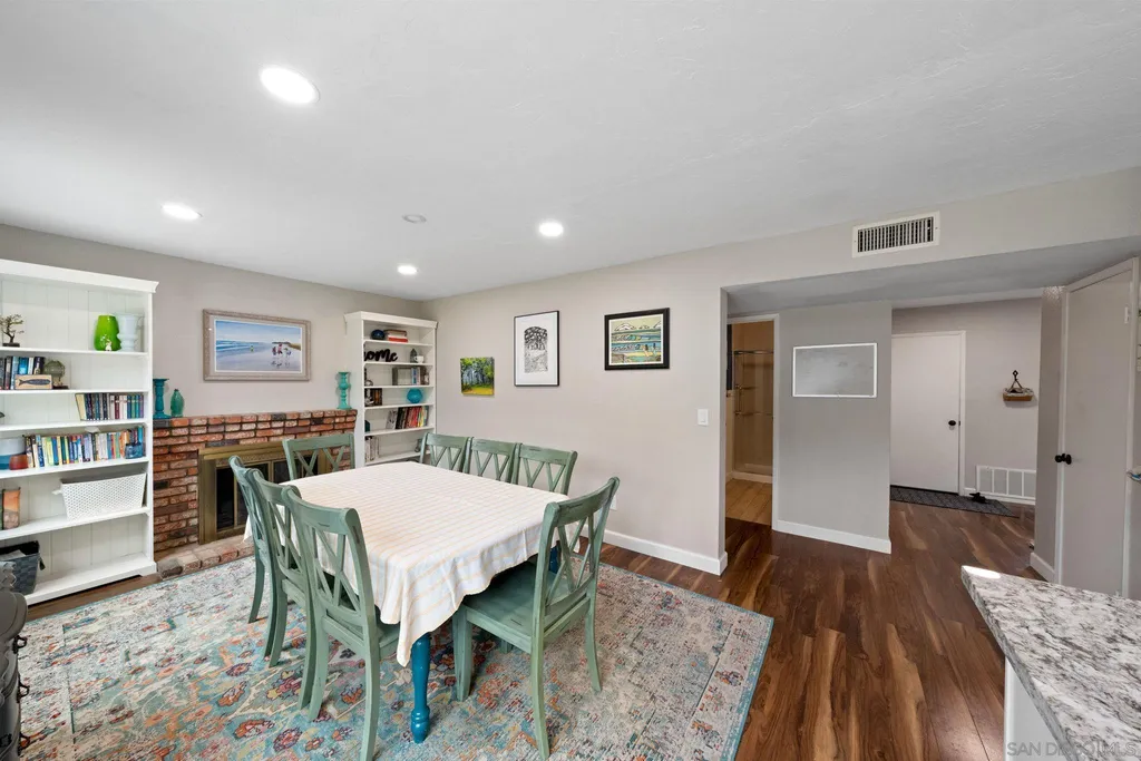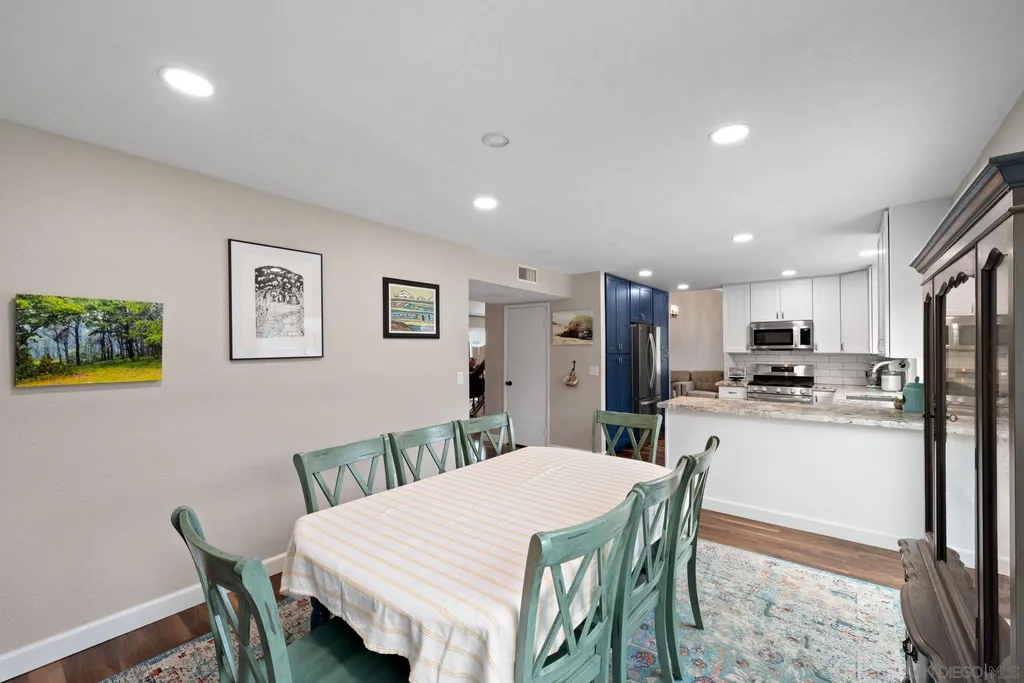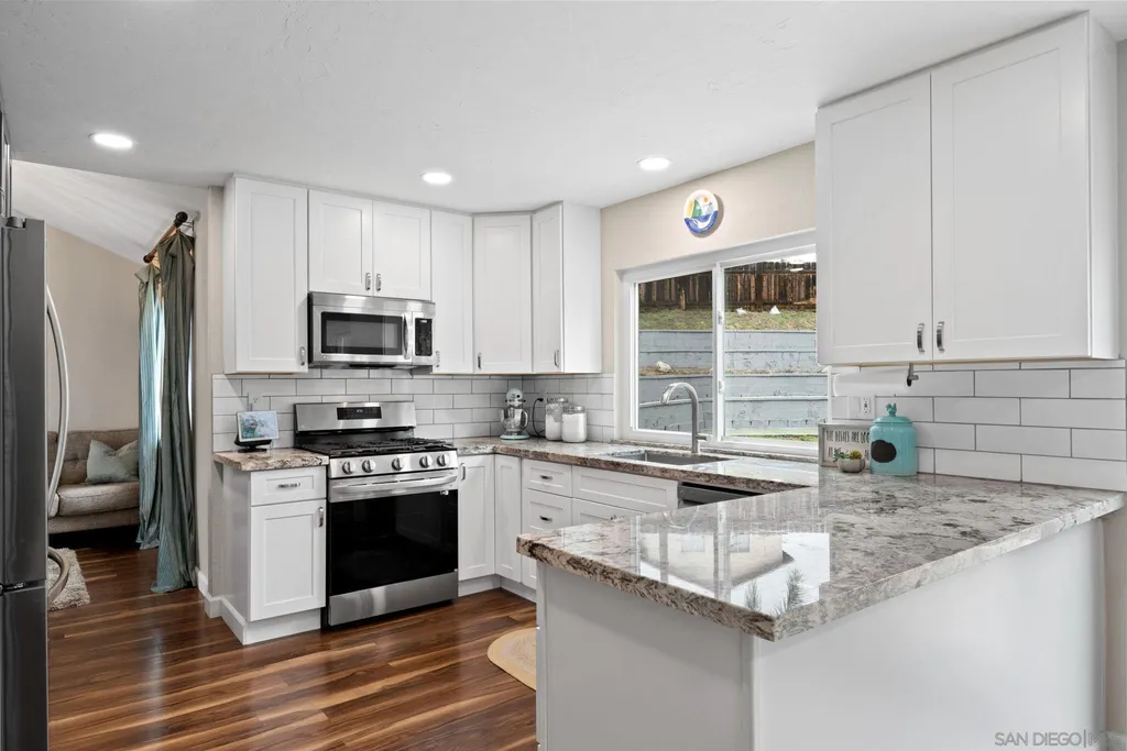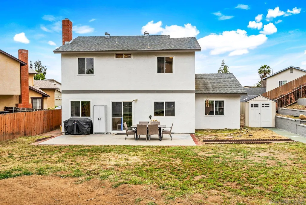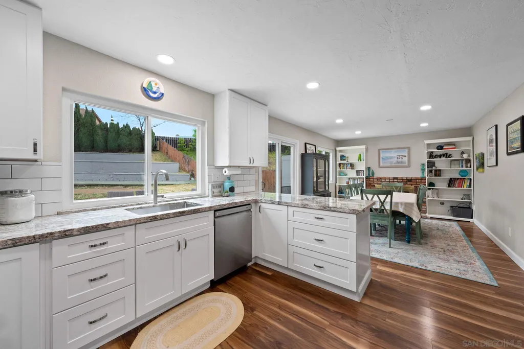 Charming remodeled 4BR/3BA home w/ Solar nestled on a peaceful cul-de-sac in the sought-after Sunburst/Starlight Circle festive neighborhood of Santee, offers the perfect blend of comfort and community. The flexible floorplan features a downstairs bedroom/bath - ideal for a home office, guest suite, or multi-generational living. Enjoy a recently remodeled sleek kitchen w/ Stainless Steel LG Appliances, white shaker cabinetry, modern granite counters & stainless dual basin sink looking over the yard. Owners recently installed lam wood flooring, tile & carpet plus enjoy an oversized living room with soaring vaulted ceilings & a separate dining area with fireplace for entertaining leading to your backyard. The spacious primary suite provides a tranquil retreat, while Solar Panel PPA & central air-conditioning ensures year-round comfort. The flat lot is one of the largest lots in the community, and creates a blank canvas private backyard for future owners' dreams of landscaping, pool, sport court or entertainment area + additional front side yard space for Boat/RV/REC vehicles, toys, parking. All this in a neighborhood renowned for its vibrant Halloween and Christmas celebrations - Starlight Circle truly shines year-round! 1) 2 Car Garage w/laundry and storage w/ Direct access inside house 2) New Water Heater installed 2022 3) PPA Solar between $40-$175 per month 4) Cul De Sac Living and Large Lot for Pool/RV/Boat side parking