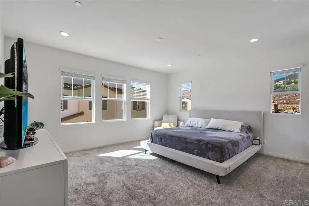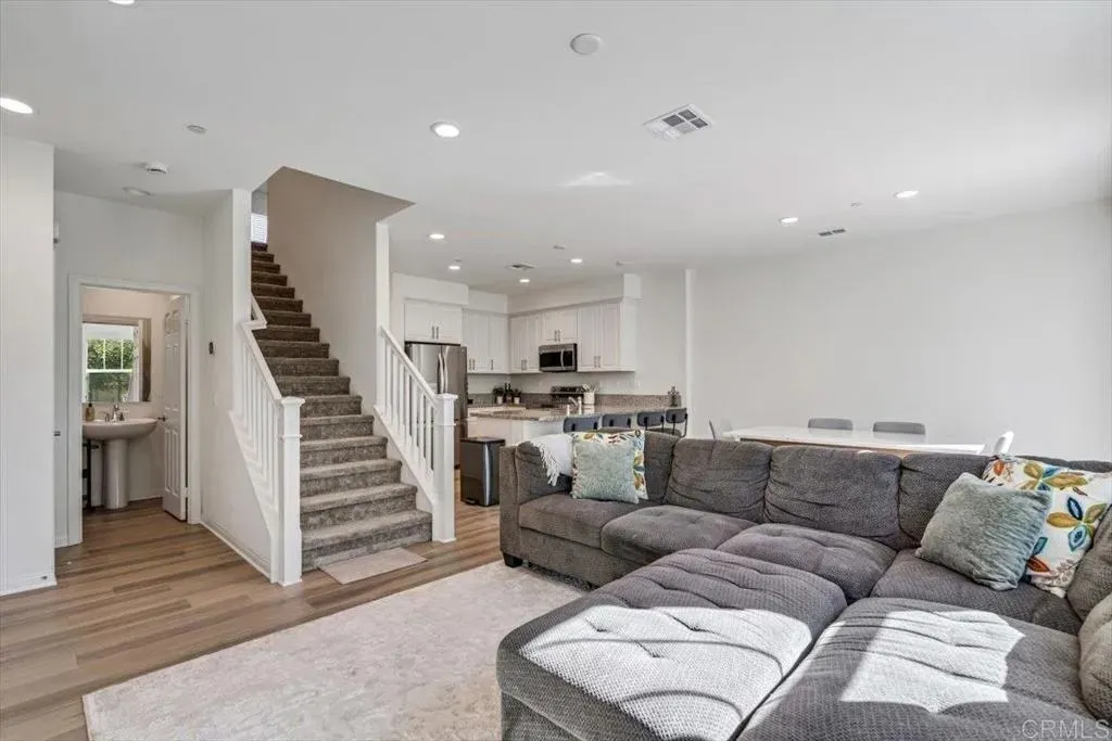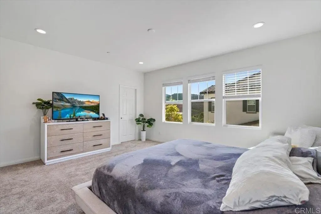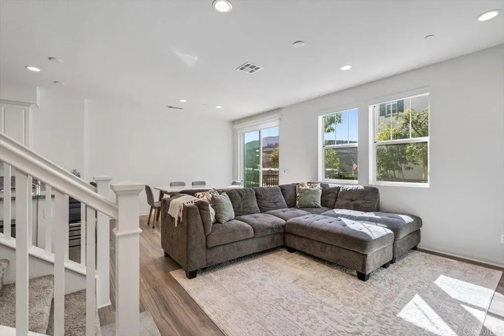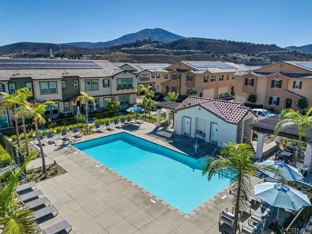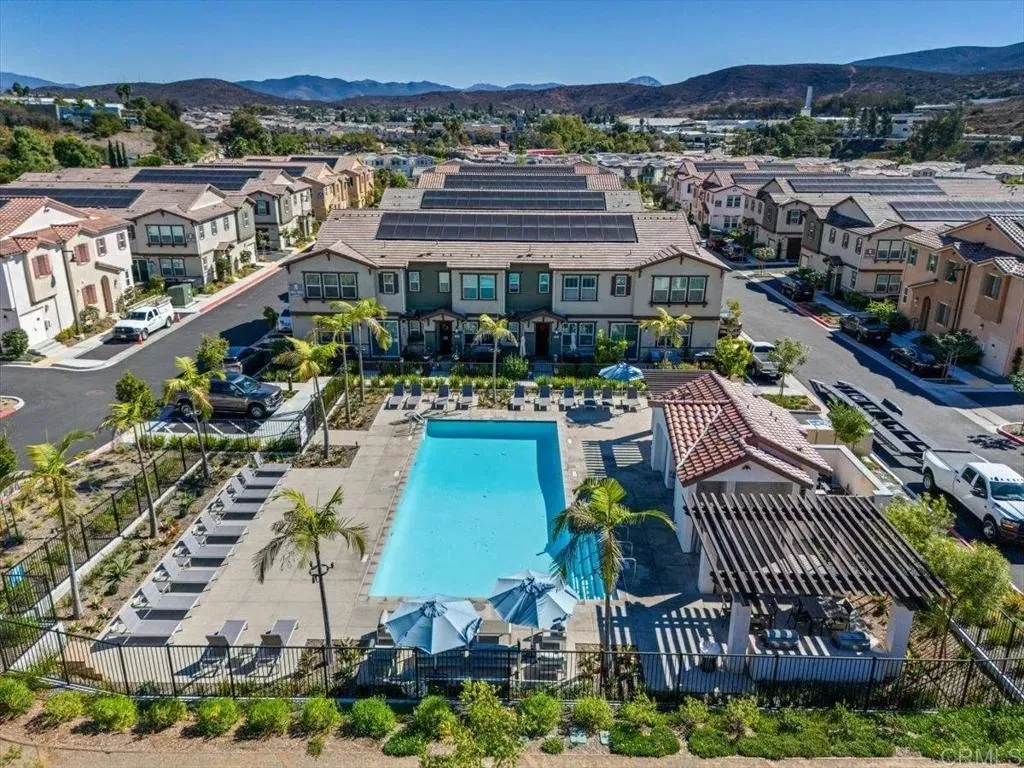 Welcome to this beautiful newer-built (2023) corner unit located near Rancho San Diego! This stunning 3-bedroom, 2.5-bath home offers a bright open-concept layout with luxury vinyl plank flooring throughout the downstairs. The modern kitchen features granite countertops, white cabinets, stainless steel appliances, and a spacious pantry, with all appliances including the washer and dryer included. Upstairs, youll find three comfortable bedrooms, two full baths with linen closets, and a convenient laundry room. Enjoy an abundance of natural light and beautiful mountain views. Additional highlights include a two-car garage, paid-off solar panels, EV charger and access to community amenities such as hiking trails, dog-friendly areas, and sparkling pools. Perfect for families, pet lovers, and outdoor enthusiastsdont miss the opportunity to make this home yours!