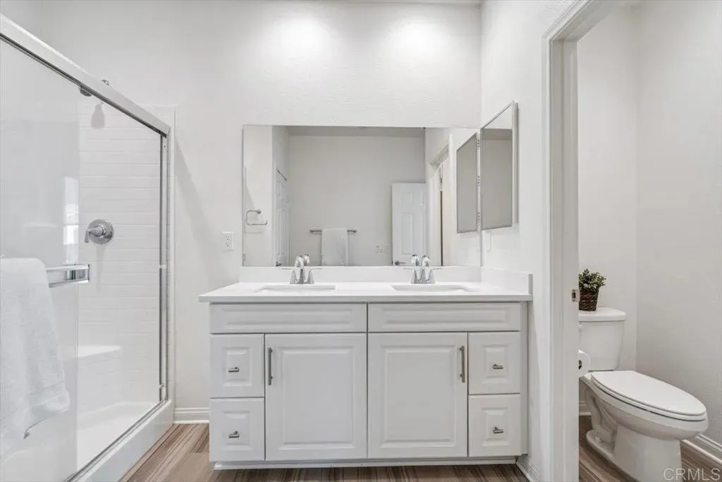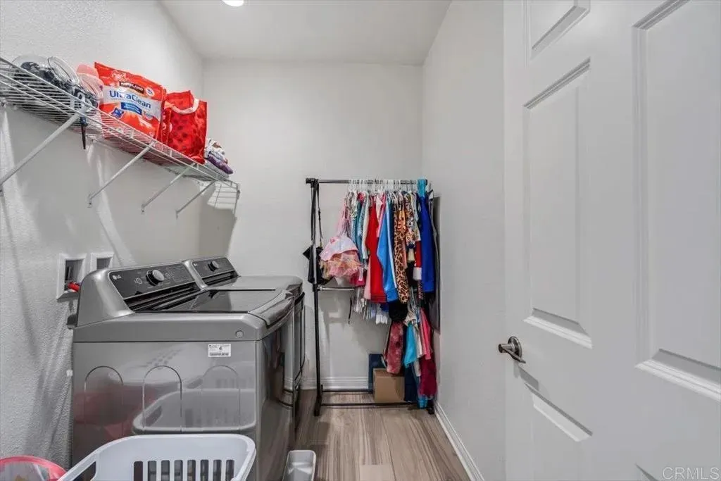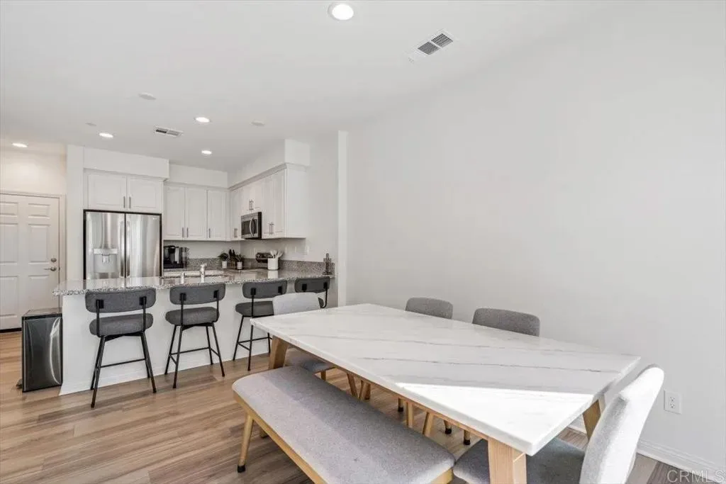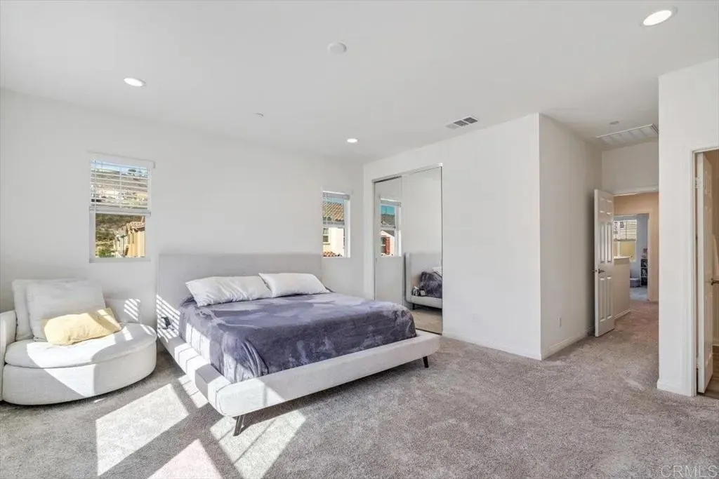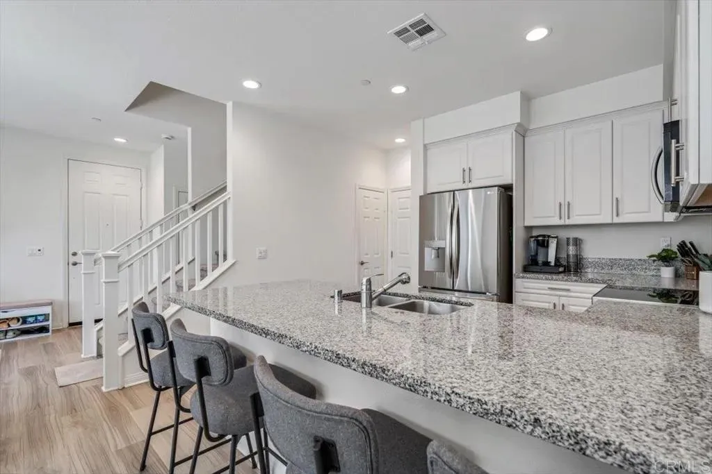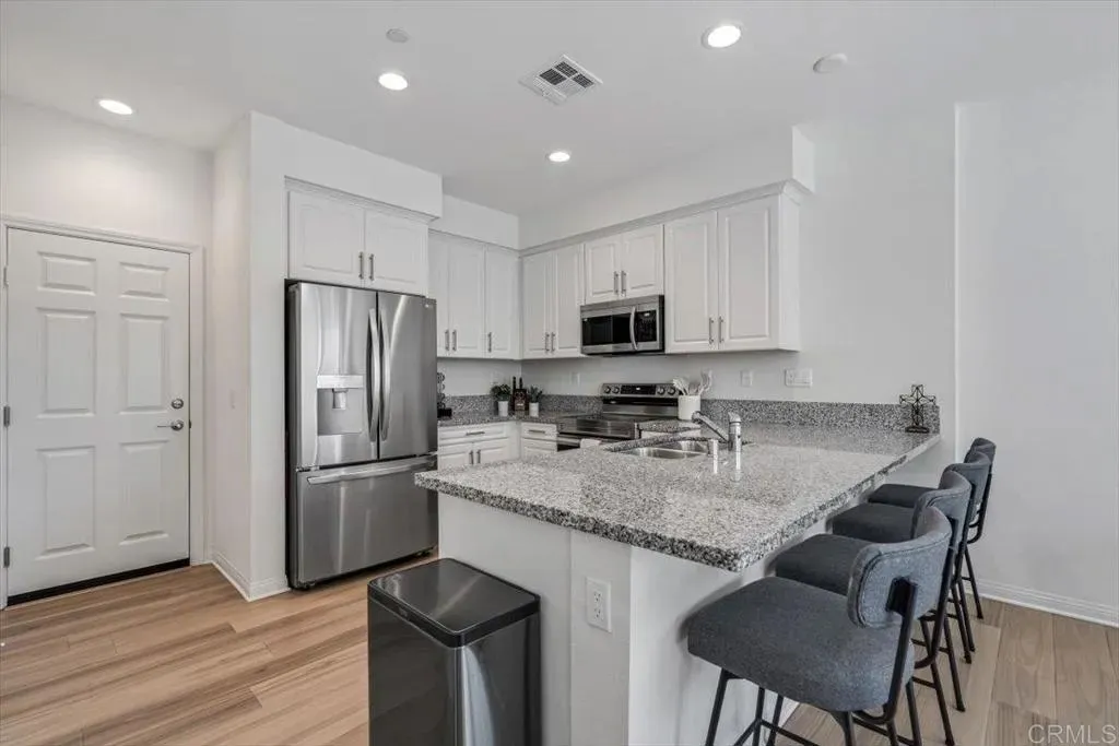 Welcome to this beautiful newer-built (2023) corner unit located near Rancho San Diego! This stunning 3-bedroom, 2.5-bath home offers a bright open-concept layout with luxury vinyl plank flooring throughout the downstairs. The modern kitchen features granite countertops, white cabinets, stainless steel appliances, and a spacious pantry, with all appliances including the washer and dryer included. Upstairs, youll find three comfortable bedrooms, two full baths with linen closets, and a convenient laundry room. Enjoy an abundance of natural light and beautiful mountain views. Additional highlights include a two-car garage, paid-off solar panels, EV charger and access to community amenities such as hiking trails, dog-friendly areas, and sparkling pools. Perfect for families, pet lovers, and outdoor enthusiastsdont miss the opportunity to make this home yours!