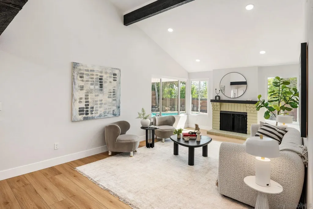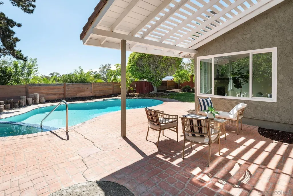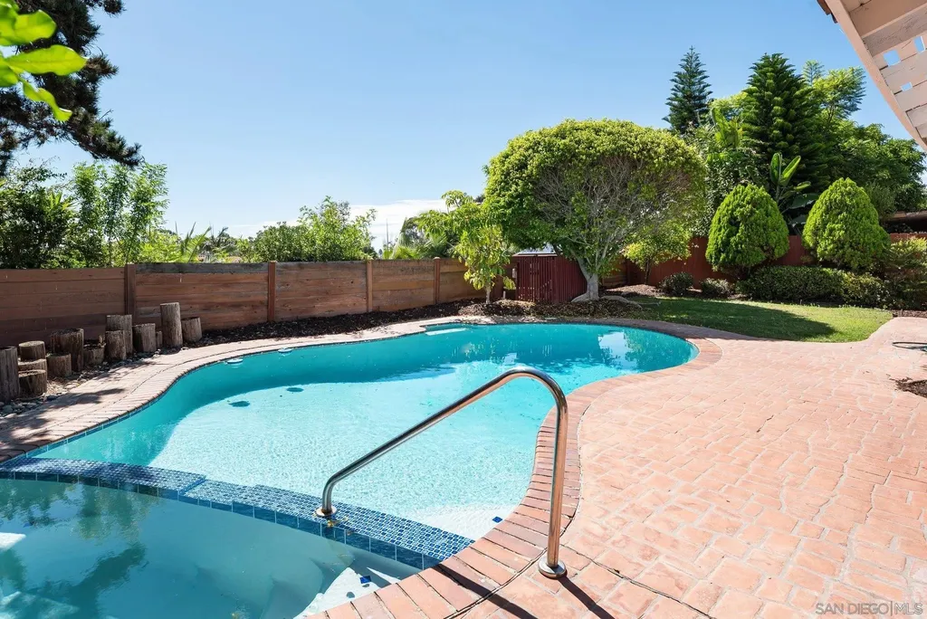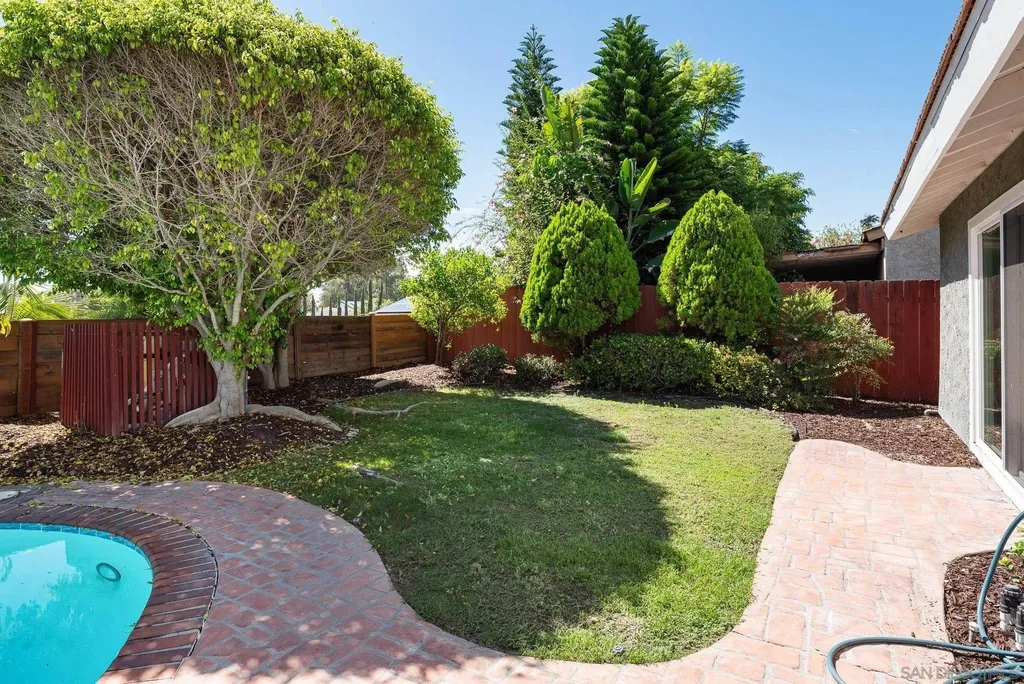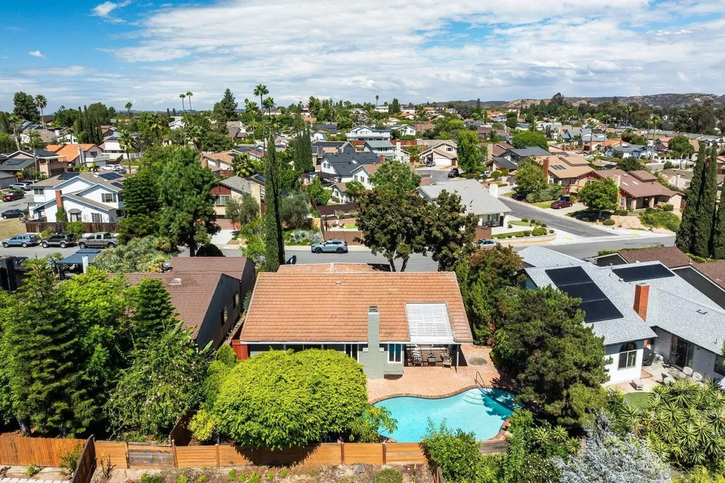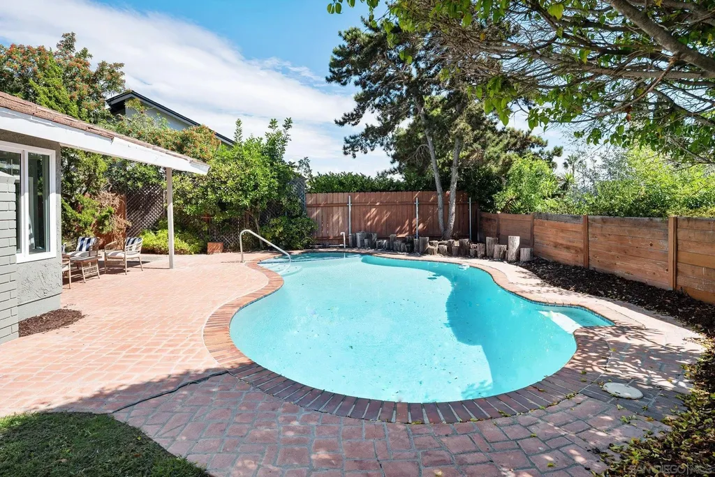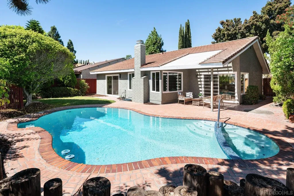 A fully reimagined Wedgewood Homes property by Maverick Designs. This Tierrasanta retreat is the perfect blend of style, comfort, and location. Offering 3 bedrooms and 2 baths, the home features a spacious floor plan with soaring beamed ceilings, a beautifully remodeled kitchen with earth-tone finishes and designer hardware, and updated bathrooms that feel like a spa. Luxury vinyl plank flooring runs throughout, creating a warm and modern flow. Though just under 1,300 sq. ft., the thoughtful layout and seamless indoor/outdoor living make it feel much larger. Step outside to your own private oasis: a gated front yard, covered patio, grassy play area, mature trees, and a sparkling pool and spa framed by treetop views and twinkle lights. Perched above the street below and with new fencing, the property offers a rare sense of privacy while still being in the heart of it all. Tierrasanta is more than a neighborhood - it's a lifestyle. With top-rated schools, a welcoming community, and unmatched convenience, you're just 10-15 minutes from beaches, downtown, and San Diego's major tech and bio hubs. This is the home where design, function, and location come together. Viewed it previously? Come take a look at what changes have been made!