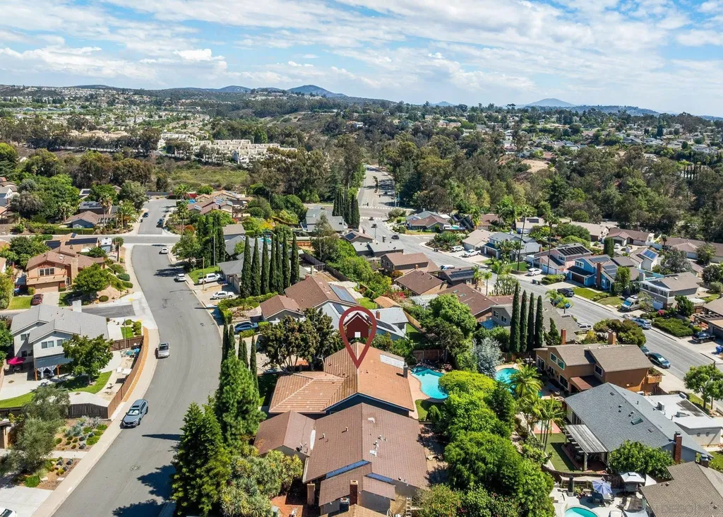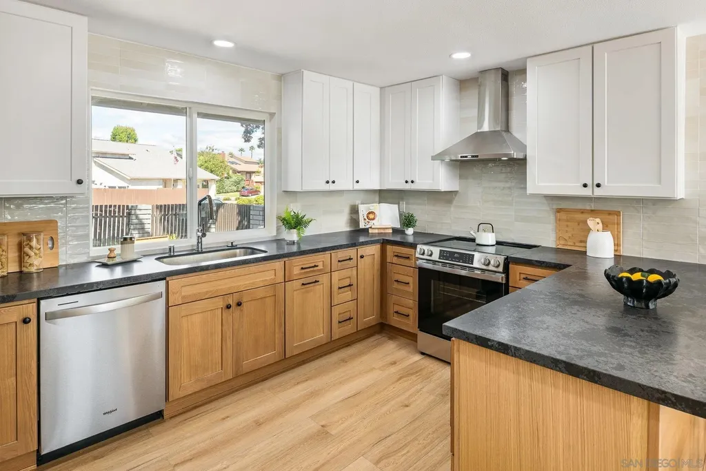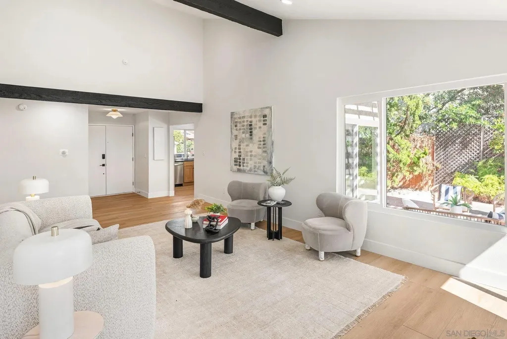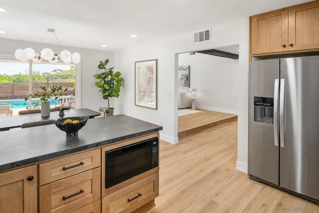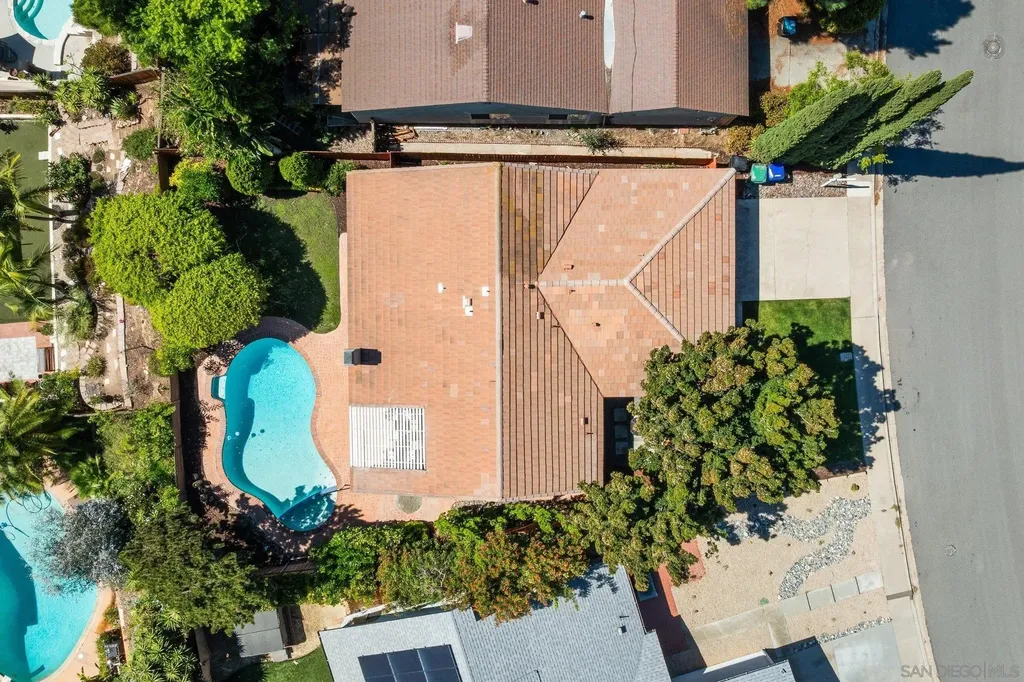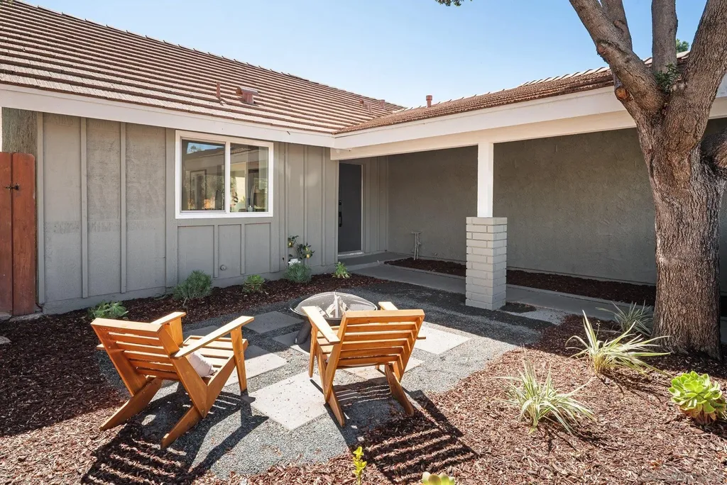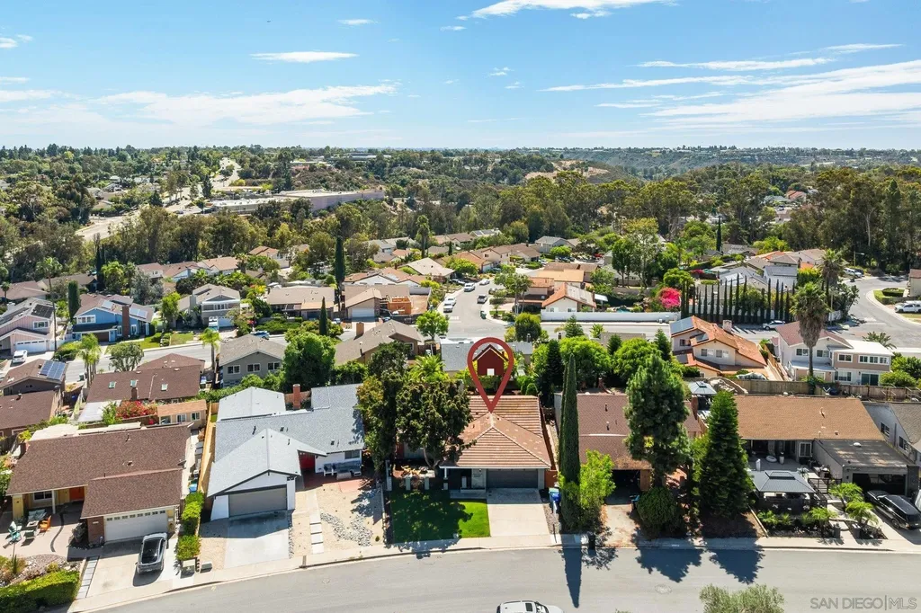A fully reimagined Wedgewood Homes property by Maverick Designs. This Tierrasanta retreat is the perfect blend of style, comfort, and location. Offering 3 bedrooms and 2 baths, the home features a spacious floor plan with soaring beamed ceilings, a beautifully remodeled kitchen with earth-tone finishes and designer hardware, and updated bathrooms that feel like a spa. Luxury vinyl plank flooring runs throughout, creating a warm and modern flow. Though just under 1,300 sq. ft., the thoughtful layout and seamless indoor/outdoor living make it feel much larger. Step outside to your own private oasis: a gated front yard, covered patio, grassy play area, mature trees, and a sparkling pool and spa framed by treetop views and twinkle lights. Perched above the street below and with new fencing, the property offers a rare sense of privacy while still being in the heart of it all. Tierrasanta is more than a neighborhood - it's a lifestyle. With top-rated schools, a welcoming community, and unmatched convenience, you're just 10-15 minutes from beaches, downtown, and San Diego's major tech and bio hubs. This is the home where design, function, and location come together. Viewed it previously? Come take a look at what changes have been made!