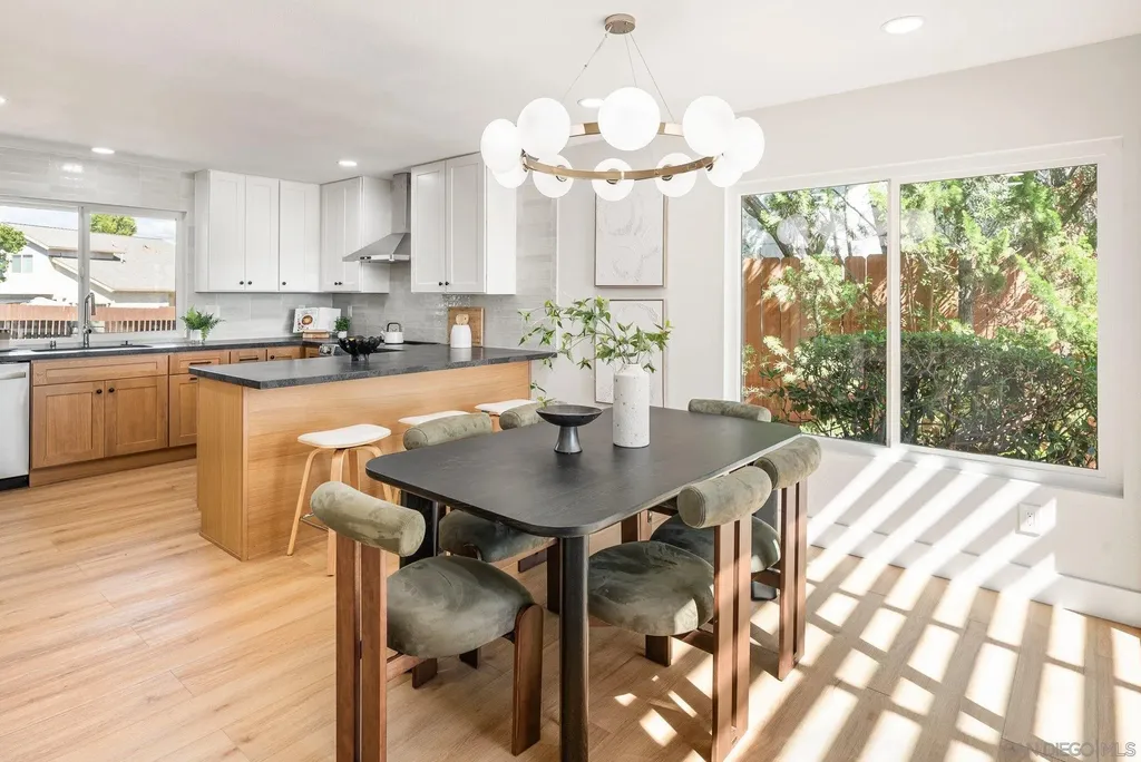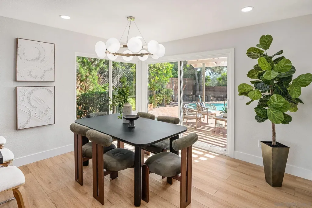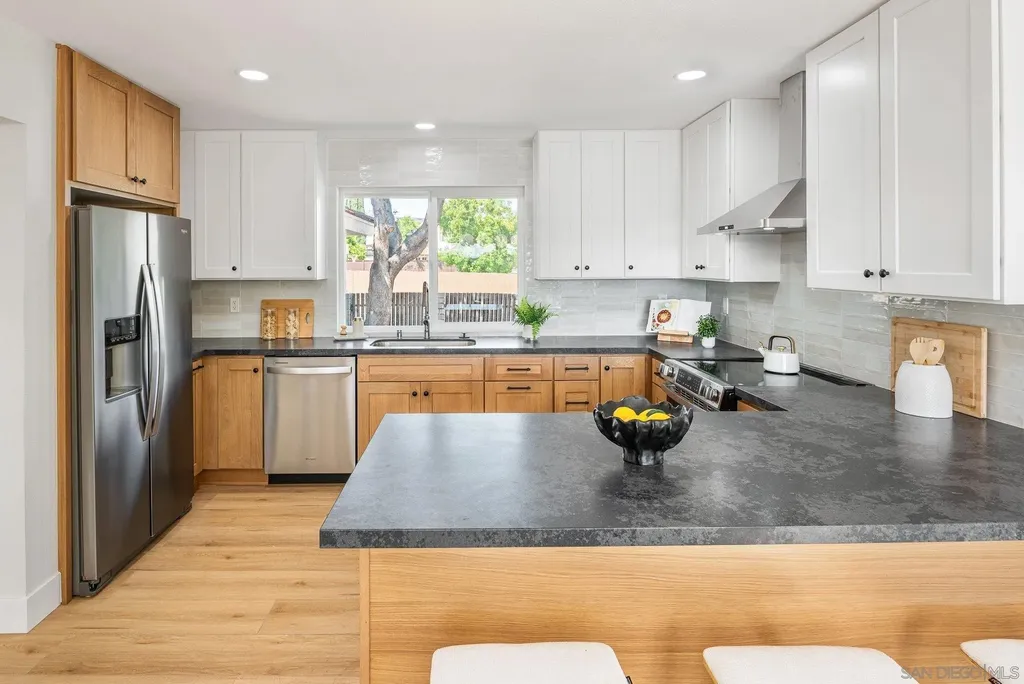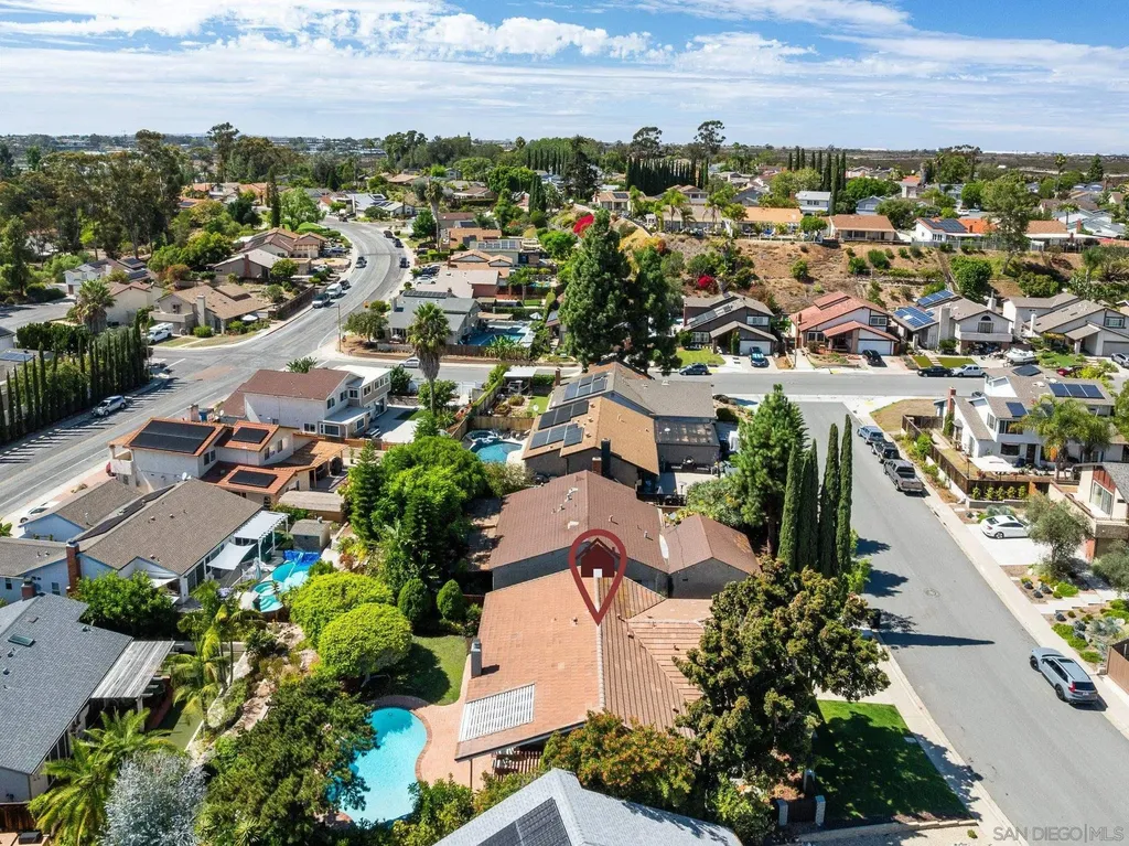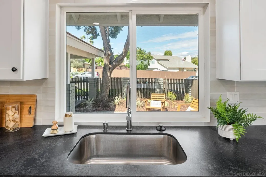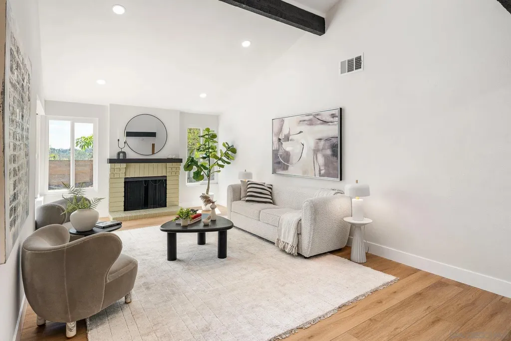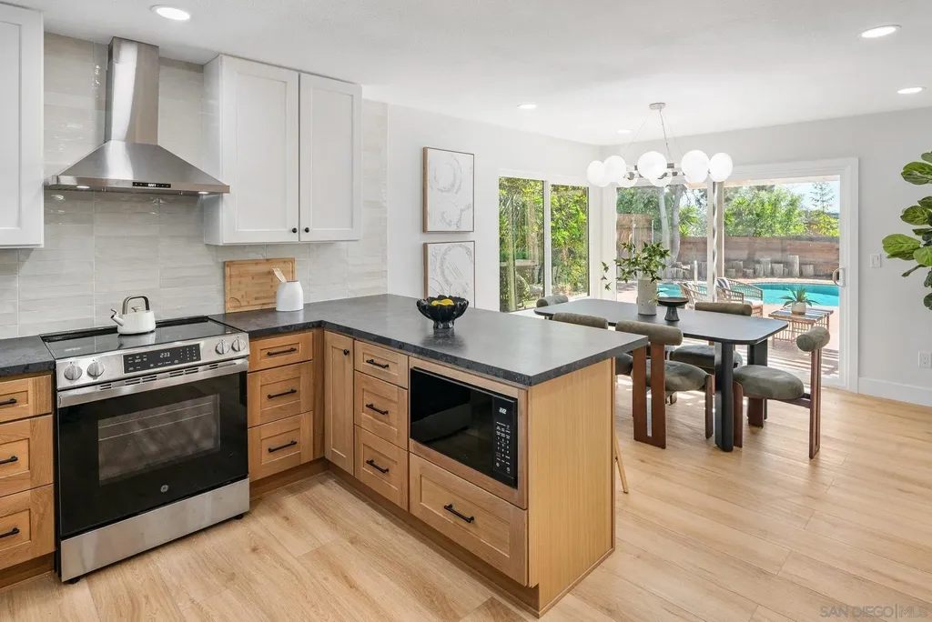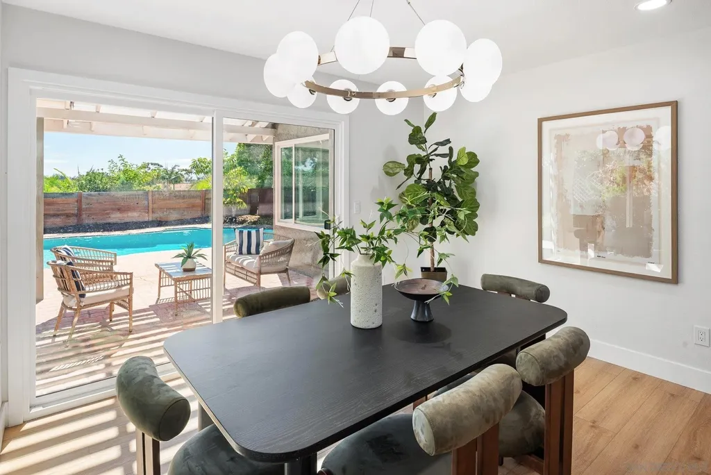 A fully reimagined Wedgewood Homes property by Maverick Designs. This Tierrasanta retreat is the perfect blend of style, comfort, and location. Offering 3 bedrooms and 2 baths, the home features a spacious floor plan with soaring beamed ceilings, a beautifully remodeled kitchen with earth-tone finishes and designer hardware, and updated bathrooms that feel like a spa. Luxury vinyl plank flooring runs throughout, creating a warm and modern flow. Though just under 1,300 sq. ft., the thoughtful layout and seamless indoor/outdoor living make it feel much larger. Step outside to your own private oasis: a gated front yard, covered patio, grassy play area, mature trees, and a sparkling pool and spa framed by treetop views and twinkle lights. Perched above the street below and with new fencing, the property offers a rare sense of privacy while still being in the heart of it all. Tierrasanta is more than a neighborhood - it's a lifestyle. With top-rated schools, a welcoming community, and unmatched convenience, you're just 10-15 minutes from beaches, downtown, and San Diego's major tech and bio hubs. This is the home where design, function, and location come together. Viewed it previously? Come take a look at what changes have been made!