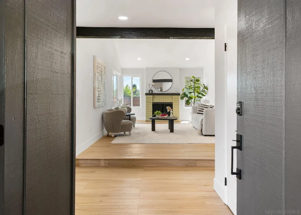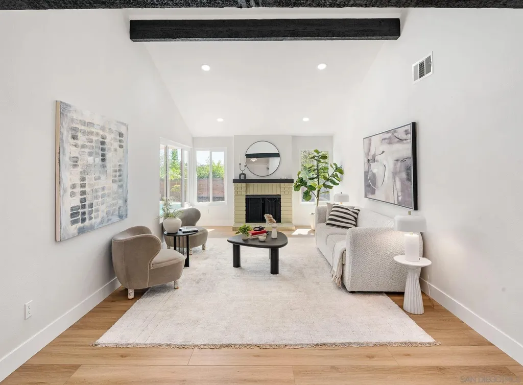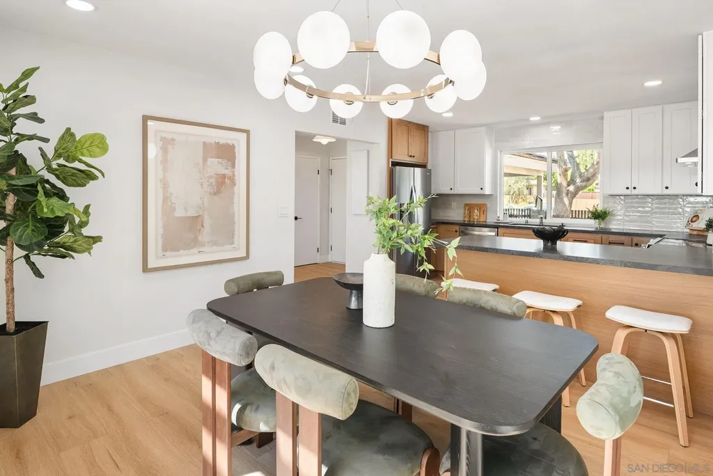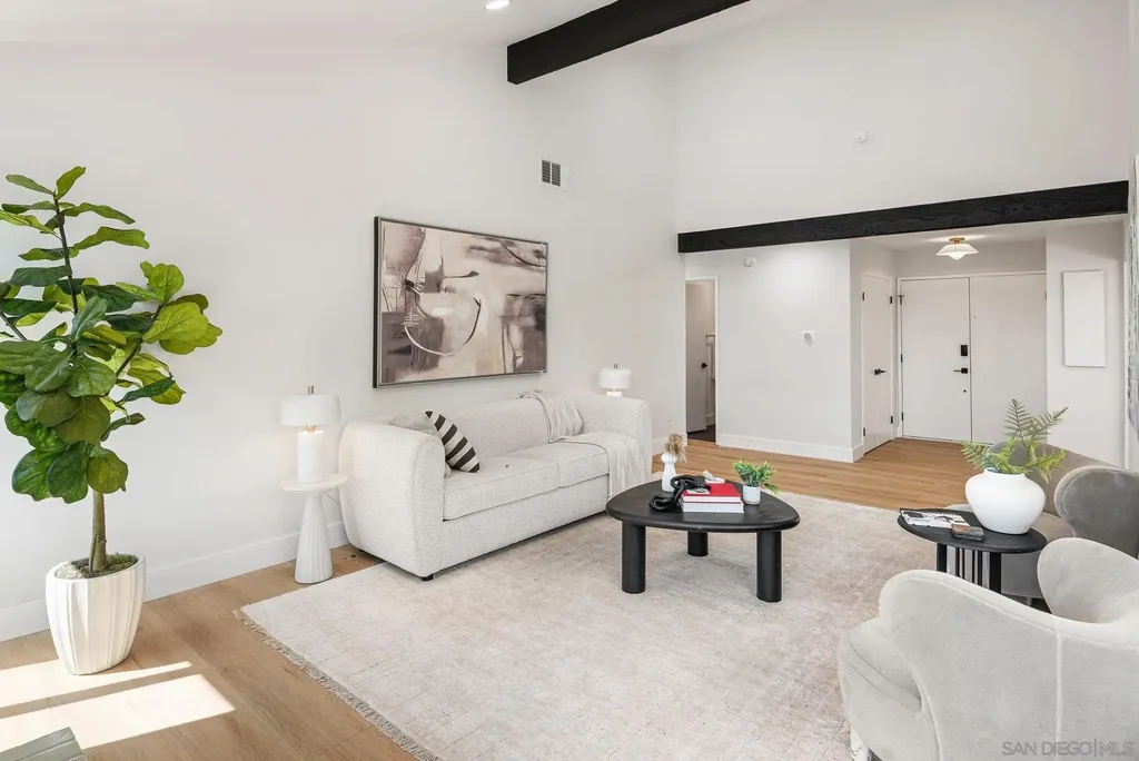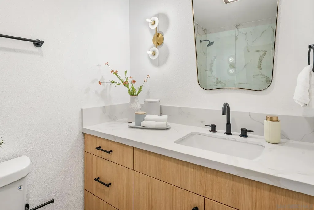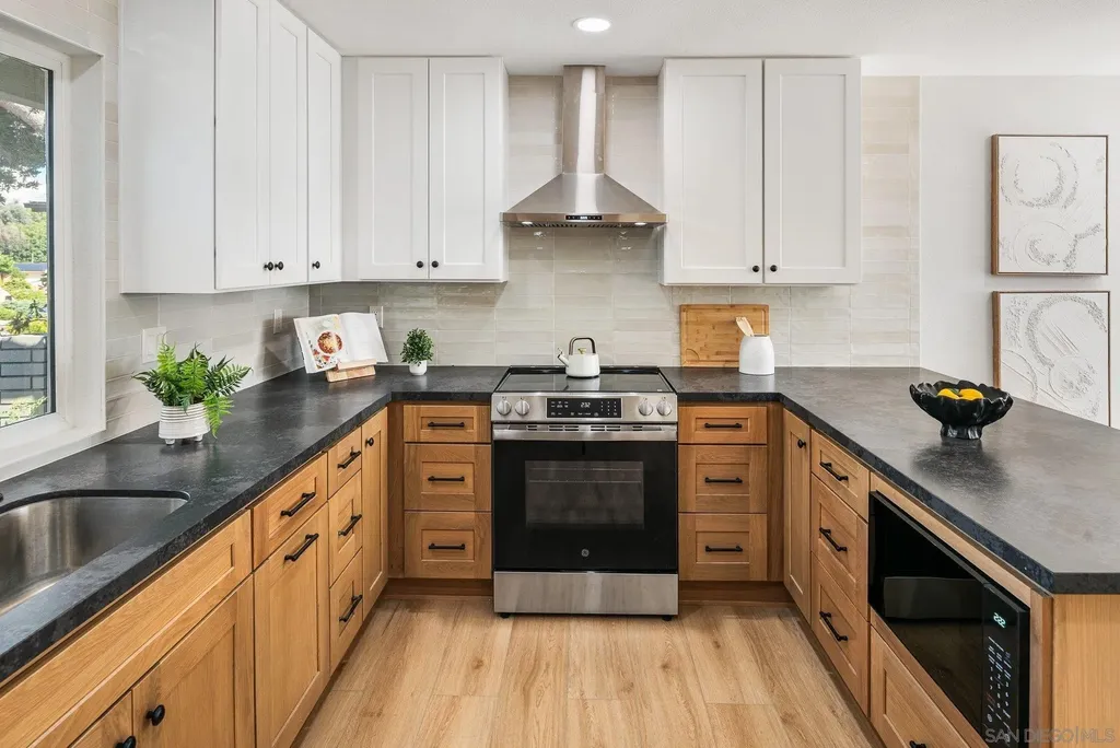 A fully reimagined Wedgewood Homes property by Maverick Designs. This Tierrasanta retreat is the perfect blend of style, comfort, and location. Offering 3 bedrooms and 2 baths, the home features a spacious floor plan with soaring beamed ceilings, a beautifully remodeled kitchen with earth-tone finishes and designer hardware, and updated bathrooms that feel like a spa. Luxury vinyl plank flooring runs throughout, creating a warm and modern flow. Though just under 1,300 sq. ft., the thoughtful layout and seamless indoor/outdoor living make it feel much larger. Step outside to your own private oasis: a gated front yard, covered patio, grassy play area, mature trees, and a sparkling pool and spa framed by treetop views and twinkle lights. Perched above the street below and with new fencing, the property offers a rare sense of privacy while still being in the heart of it all. Tierrasanta is more than a neighborhood - it's a lifestyle. With top-rated schools, a welcoming community, and unmatched convenience, you're just 10-15 minutes from beaches, downtown, and San Diego's major tech and bio hubs. This is the home where design, function, and location come together. Viewed it previously? Come take a look at what changes have been made!