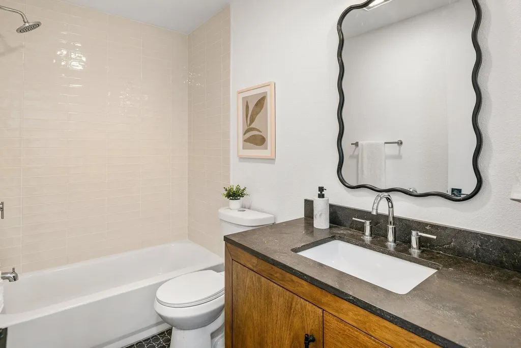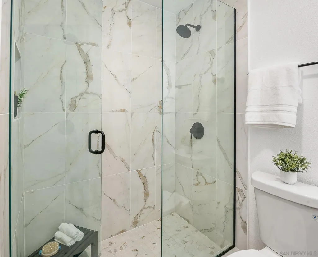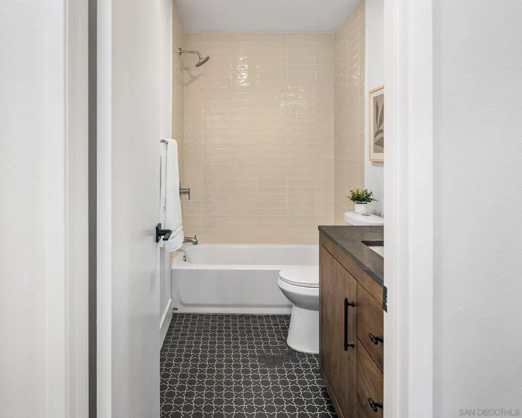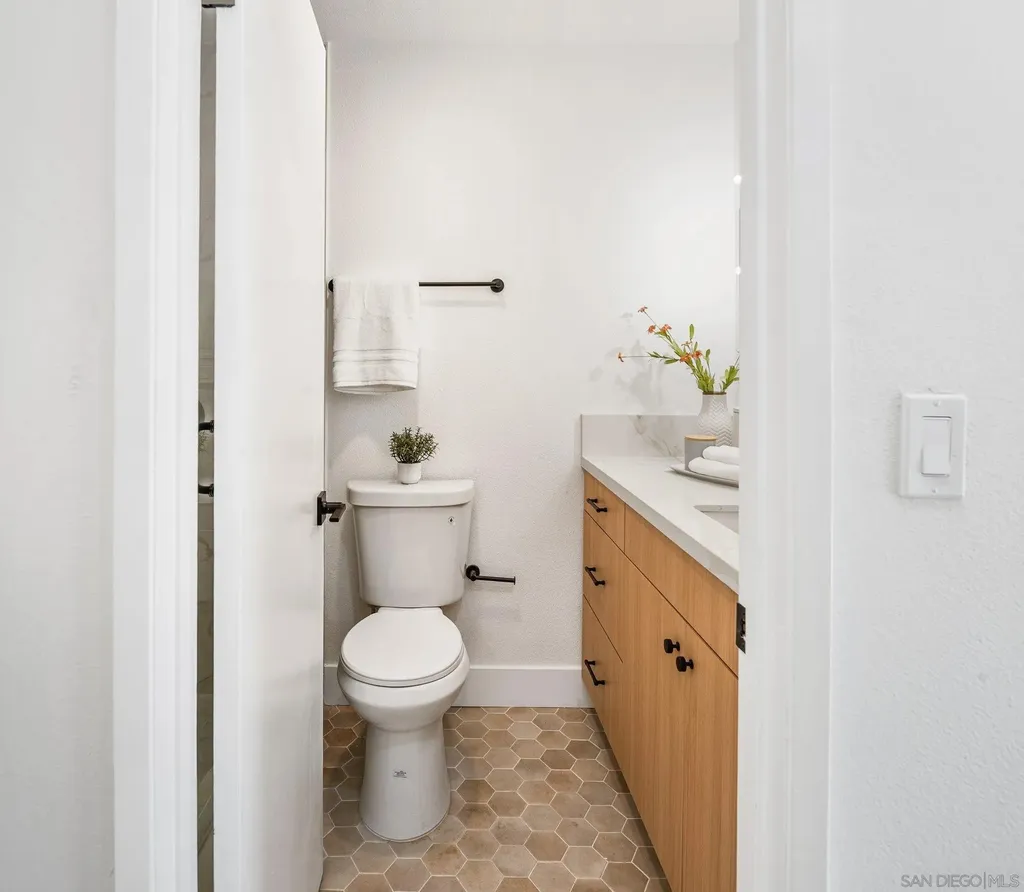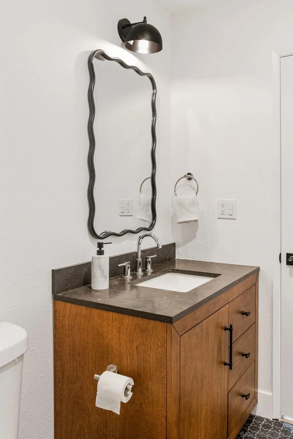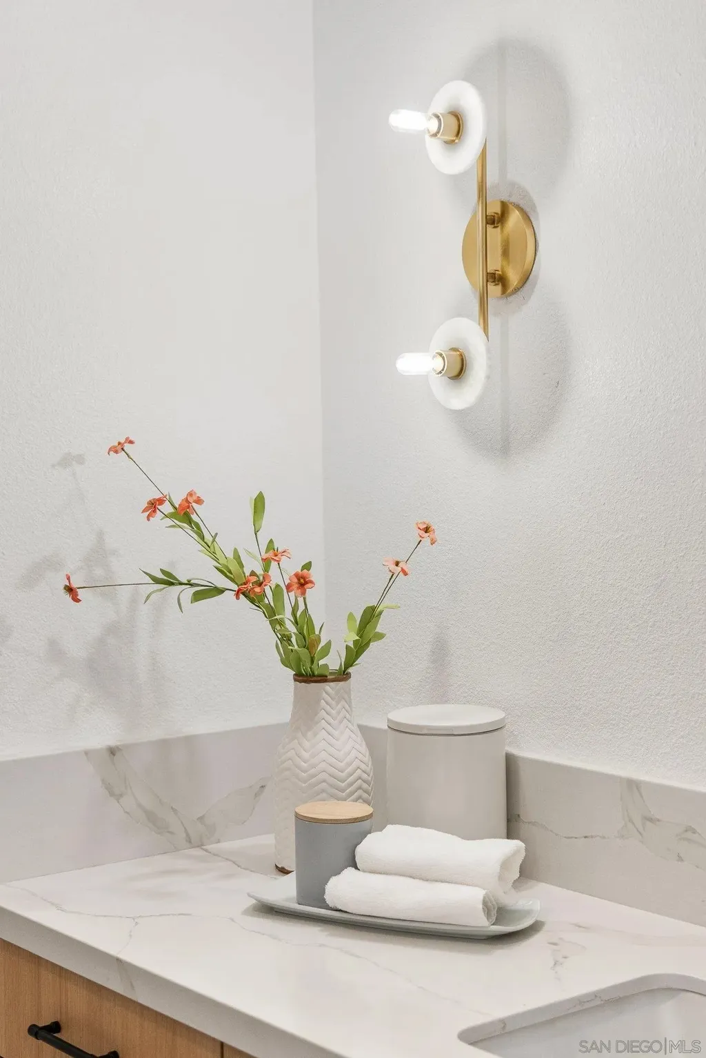 A fully reimagined Wedgewood Homes property by Maverick Designs. This Tierrasanta retreat is the perfect blend of style, comfort, and location. Offering 3 bedrooms and 2 baths, the home features a spacious floor plan with soaring beamed ceilings, a beautifully remodeled kitchen with earth-tone finishes and designer hardware, and updated bathrooms that feel like a spa. Luxury vinyl plank flooring runs throughout, creating a warm and modern flow. Though just under 1,300 sq. ft., the thoughtful layout and seamless indoor/outdoor living make it feel much larger. Step outside to your own private oasis: a gated front yard, covered patio, grassy play area, mature trees, and a sparkling pool and spa framed by treetop views and twinkle lights. Perched above the street below and with new fencing, the property offers a rare sense of privacy while still being in the heart of it all. Tierrasanta is more than a neighborhood - it's a lifestyle. With top-rated schools, a welcoming community, and unmatched convenience, you're just 10-15 minutes from beaches, downtown, and San Diego's major tech and bio hubs. This is the home where design, function, and location come together. Viewed it previously? Come take a look at what changes have been made!