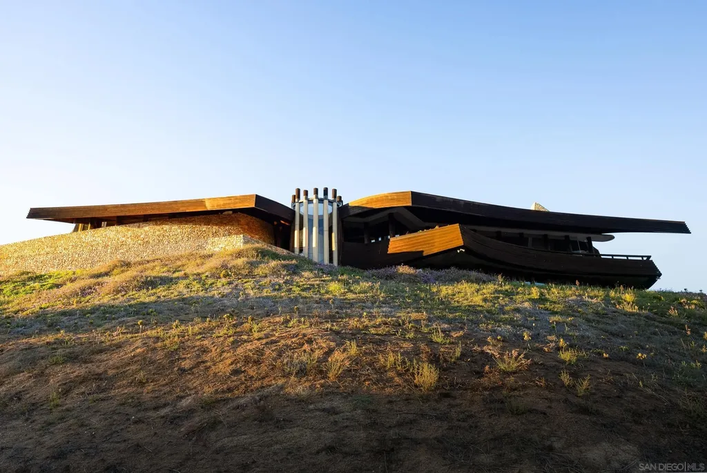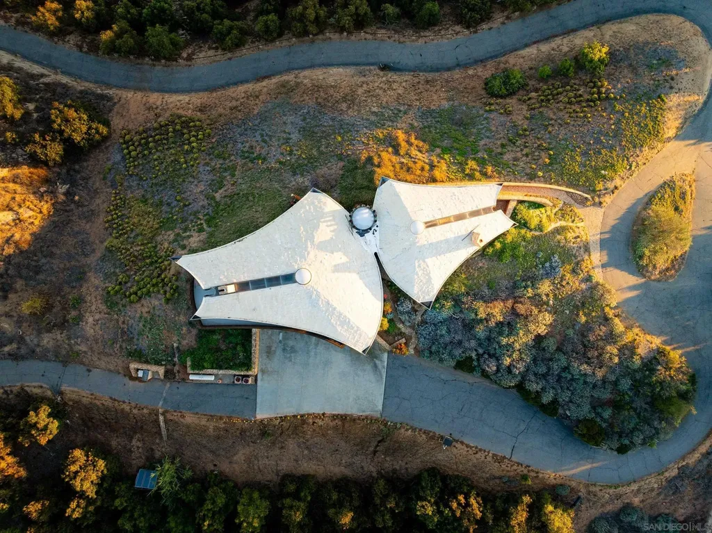 FIRST TIME ON THE MARKET: Recently featured by Architectural Digest, this masterwork by San Diego architect Kendrick Bangs Kellogg resides high atop its 40-acre Valley Center parcel offering 360-degree views through expansive walls of glass. The hand-crafted organic architecture and landscape melds together offering an array of intimate spaces scaled for everyday living. Inspired to return to their agrarian roots, in 1972 the family purchased a 40 acre plot and planted over 900 avocado trees. Designed by the architect in 1984, the home of glass and wood with rock walls sourced from the surrounding property took 6 years to build. Nestled amongst the avocado grove, the home's high perch lends itself to breathtaking 360 degree views of the area through the floor to ceiling windows. With 5 bedrooms and 3 bathrooms, as well as two fireplaces and custom woodwork throughout, this home captures some of Kellogg's most inspired work, blurring the line between nature and home, between architecture and sculpture.