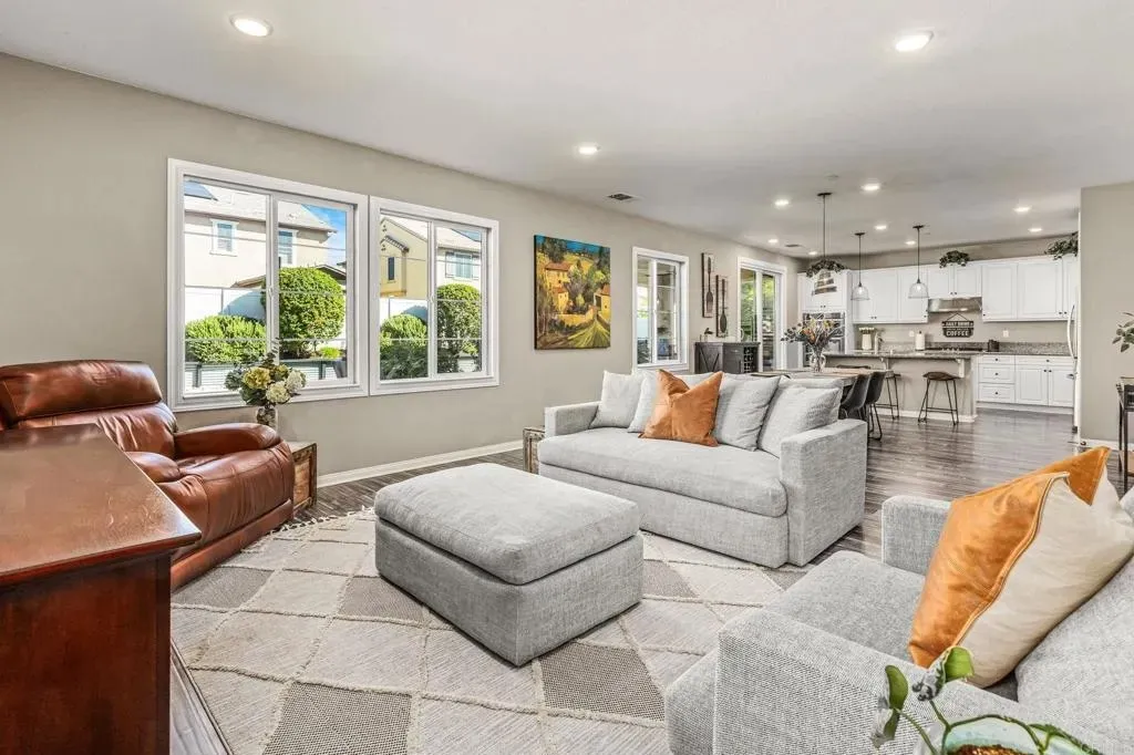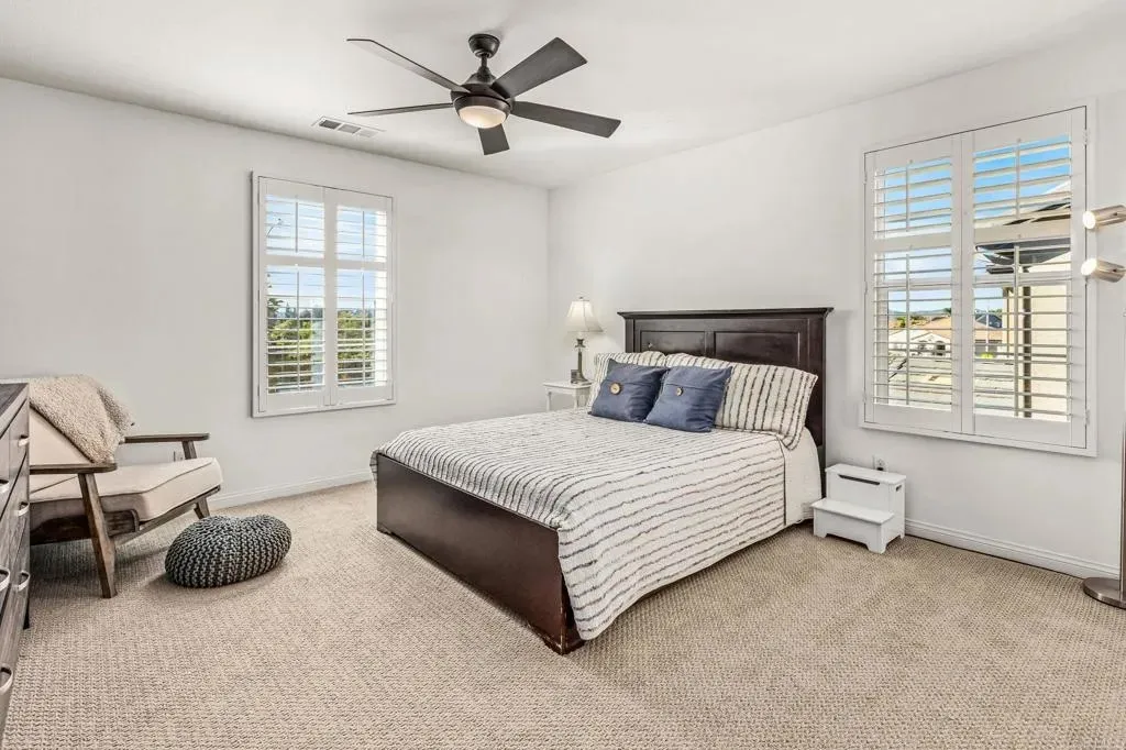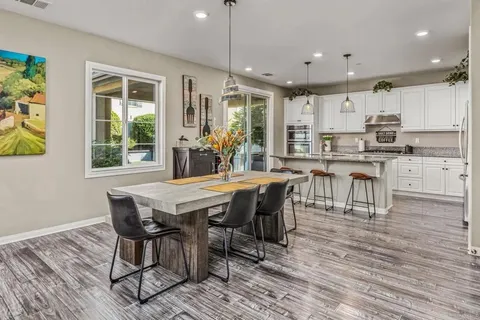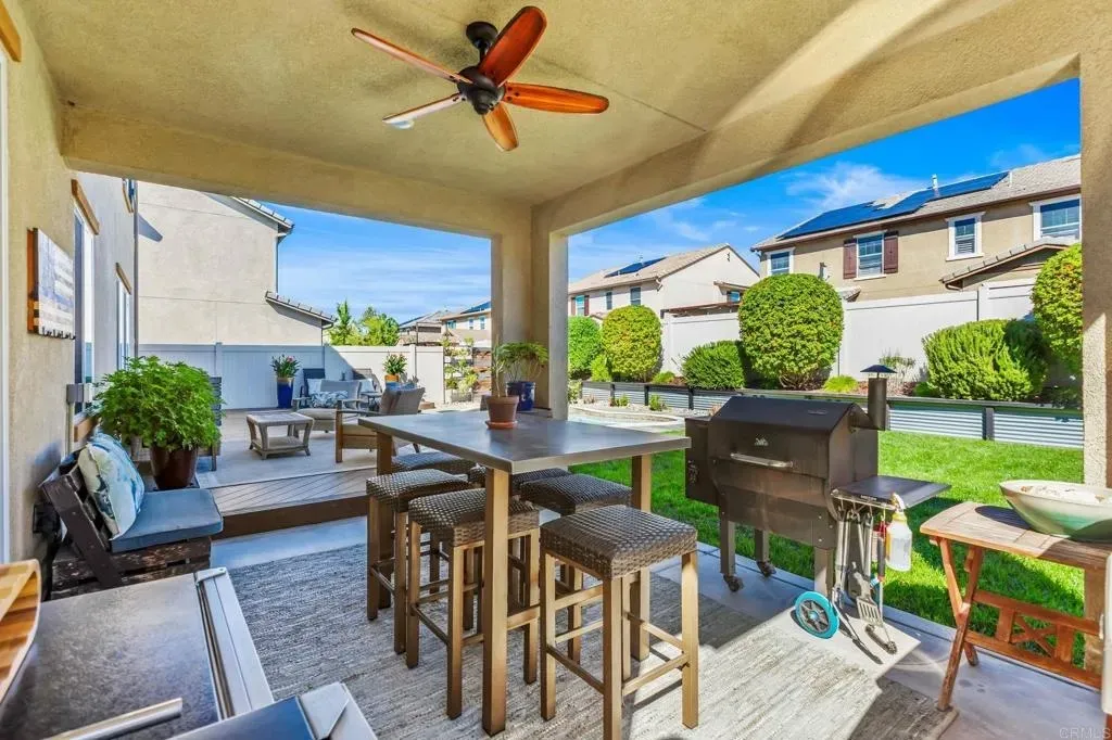 Welcome to one of Santees most coveted addresses. This meticulously upgraded 4 bedroom, 3 bath home in the prestigious River Village enclave offers 2,558 sq ft of refined living, designed for those who value space, style, and smart functionality. Built in 2018 and thoughtfully enhanced since, this residence combines modern elegance with timeless appeal. Step inside to soaring ceilings, abundant natural light, and upscale finishes throughout, including recessed lighting, lifetime warrantied plantation shutters, and designer ceiling fans. A versatile loft adds flexibility for work or play, while the expansive primary suite features a spa-inspired bath with dual vanities and a spacious walk-in closet. Outdoors, your private oasis awaits! A sparkling in-ground pool and spa, Trex decking front and back, built-in gas line for grilling, and a professionally landscaped yard with upgraded drainage and irrigation. Eco-conscious buyers will appreciate the fully paid solar system with twelve panels, an EV charger, rain barrel water capture, and energy-efficient upgrades throughout. The widened driveway and potential RV parking add convenience, while the unbeatable location, directly across from the protected Walker Preserve, ensures open views, privacy, and ample street parking. With low HOA fees and quick access to Santee Lakes, top-rated schools, and scenic trails, this home delivers the perfect balance of luxury and lifestyle.