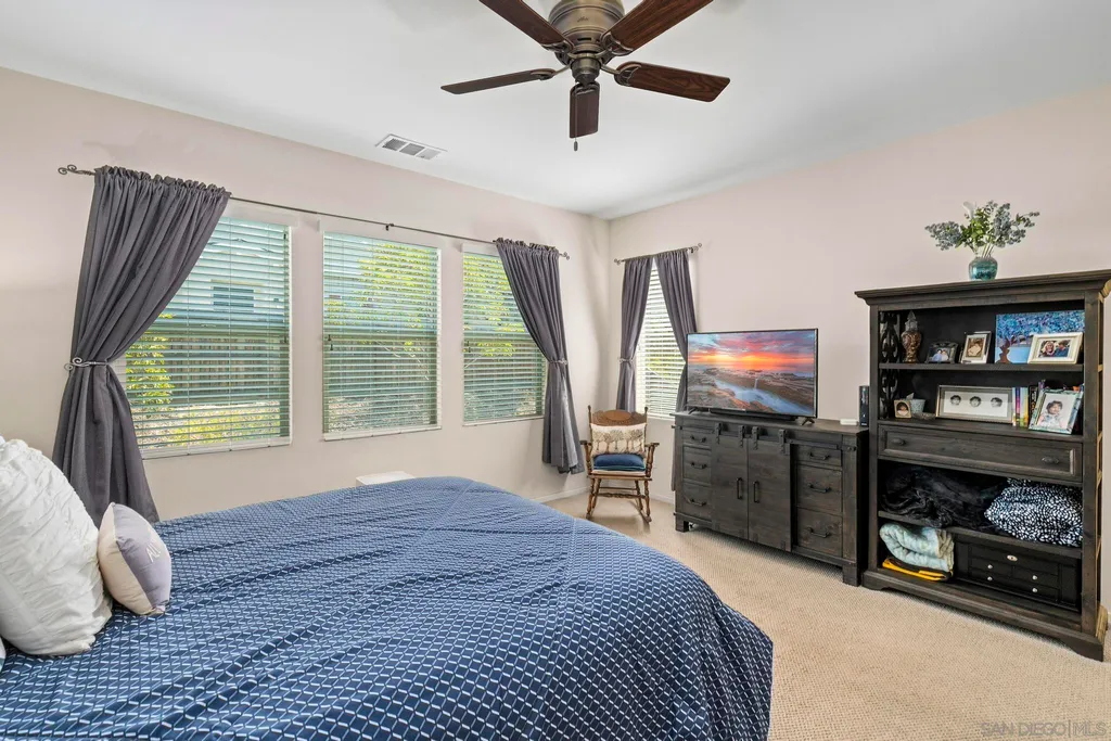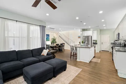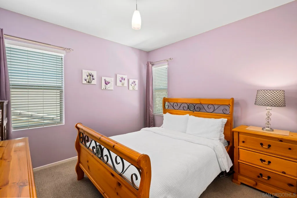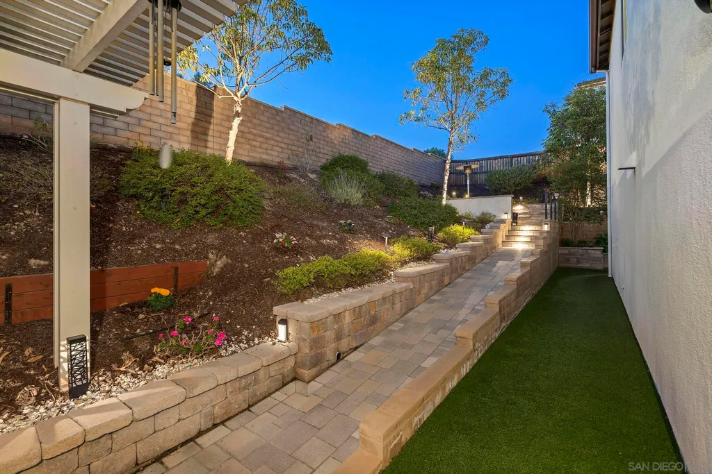 Artistic and whimsical, welcome home to one of Escaya's most beautiful offerings. Feeling good is what it's all about, and from the moment you enter, that is how you'll feel. The color palette, the finishes, and incredible presentation will make you fall in love at first sight. This home has one of the most popular layouts, offering an exceptional open concept floor plan, including a ground floor bedroom and bath. Boasting a grand kitchen, formal dining and gracious family room all opening out to the dream backyard, the entertainment options are endless. Speaking of backyard, a huge capital investment has been made to transform the space with multi-level terraced gardens, built in BBQ, and an elevated sundeck. The home is located at the end of the lane so awash in privacy and tranquility. Escaya is one of Chula Vista's pristine newer communities and Otay Ranch is literally the epicenter of new construction in San Diego County. Every day there is something new to get you excited about! See Supplement for details. Let's get back to the floorplan. Upon entry, you can't help but be inspired by the Vinylux tile flooring. The deep wood finish creates a warm and sophisticated feeling. It is carried throughout the home with the exception of the bedrooms, laundry room and downstairs bath. The bedrooms have an elegant Berber carpet, and tile flooring adorns the laundry and the downstairs bath. The kitchen is huge in context with exceptional granite counters, a wonderful work island and an abundance of cabinetry. The appliances are stainless steel and you will love the walk-in pantry! Upstairs is just as amazing as the 1st level. Walk up the stairwell and you'll enter an eye-popping artist loft area. The loft is bright and full of life and color. This space can easily be a second family room, office or play area. There are two auxiliary bedrooms, both warm and pristine. The primary suite is spacious and gracious. Tasteful and elegant, you will be charmed by the colors, size, and tranquility. The primary bath has a separate deep soaking tub, shower and dual vanity set up. One of the great luxuries of new home builds is the full-service laundry rooms. This one has a view and everything else you'd want in your world of laundry. But let's get back to that dream backyard. It has multiple seating and entertainment spaces including that private elevated sundeck. A combination of turf and pavers grace the entire area and creates the perfect environment. You will love the Pergola, built in BBQ, electric lighting and gas fireplace. The landscape flora, complete with timed sprinkler system, is also vibrant and diverse, and puts the perfect finishing touch to your backyard oasis. The home also features fully paid solar panels, a water softener, Level 2 electric car charger, 2-car garage and a tankless water heater. Escaya features a beautiful pool, gym and clubhouse. Integrated into the community are wonderful playing fields and parks (including a dog park), as well as the new Jeffers Elementary School. Time to make Escaya your new home!