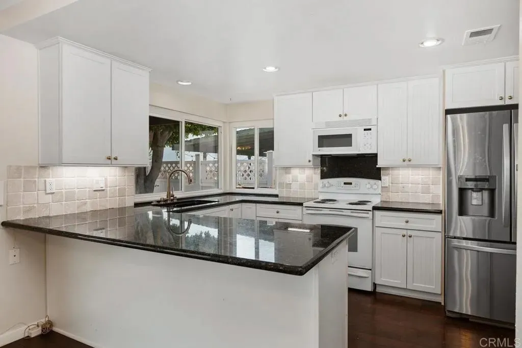 RARE opportunity for a beautiful, move-in ready home with panoramic views in the quaint community of Canterbury Hills. This 3 bedroom/2 bath home features two bedrooms and one bath on the first floor and a full primary suite plus bonus space upstairs. Beautiful wood floors, updated kitchen with Euro white cabinets and granite countertops adjoining the spacious family room, formal living room with soaring ceiling and formal dining room. Incredible backyard retreat features panoramic hillside views. Nearly new HVAC system and water heater, whole-house water filtration and softening system, dual-paned windows, and much more. Canterbury Hills includes a wonderful playground. You're very close to shopping, restaurants, and freeways. Welcome home!