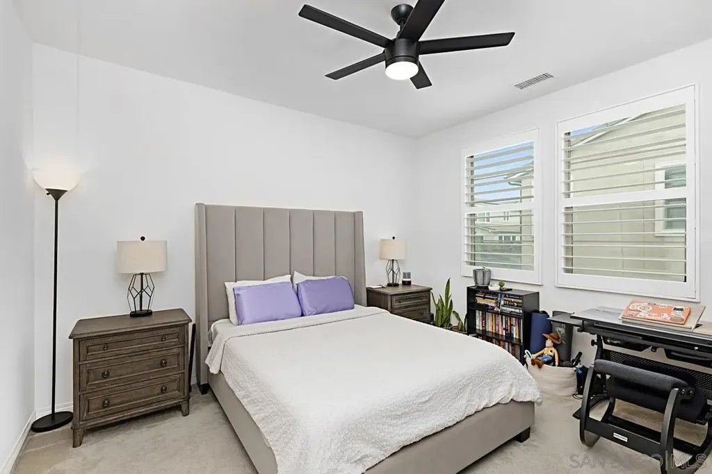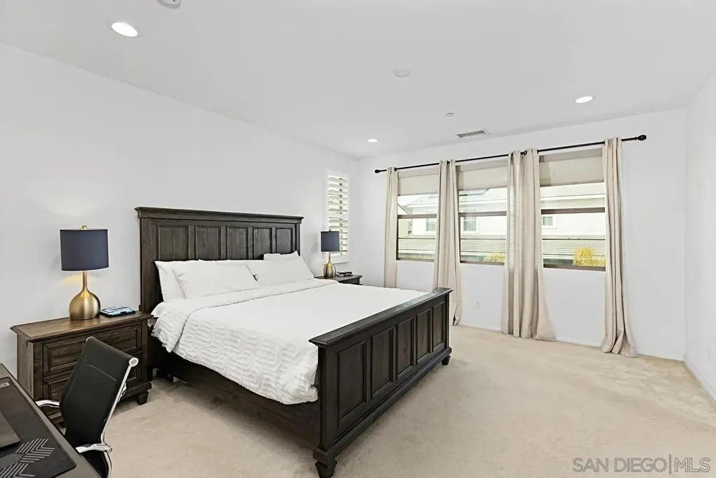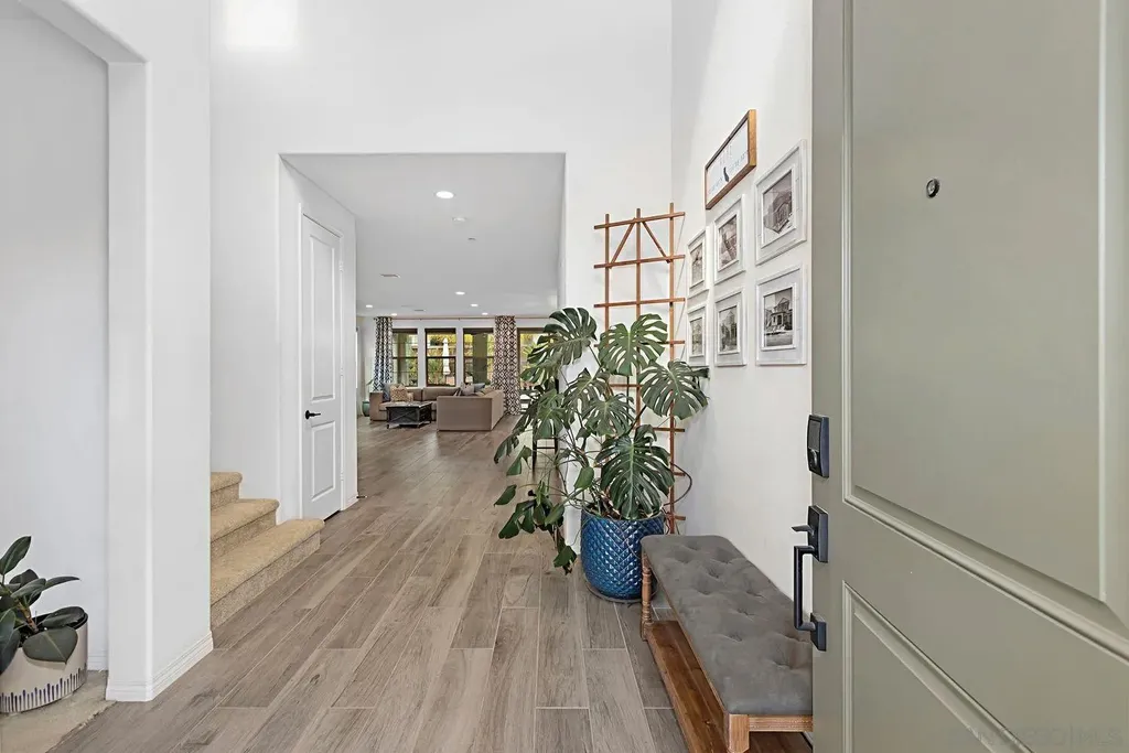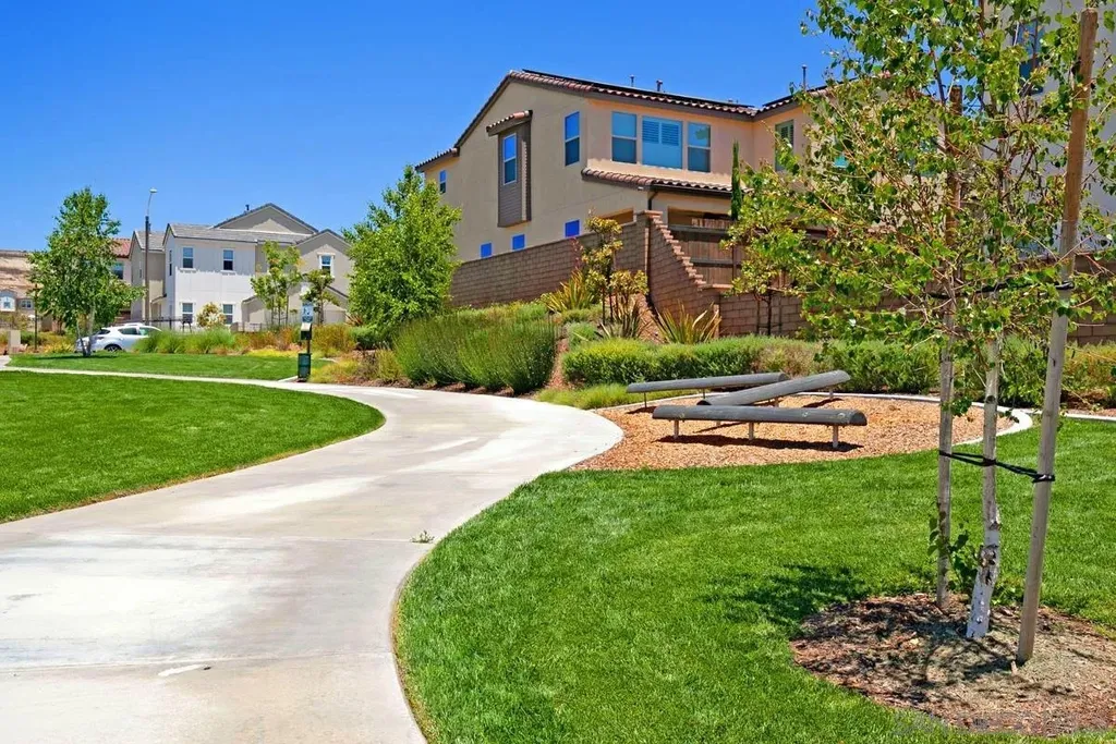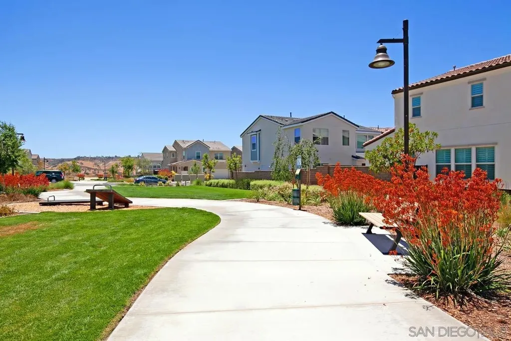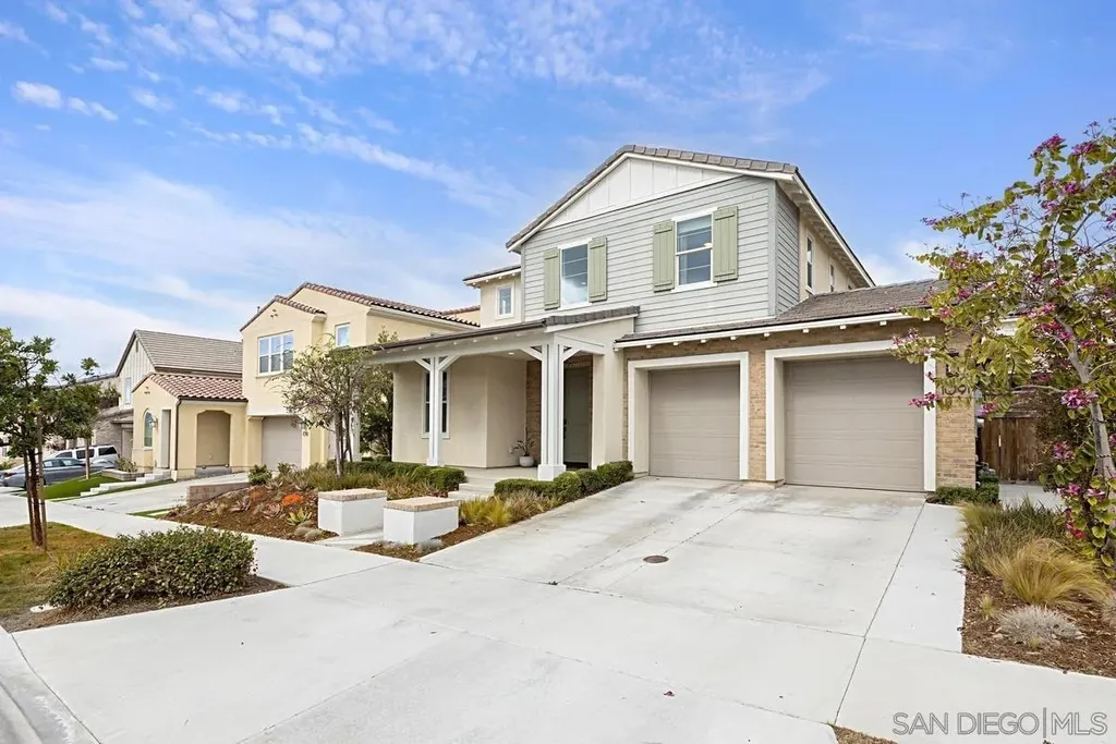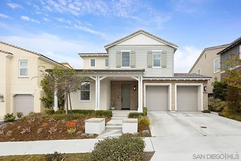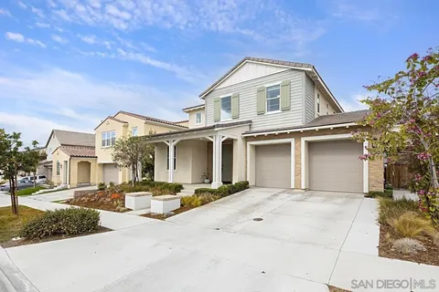 This stunning 3,138-square-foot residence offers four bedrooms, including two primary suites - with one conveniently located on the first floor. The first floor also includes an additional room that can serve as an office or a fifth bedroom. Upstairs you'll find three bedrooms, a loft/additional living space, two full bathrooms, and the laundry room. The state-of-the-art Tesla wall's (2) in the three-car garage provide enough solar power to mitigate your electric bill, charge multiple EV's, and ensure continuous power in case of an emergency. The spacious yard is both beautiful and thoughtfully landscaped featuring ample entertaining and play space. It is a short walk to Escaya Park, Jeffers Elementary, the Harvest Wellness Center and the community pool. A short drive to grocery stores, shopping centers, and the 805 freeway, this is the perfect place to call home.