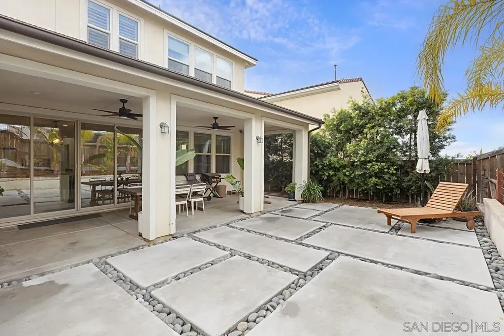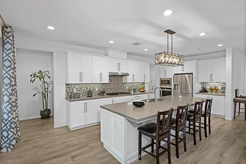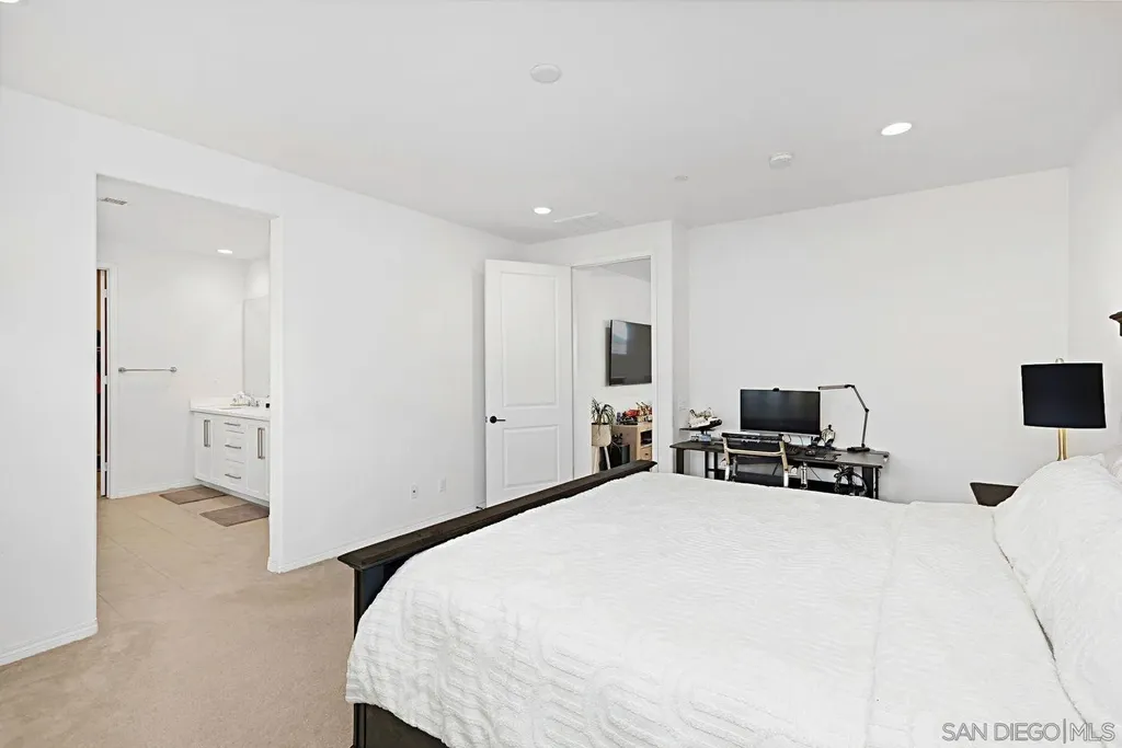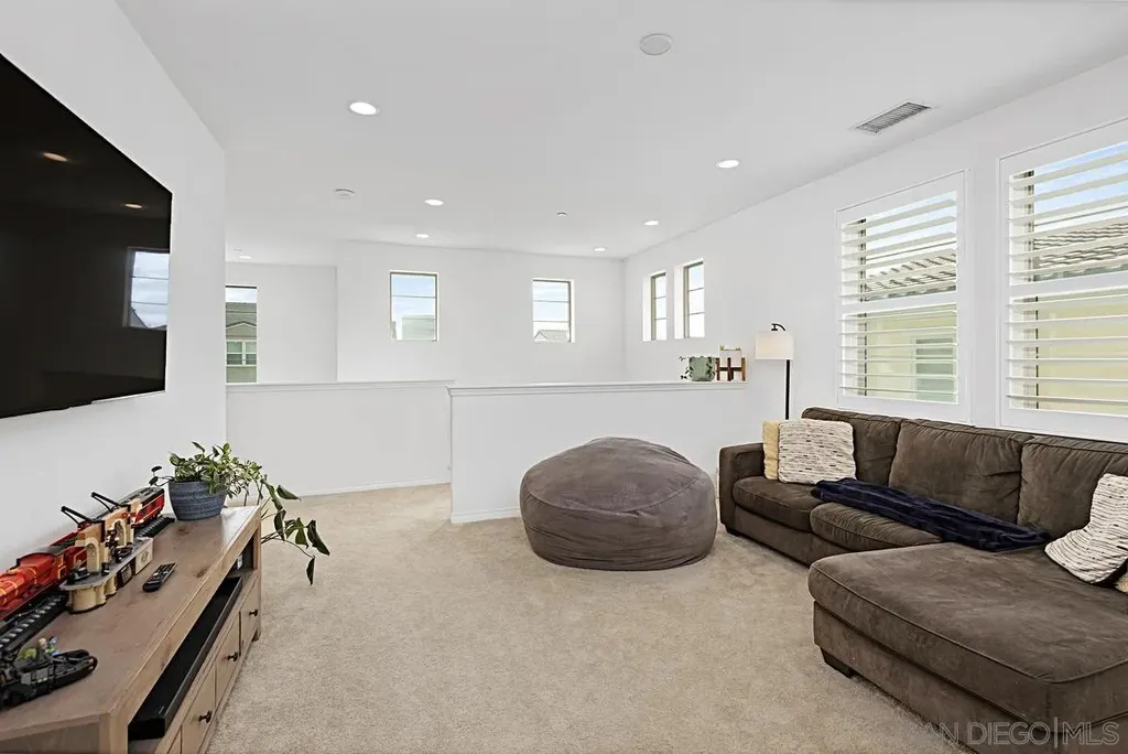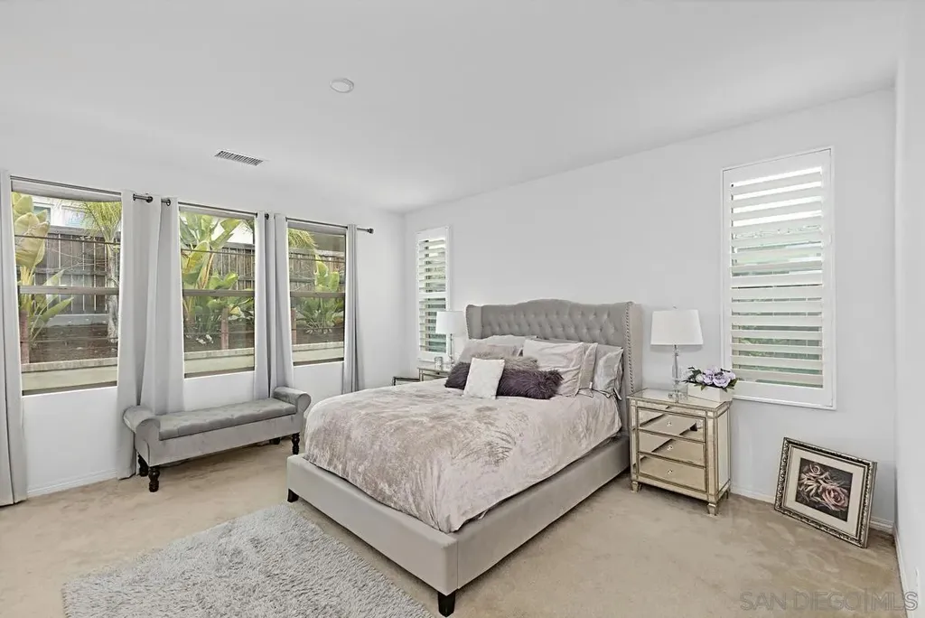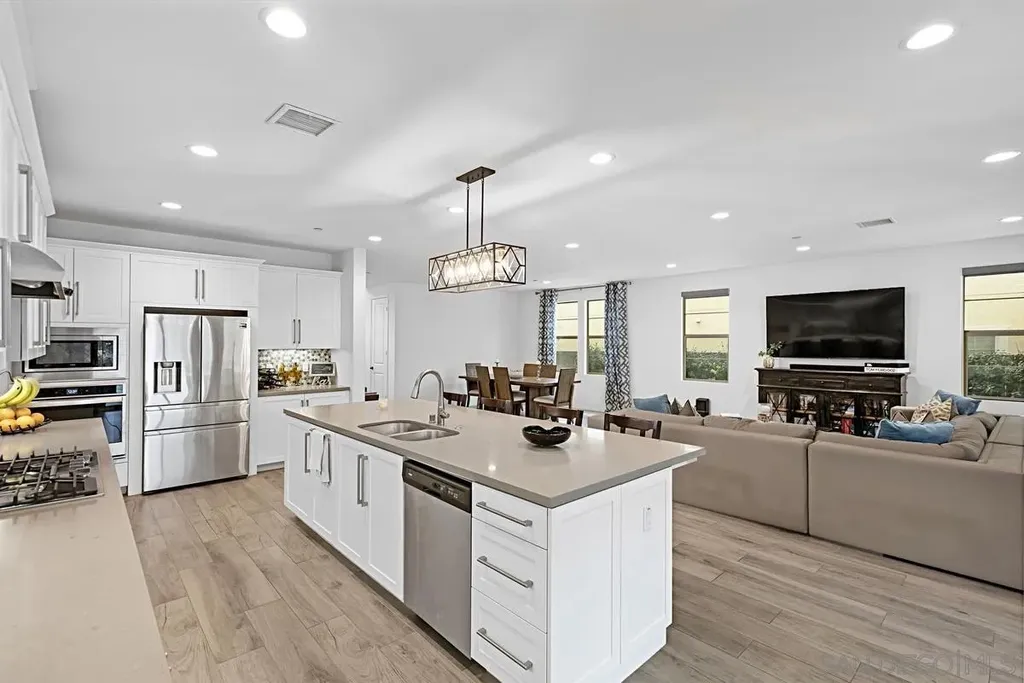 This stunning 3,138-square-foot residence offers four bedrooms, including two primary suites - with one conveniently located on the first floor. The first floor also includes an additional room that can serve as an office or a fifth bedroom. Upstairs you'll find three bedrooms, a loft/additional living space, two full bathrooms, and the laundry room. The state-of-the-art Tesla wall's (2) in the three-car garage provide enough solar power to mitigate your electric bill, charge multiple EV's, and ensure continuous power in case of an emergency. The spacious yard is both beautiful and thoughtfully landscaped featuring ample entertaining and play space. It is a short walk to Escaya Park, Jeffers Elementary, the Harvest Wellness Center and the community pool. A short drive to grocery stores, shopping centers, and the 805 freeway, this is the perfect place to call home.