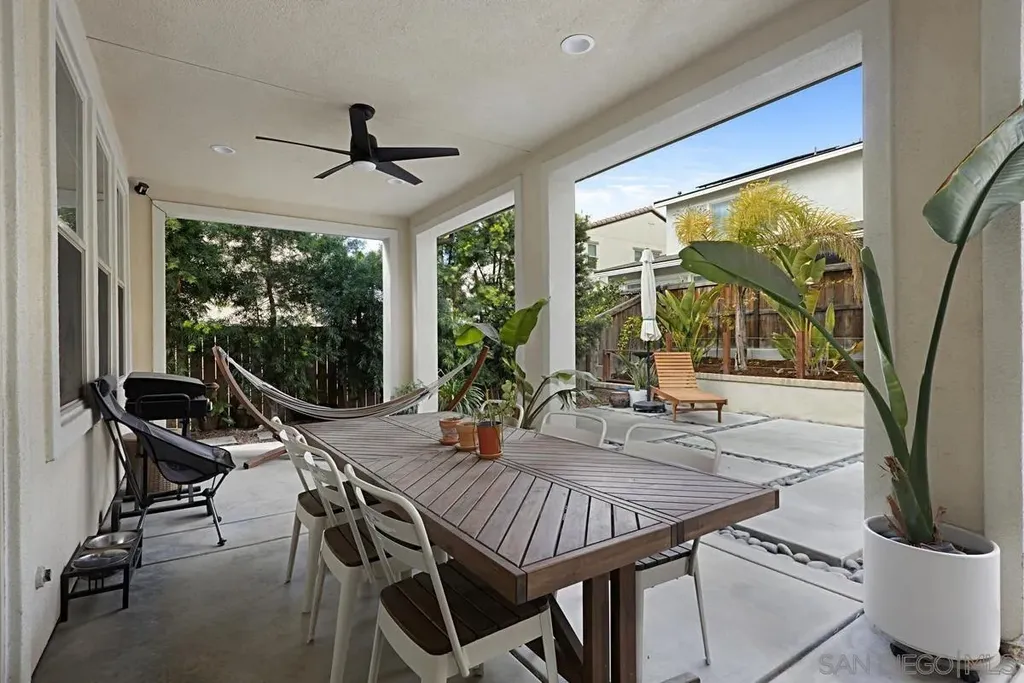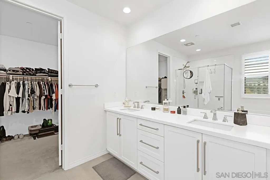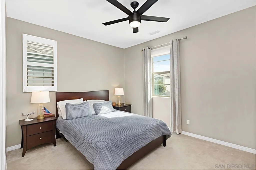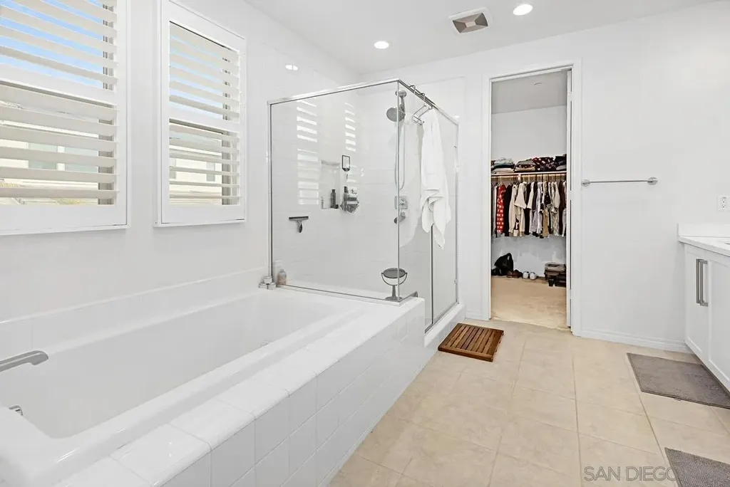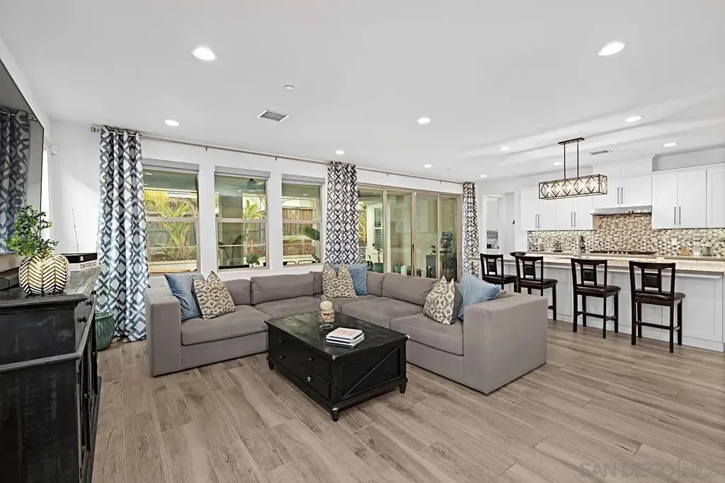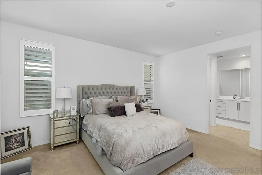 This stunning 3,138-square-foot residence offers four bedrooms, including two primary suites - with one conveniently located on the first floor. The first floor also includes an additional room that can serve as an office or a fifth bedroom. Upstairs you'll find three bedrooms, a loft/additional living space, two full bathrooms, and the laundry room. The state-of-the-art Tesla wall's (2) in the three-car garage provide enough solar power to mitigate your electric bill, charge multiple EV's, and ensure continuous power in case of an emergency. The spacious yard is both beautiful and thoughtfully landscaped featuring ample entertaining and play space. It is a short walk to Escaya Park, Jeffers Elementary, the Harvest Wellness Center and the community pool. A short drive to grocery stores, shopping centers, and the 805 freeway, this is the perfect place to call home.