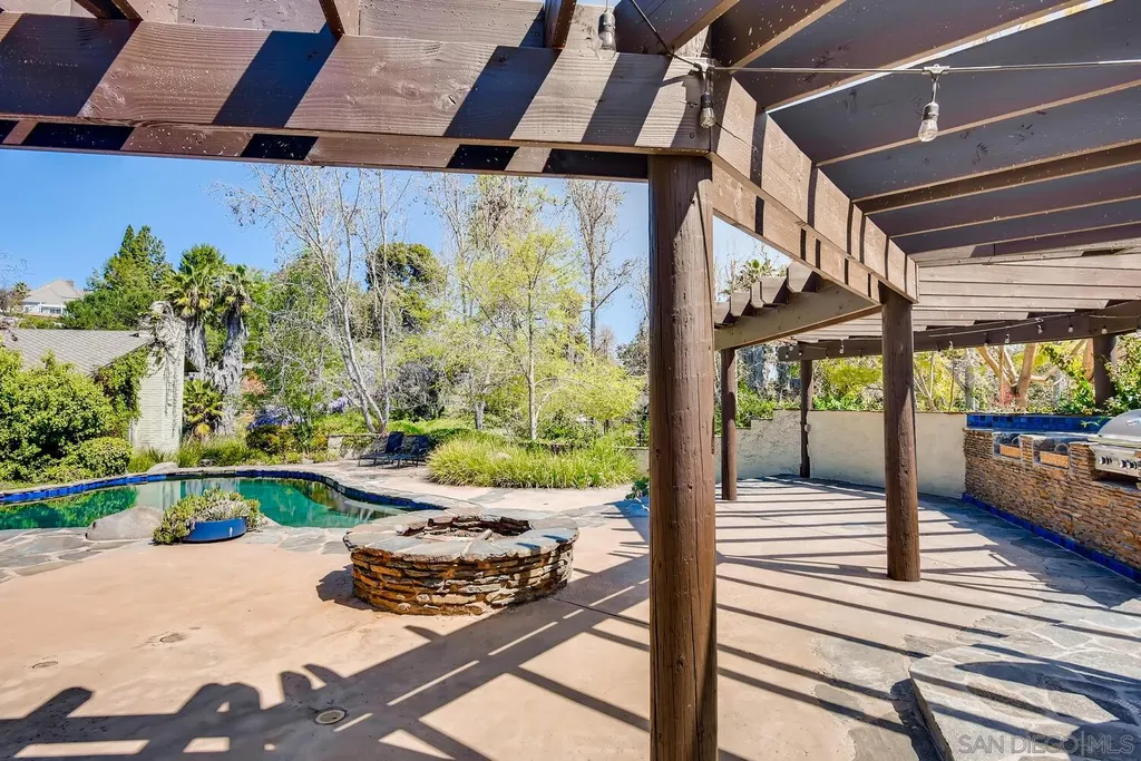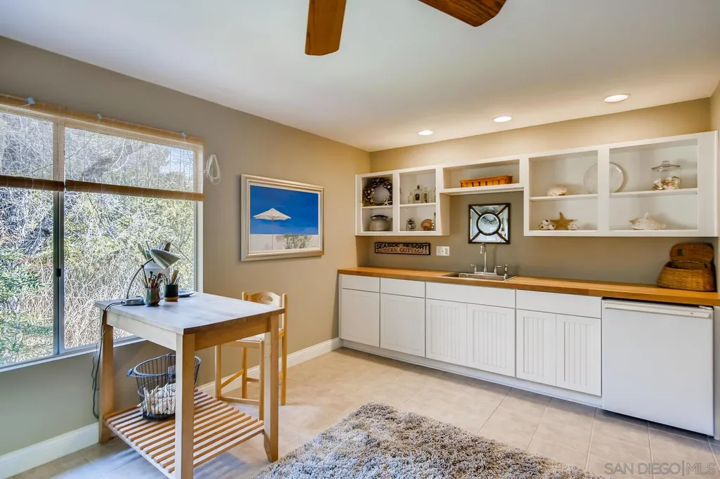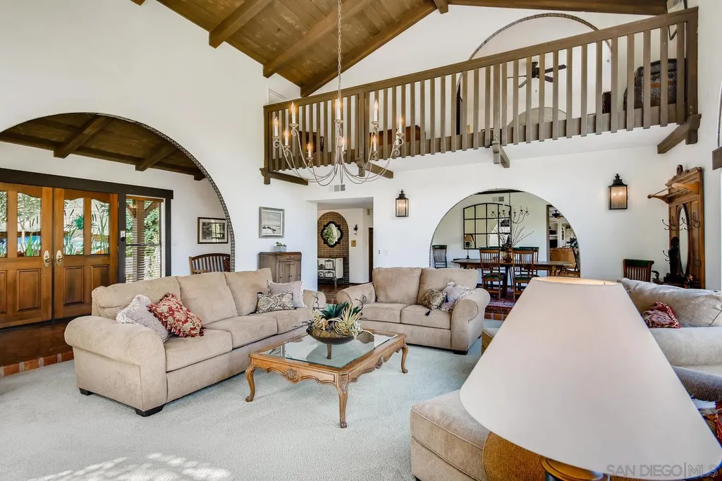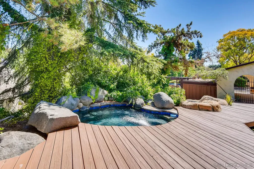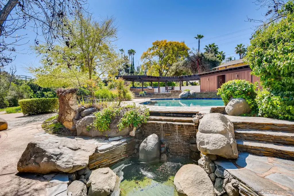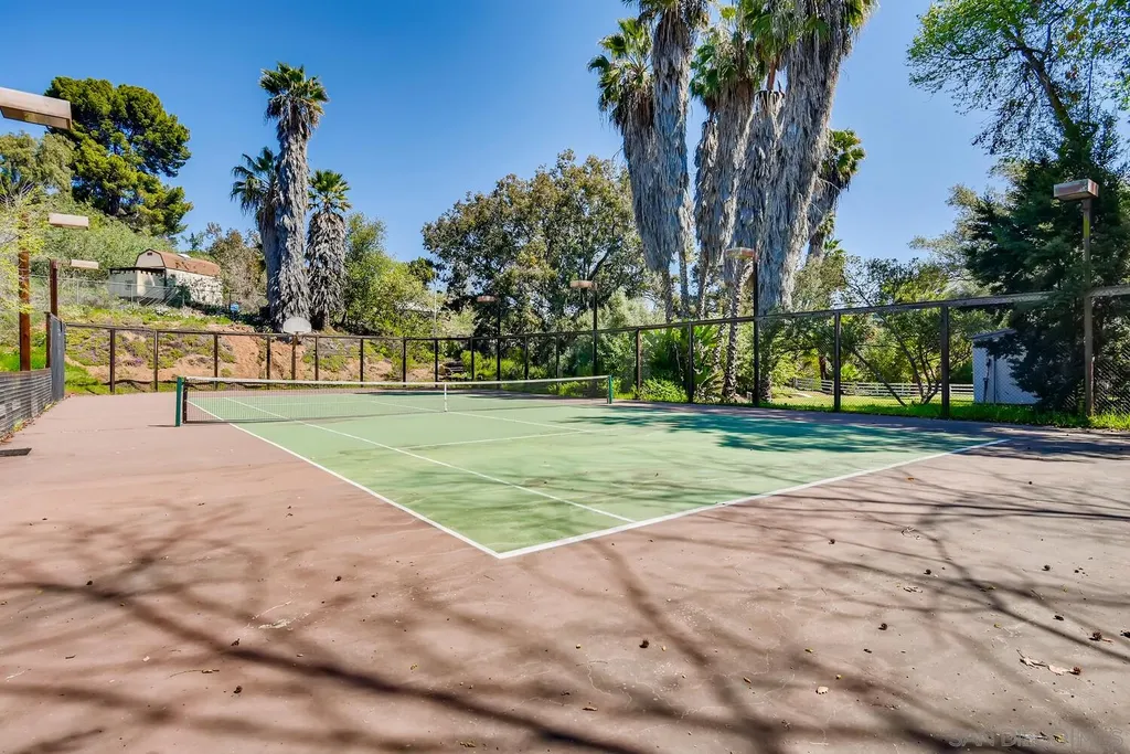Spacious (3456 sq ft) Mt Helix home features..Quiet location (1.9 acres), lighted Tennis Court, Private Lake, Sparkling swimming pool- slide down tiled water slide into the pool!.. Private bubbling spa..Separate barbecue entertainment area..3 Car garage with workshop area + room to park an additional 10+ cars and RV parking... 5 Bedroom Monterey Revival styled home..Double door entry opens to entertainment size living room featuring 20ft vaulted ceilings + wall of glass overlooking home's private lake.. Bright and light spacious kitchen with stainless steel appliances + Additional dining area.. Bonus room downstairs is an ideal office, den or for extended family (features bedroom, full bath+additional separate living area).