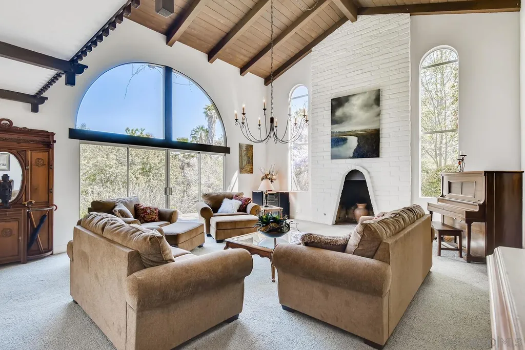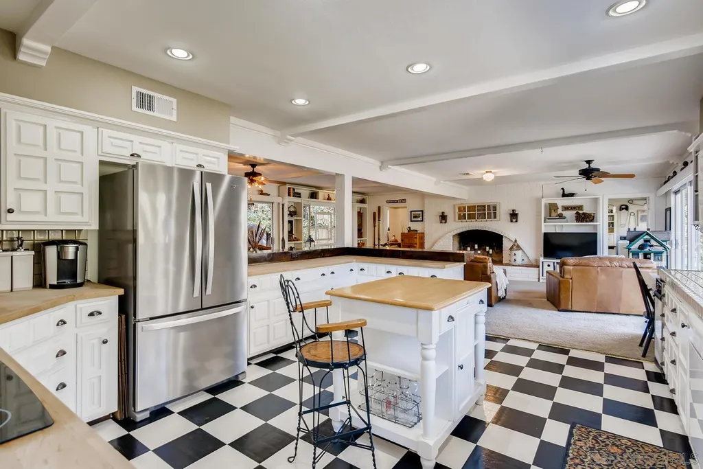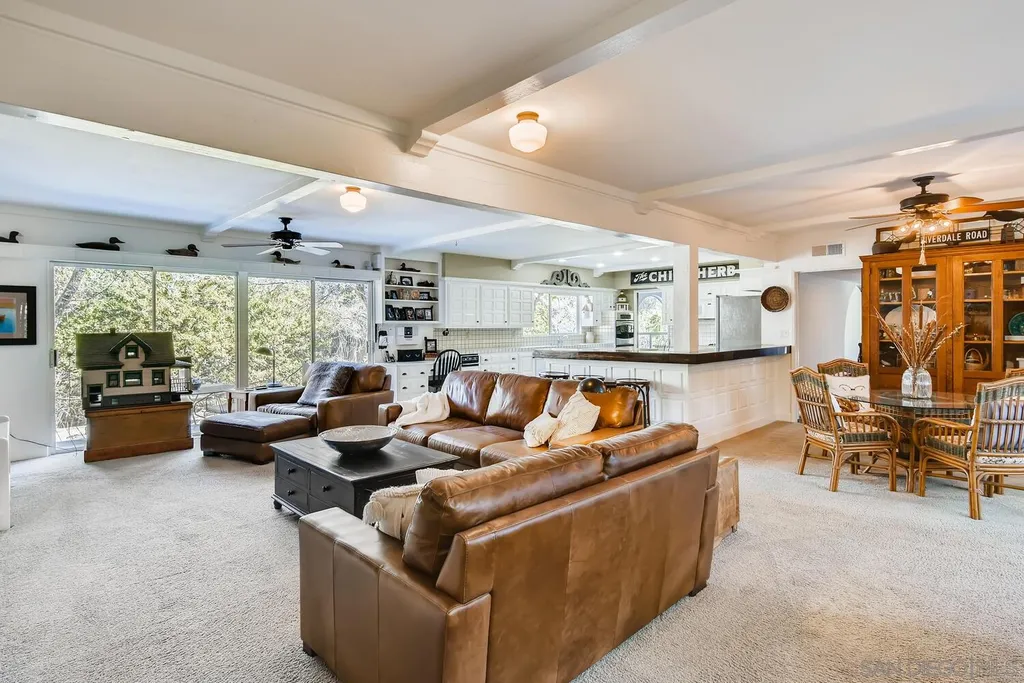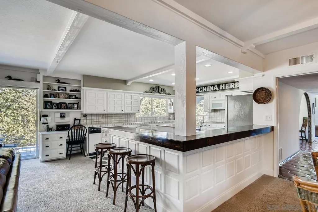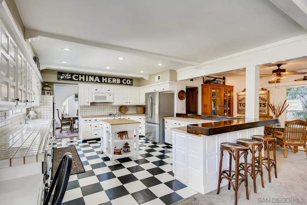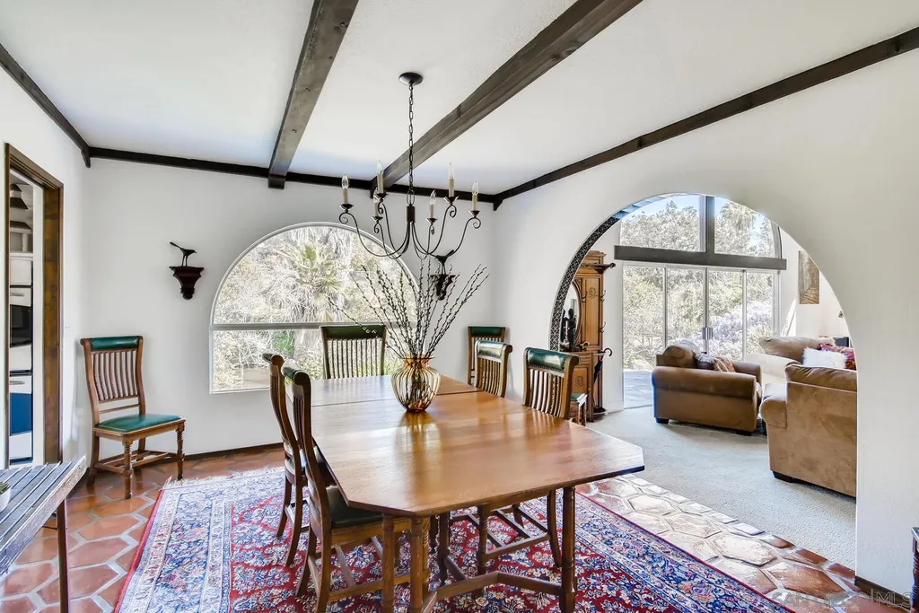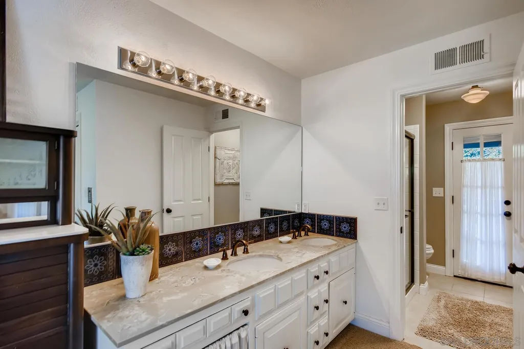 Spacious (3456 sq ft) Mt Helix home features..Quiet location (1.9 acres), lighted Tennis Court, Private Lake, Sparkling swimming pool- slide down tiled water slide into the pool!.. Private bubbling spa..Separate barbecue entertainment area..3 Car garage with workshop area + room to park an additional 10+ cars and RV parking... 5 Bedroom Monterey Revival styled home..Double door entry opens to entertainment size living room featuring 20ft vaulted ceilings + wall of glass overlooking home's private lake.. Bright and light spacious kitchen with stainless steel appliances + Additional dining area.. Bonus room downstairs is an ideal office, den or for extended family (features bedroom, full bath+additional separate living area).