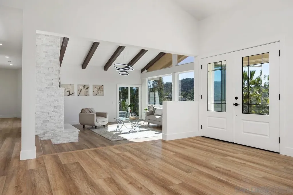 One of a kind property in the Buena Creek area of Vista. Incredible views all the way to the ocean! This home has been completely remodeled featuring very open living spaces, brand new flooring, tile, cabinetry and counter tops throughout. Home features two primary suites, large single unit shower/tub combo. As you venture outside you will see an incredibly open outdoor patio area great for hanging out, family gatherings and throwing a party or two, your neighbors are far away, with such a large party you will feel somewhat isolated on this amazing private property. Finished basement underneath home is perfect to be used as an JADU or a game room. Additional structure on property can be great for a yoga studio or small gym. The property sits on almost 3 acres, and still has so much room to grow! Plenty of land to build an additional ADU with its own separate driveway. The lot can even be split for another home to be built. There are endless opportunities on this rare piece of real estate!