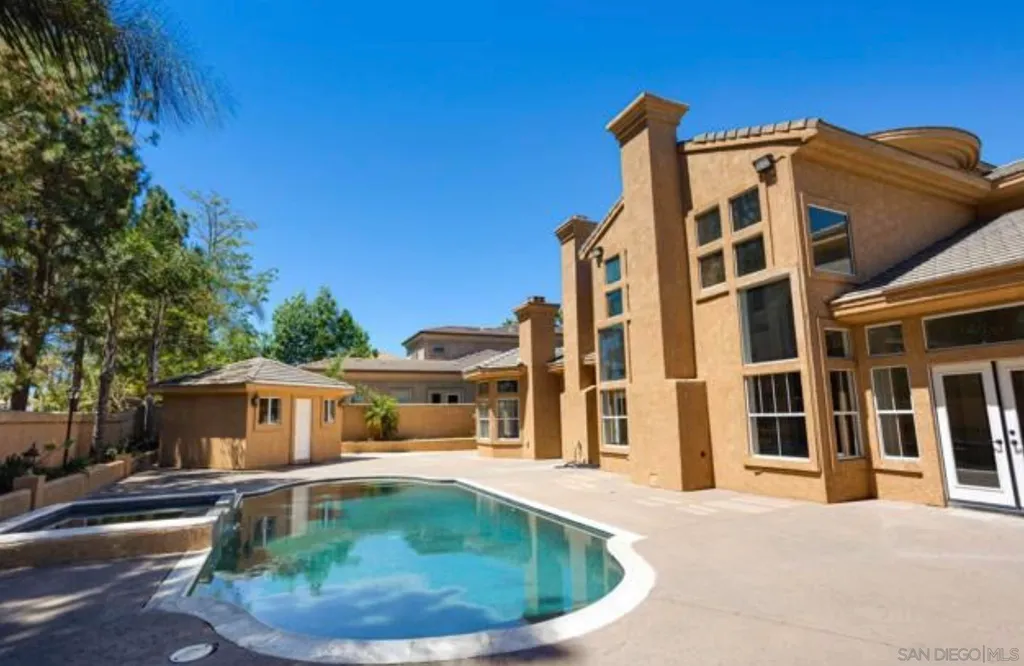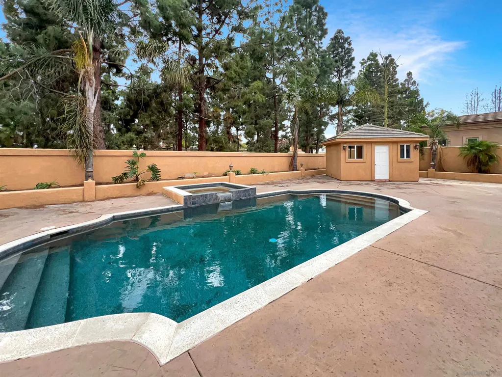 Welcome to the beautiful Belmonte Estates gated community! Impressive architectural design, dramatic entry with double doors and coffered ceilings. Large private lot with pool, jacuzzi, an outdoor pool house with bathroom, outdoor BBQ, and a 4 car garage. Primary suite on the main floor w/jacuzzi, two walk-in his and hers closets and dressing area, all bedroom's with baths. Enjoy life in the beautiful community of Rancho del Rey!