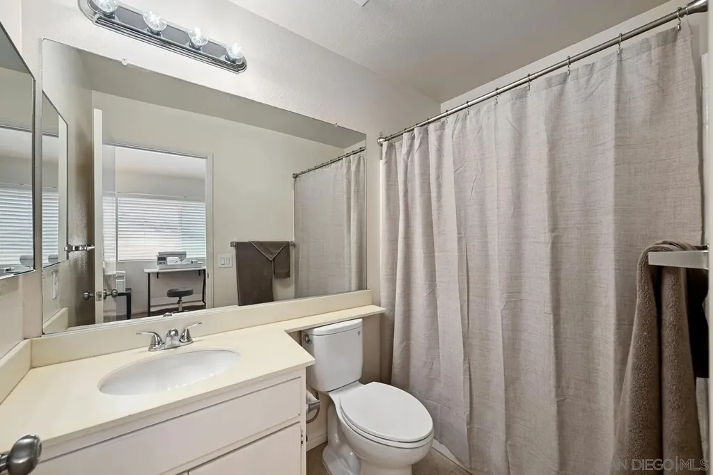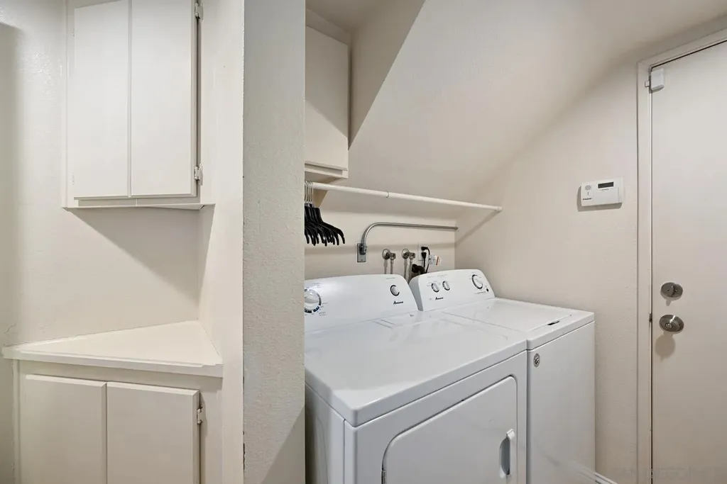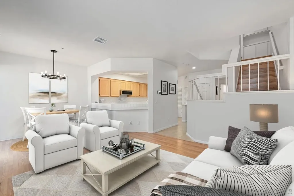 Located in the desirable community of Rancho San Diego, this 2-bedroom, 2.5-bath home offers the comfort and feel of a detached residence. The open floor plan features soaring vaulted ceilings, a cozy fireplace, and a dining area that flows seamlessly into the kitchen. There is a large private patio - perfect for indoor-outdoor living in the San Diego summer. Upstairs, you'll find two spacious primary suites, each with its own bathroom for ultimate privacy. Additional highlights include an attached 1-car garage, FHA and VA approval, and a quiet location within the complex, just steps from the community pool and spa. With its bright, airy layout and prime location, this home combines convenience, style, and comfort in one inviting package.