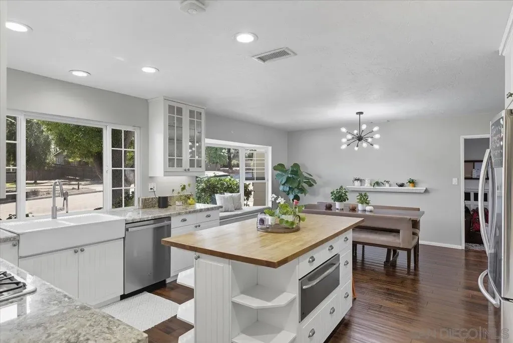Nestled in the highly desirable Mt. Helix community, 11656 Altoona Dr is a 3-bedroom, 3 bath home on a generous half-acre lot offering privacy, space, and endless possibilities. The family room features soaring vaulted ceilings and a cozy fireplace, creating a welcoming centerpiece along with the living room for family gatherings or entertaining friends. The kitchen and bathrooms have been thoughtfully upgraded, providing both style and functionality with a large island, separate dining area and reading nook. Outdoors, the expansive yard features a fire pit and ample open space, perfect for outdoor dining, gardening, or designing your dream retreat. The two-car garage has been converted to a versatile office and storage area, while a separate laundry room adds convenience for daily living. Located in a peaceful, scenic neighborhood, this home offers easy access to top-rated schools, parks, and local shopping. Combining comfort, practicality, and the sought-after Mt. Helix lifestyle.
