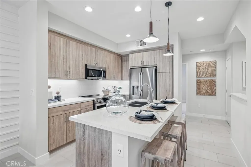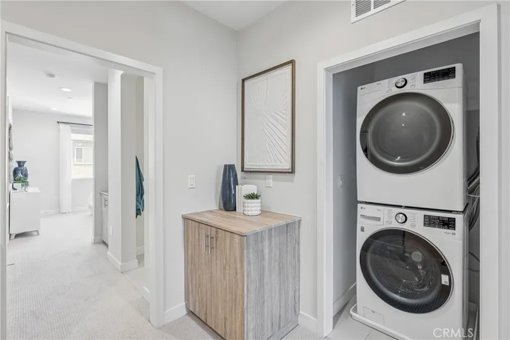Stunning model home! Eginhouse is a collection of modern, solar-powered townhomes in Artesia. Lot 53 our plan 1 model home features 3 bedrooms and an impressive list of smart technologies - solar panels, learning thermostats, water-saving fixtures, and all-electric appliances. Designer selected features include LG tainless kitchen appliances, flat panel cabinets, quartz kitchen countertops, upgraded flooring package and more. Concessions available for contract this week [Eginhouse][Plan 1]
