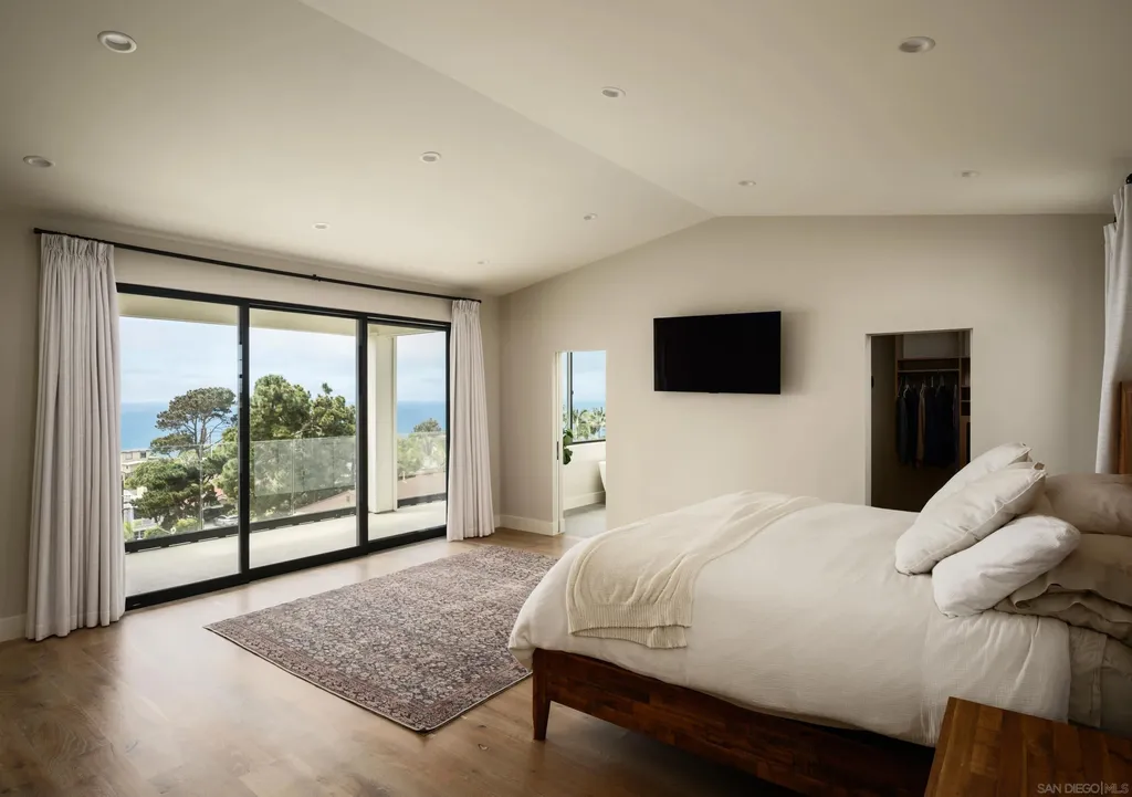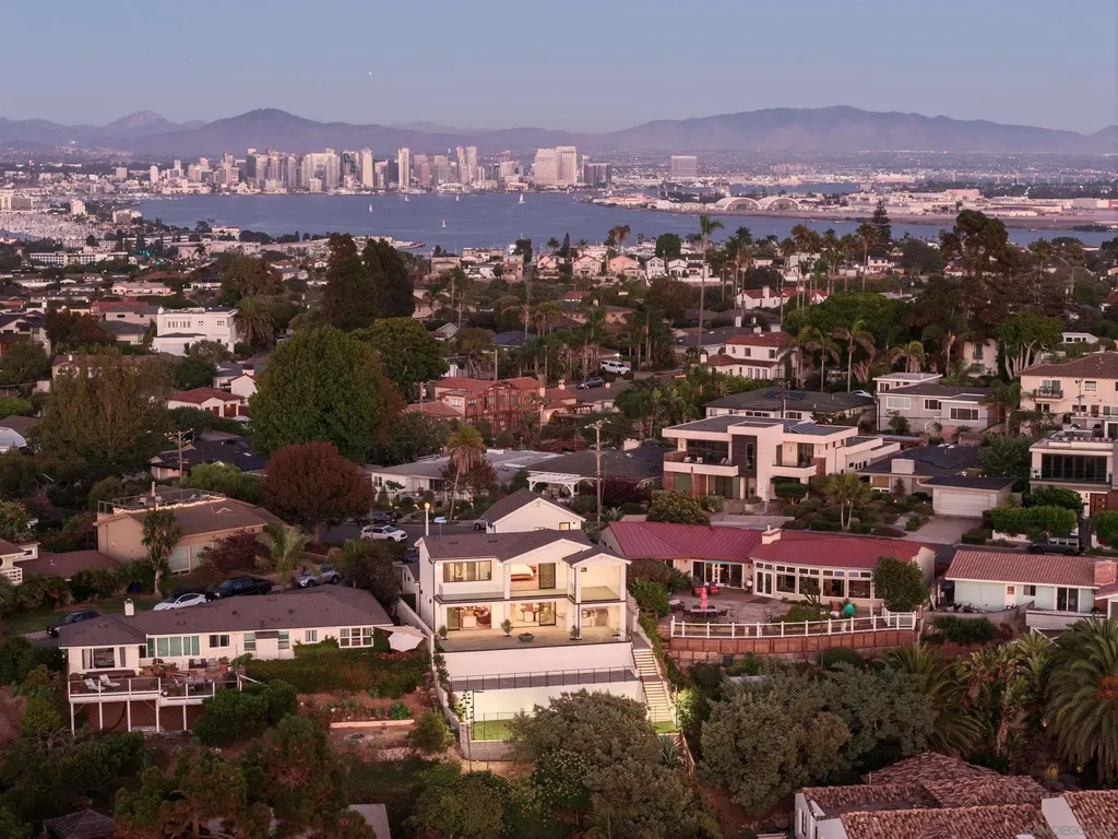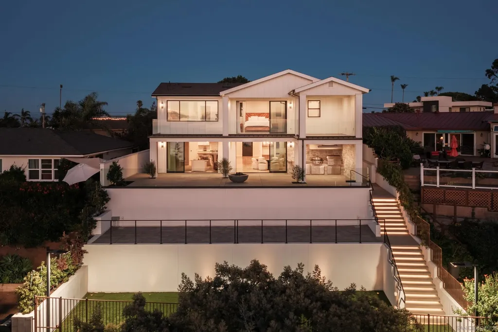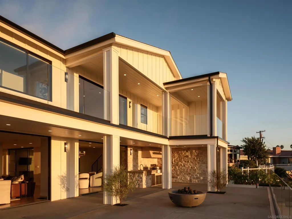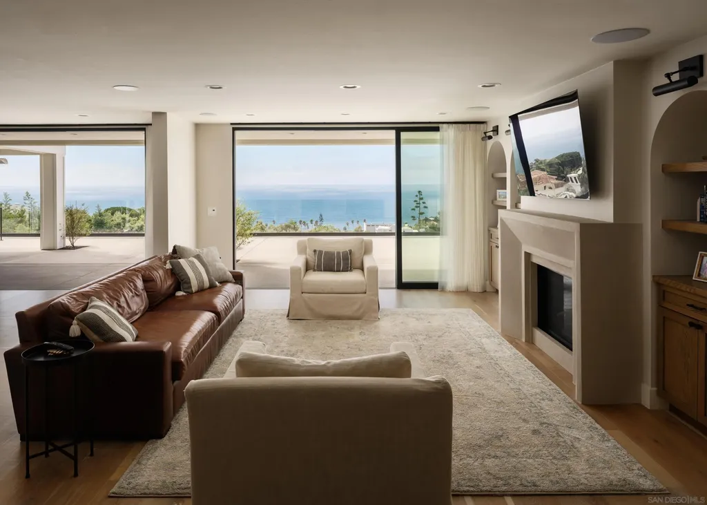 Perched above the Pacific in the coveted enclave of Sunset Cliffs in Point Loma, San Diego, this custom home captures the essence of California coastal living with unobstructed, panoramic ocean views where the expansive blue sea captivates you by day and mesmerizing sunsets invite a night sky engulfed in stars. Thoughtfully reimagined, the home blends timeless character with modern sophistication - where layered textures, earthy tones, and custom craftsmanship create a warm yet refined aesthetic. Inside, a chef's Wolf stove, solid white oak floors, Hermitage stone, and a bespoke fireplace anchor the living spaces. Every ensuite bedroom provides comfort and function, while the upstairs primary suite engulfs you in luxury with custom cabinetry, walk-in closet, spa tub, a Mr. Steam oversized shower, and retractable glass walls that seamlessly blend interior and exterior. Private guest quarters over the garage make hosting guests or family effortless. Engineered for both elegance and resilience against the elements, the home offers a reinforced foundation, Hardy board siding, new water and electric systems, and a 1.5 water meter for future expansion. Enjoy the year-round lifestyle with EVOO + Lynx BBQ kitchen, Milgard doors, epoxy garage, a sport court with stadium lighting, plus a second level landing designed to convert into an infinity lap pool. From the glass railings that frame endless sunsets to every thoughtfully curated finish, this is more than a home. It's a coastal retreat built for living, entertaining, and evolving, in one of San Diego's most iconic communities!