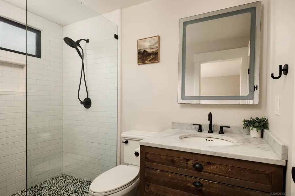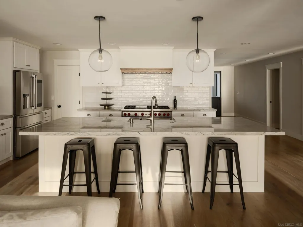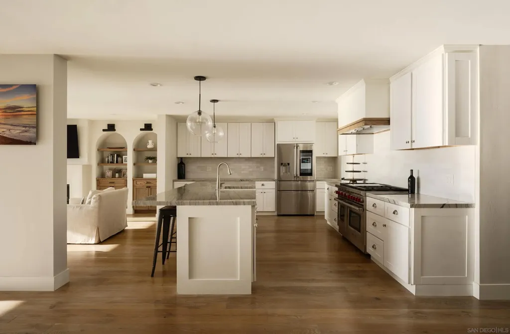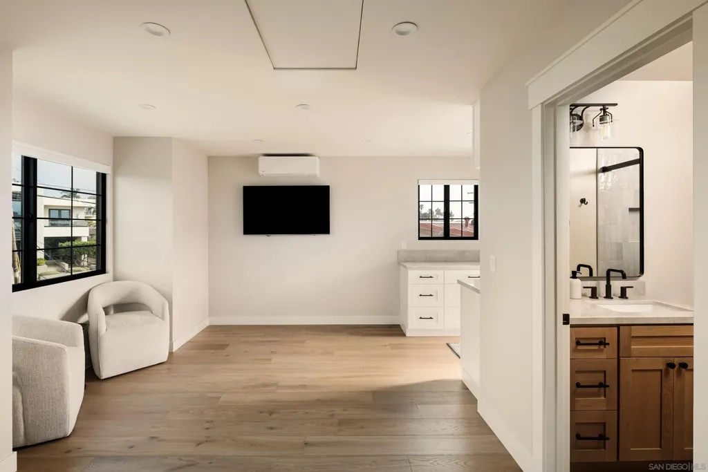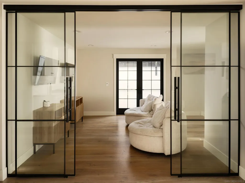 Perched above the Pacific in the coveted enclave of Sunset Cliffs in Point Loma, San Diego, this custom home captures the essence of California coastal living with unobstructed, panoramic ocean views where the expansive blue sea captivates you by day and mesmerizing sunsets invite a night sky engulfed in stars. Thoughtfully reimagined, the home blends timeless character with modern sophistication - where layered textures, earthy tones, and custom craftsmanship create a warm yet refined aesthetic. Inside, a chef's Wolf stove, solid white oak floors, Hermitage stone, and a bespoke fireplace anchor the living spaces. Every ensuite bedroom provides comfort and function, while the upstairs primary suite engulfs you in luxury with custom cabinetry, walk-in closet, spa tub, a Mr. Steam oversized shower, and retractable glass walls that seamlessly blend interior and exterior. Private guest quarters over the garage make hosting guests or family effortless. Engineered for both elegance and resilience against the elements, the home offers a reinforced foundation, Hardy board siding, new water and electric systems, and a 1.5 water meter for future expansion. Enjoy the year-round lifestyle with EVOO + Lynx BBQ kitchen, Milgard doors, epoxy garage, a sport court with stadium lighting, plus a second level landing designed to convert into an infinity lap pool. From the glass railings that frame endless sunsets to every thoughtfully curated finish, this is more than a home. It's a coastal retreat built for living, entertaining, and evolving, in one of San Diego's most iconic communities!