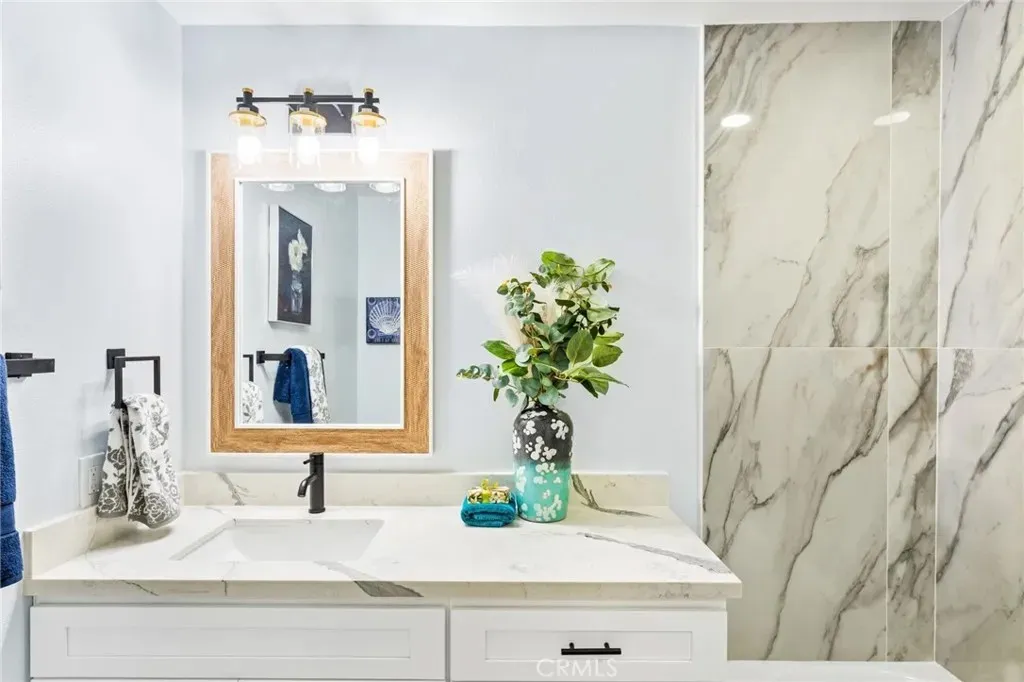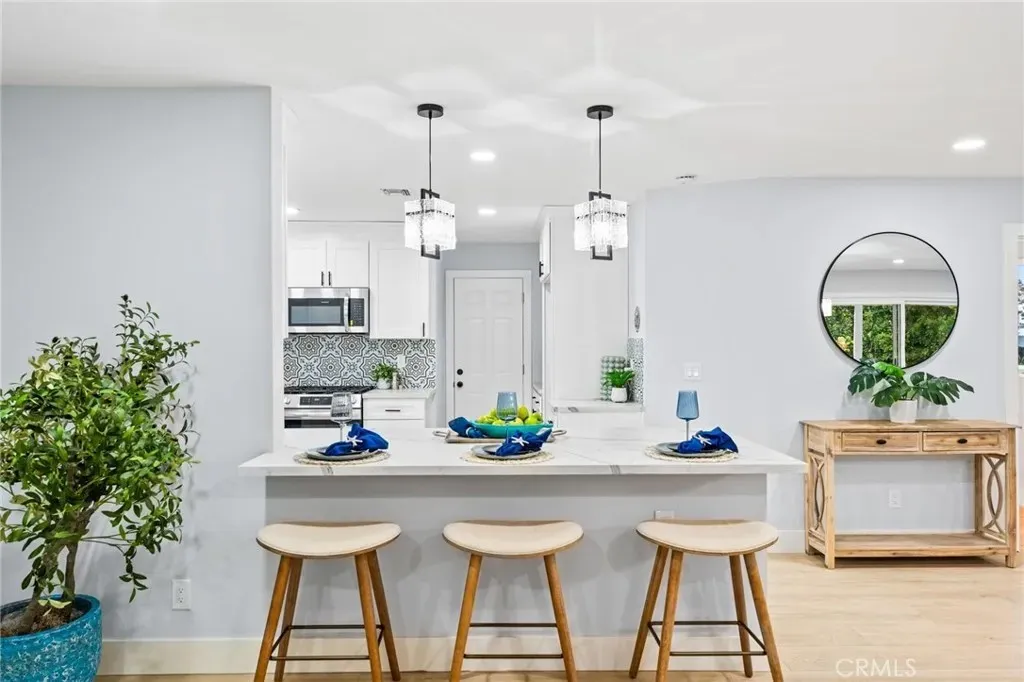 More pictures to come today. Step Into Your Dream Home! Discover this stunning single-level 3-bedroom, 2-bathroom home offering 1,534 sq. ft. of upgraded living space on a generous 7,590 sq. ft. lot. From the moment you arrive, the meticulously landscaped front yard and charming accent door set the tone for whats inside. Highlights Youll Love: Bright & Open Layout: A welcoming living room with an electric fireplace flows seamlessly into the spacious, upgraded kitchenperfect for entertaining. Chefs Kitchen: Enjoy quartz countertops, a peninsula island with breakfast bar, tile backsplash, recessed lighting, and a new appliance package. Modern Finishes: Freshly painted interiors, elegant tile and vinyl flooring, and abundant natural light throughout. Primary Suite Retreat: Features a walk-in closet and a luxurious ensuite bath with a walk-in shower and quartz counters. Ample Parking & Storage: A finished garage with new door and opener, plus a driveway that fits three cars. Outdoor Oasis: A large patio with enclosed area and lighting, low-maintenance landscaping, and room to add a pool or garden. Location Perks: Conveniently close to Fwy 22 and 55, offering easy access to everything Southern California has to offer. This home blends comfort, style, and functionalityideal for both relaxation and entertaining. Dont miss out! Schedule your private tour today and make this beautiful home yours.
