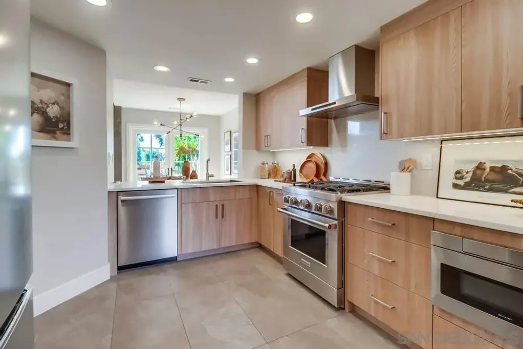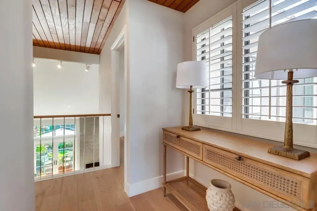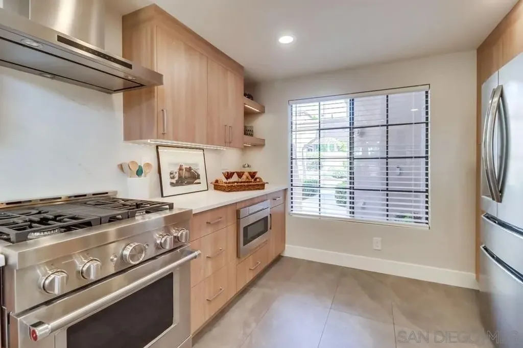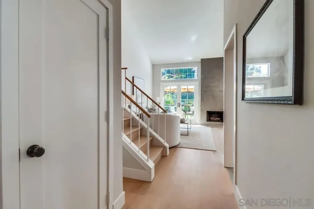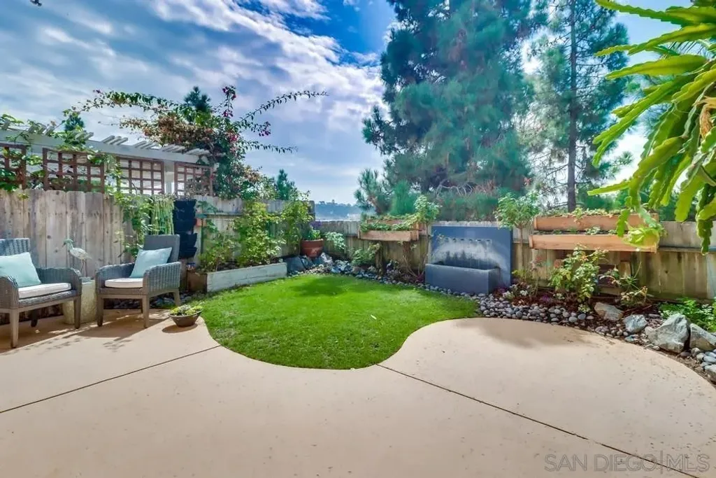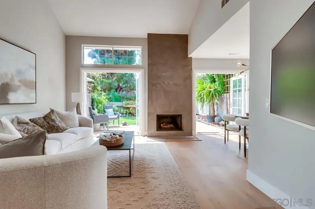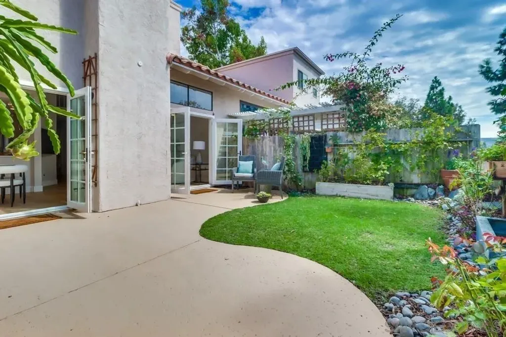Accepting Backup offers - Stunning, sophisticated and located in the best location in the complex with views of Torrey Pines. Private and peaceful garden with beautiful fountain and a small grassy area on sprinkler system. This amazing home has been thoughtfully upgraded including a brand-new luxury kitchen with top-of-the-line appliances as well as designer bathrooms, new water resistant 8" white oak engineered hardwood floor, new plumbing, and high-end finishes throughout including a Tesla EV charger and new 125 AMP electric.Daily ocean breezes and walking distance to One Paseo and 5 minutes to the beach. Custom wood ceiling in the second floor hallway adds warmth and is a dramatic statement, custom built in bookshelves in the second bedroom have smart lighting installed and adds flexibility to be used as a home office. See attached list of upgrades. Offering two spacious ensuite bedrooms, perfect for privacy, comfort, and flexibility - ideal for dual primary suites, guests, or a home office setup. , perfect for the discerning chef. Backing to tranquil open space, the expansive yard is a gardener's paradise, featuring mature berry plants, a curated rose garden, a fountain and unique dragon fruit trellises - ideal for outdoor relaxation or entertaining.
