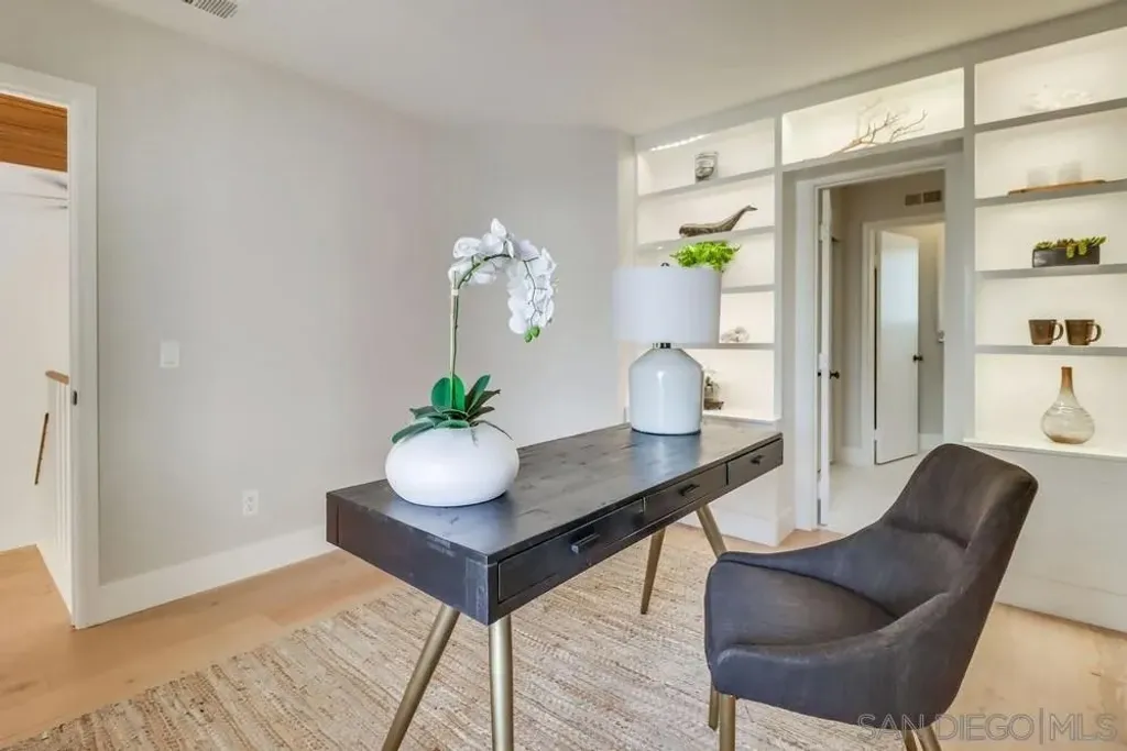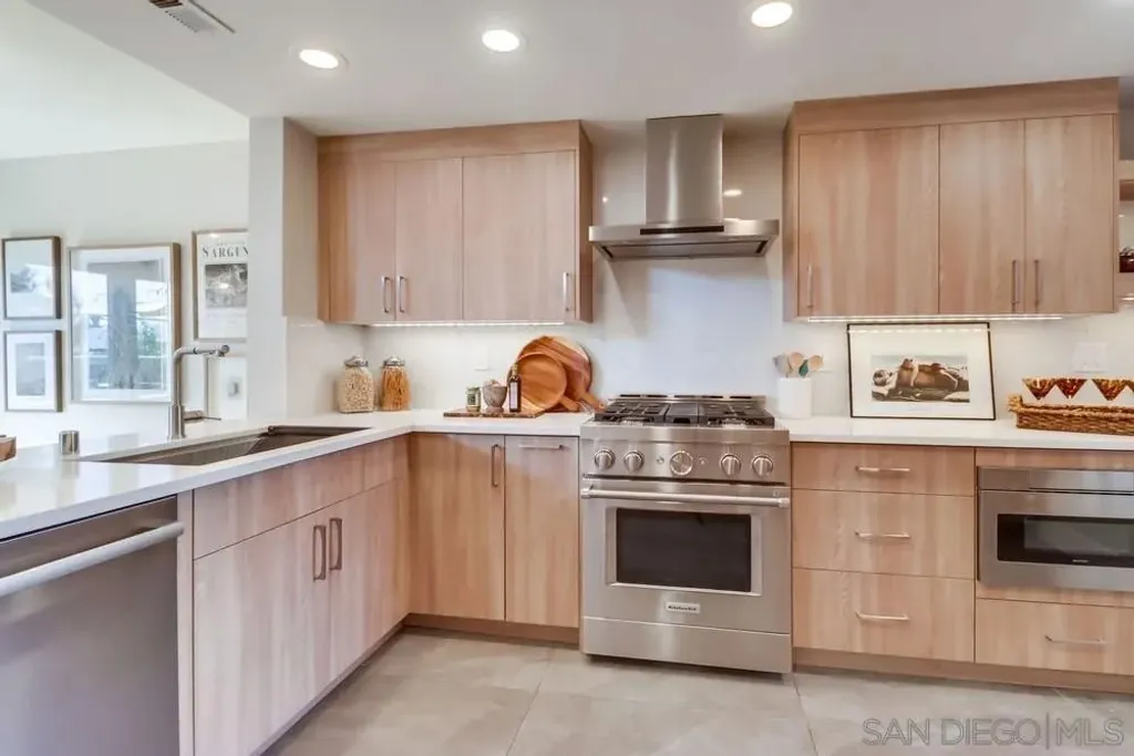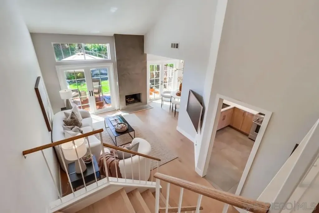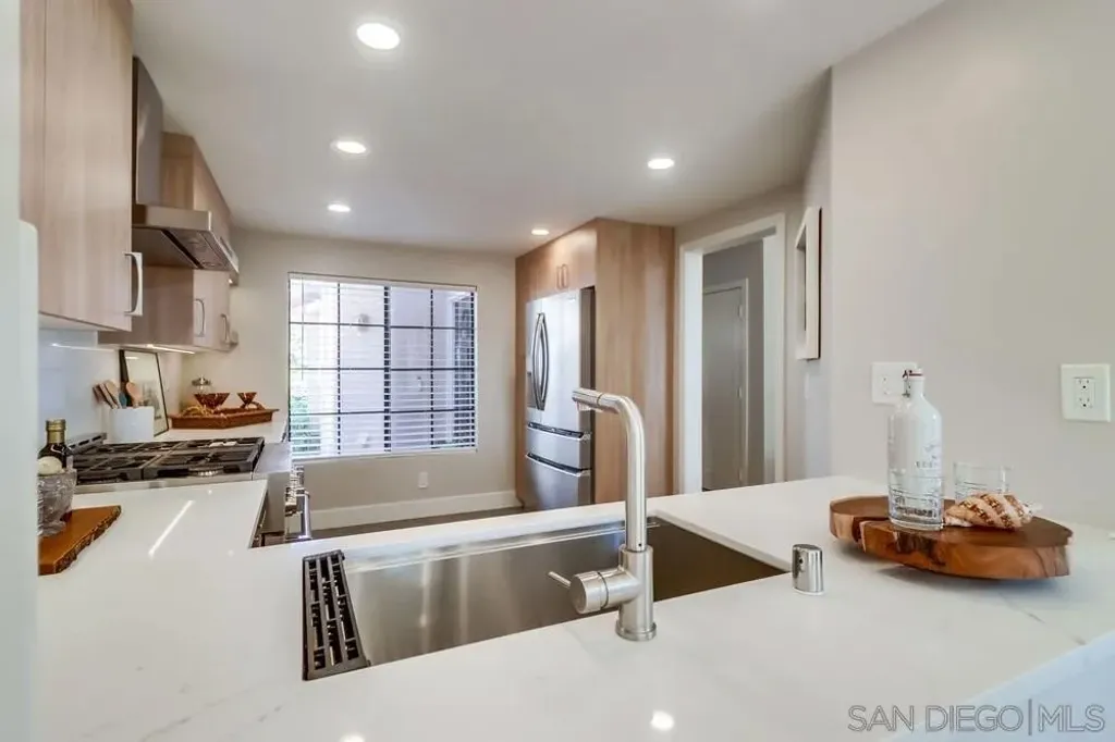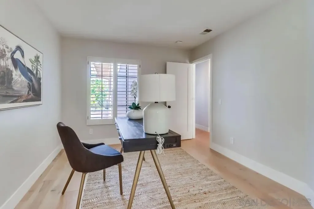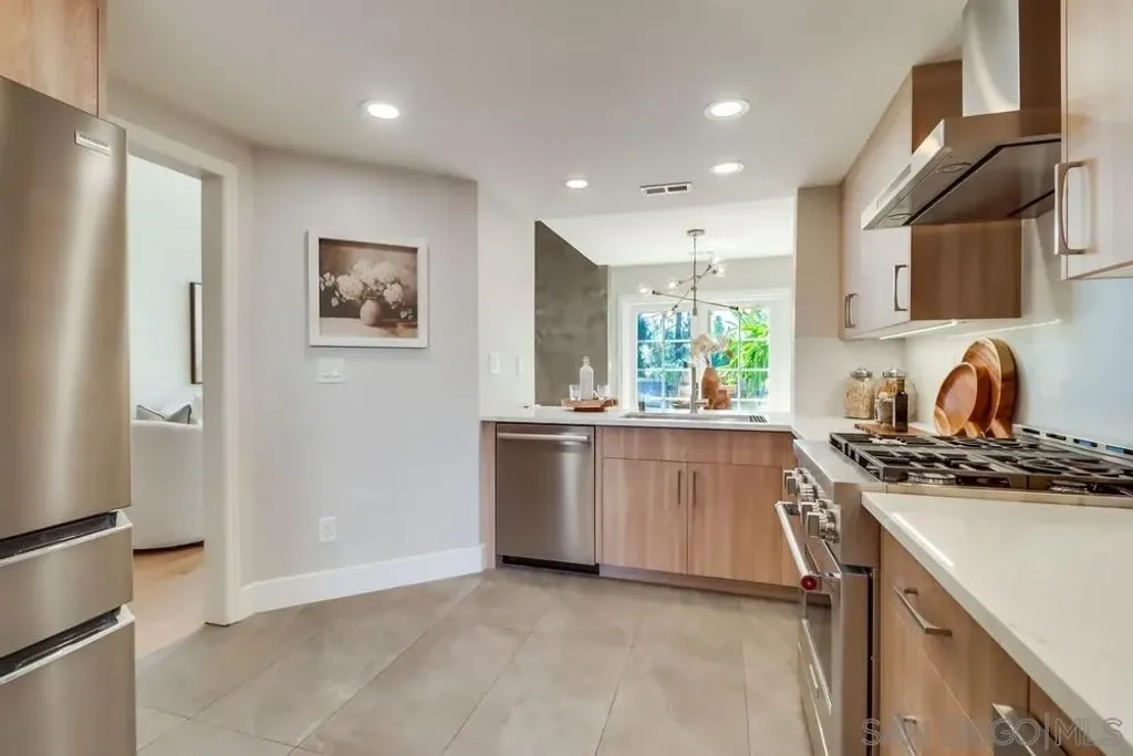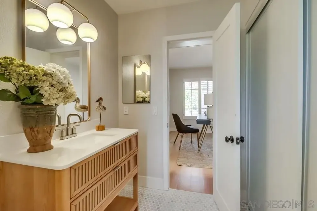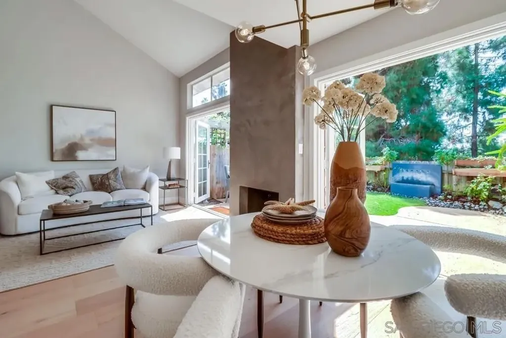 Accepting Backup offers - Stunning, sophisticated and located in the best location in the complex with views of Torrey Pines. Private and peaceful garden with beautiful fountain and a small grassy area on sprinkler system. This amazing home has been thoughtfully upgraded including a brand-new luxury kitchen with top-of-the-line appliances as well as designer bathrooms, new water resistant 8" white oak engineered hardwood floor, new plumbing, and high-end finishes throughout including a Tesla EV charger and new 125 AMP electric.Daily ocean breezes and walking distance to One Paseo and 5 minutes to the beach. Custom wood ceiling in the second floor hallway adds warmth and is a dramatic statement, custom built in bookshelves in the second bedroom have smart lighting installed and adds flexibility to be used as a home office. See attached list of upgrades. Offering two spacious ensuite bedrooms, perfect for privacy, comfort, and flexibility - ideal for dual primary suites, guests, or a home office setup. , perfect for the discerning chef. Backing to tranquil open space, the expansive yard is a gardener's paradise, featuring mature berry plants, a curated rose garden, a fountain and unique dragon fruit trellises - ideal for outdoor relaxation or entertaining.