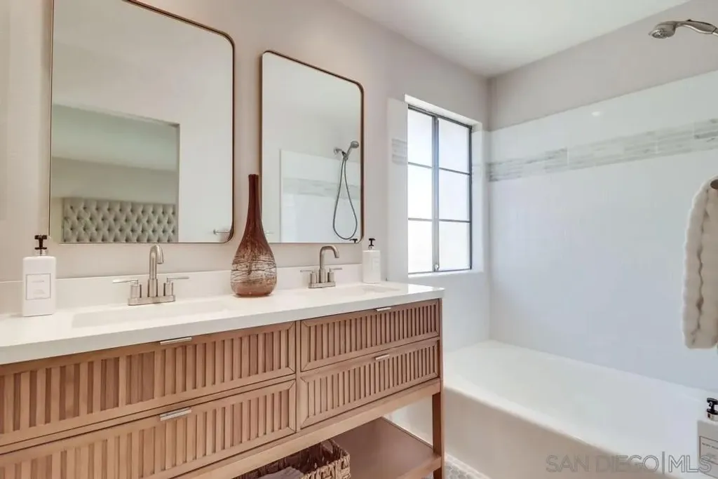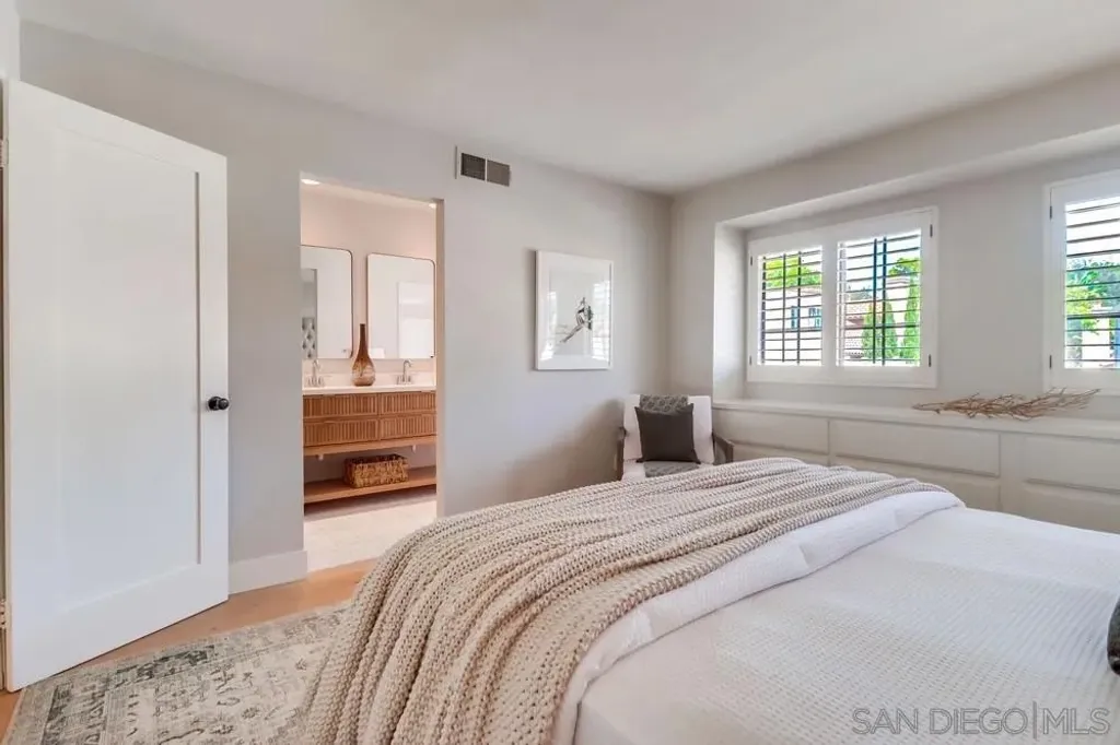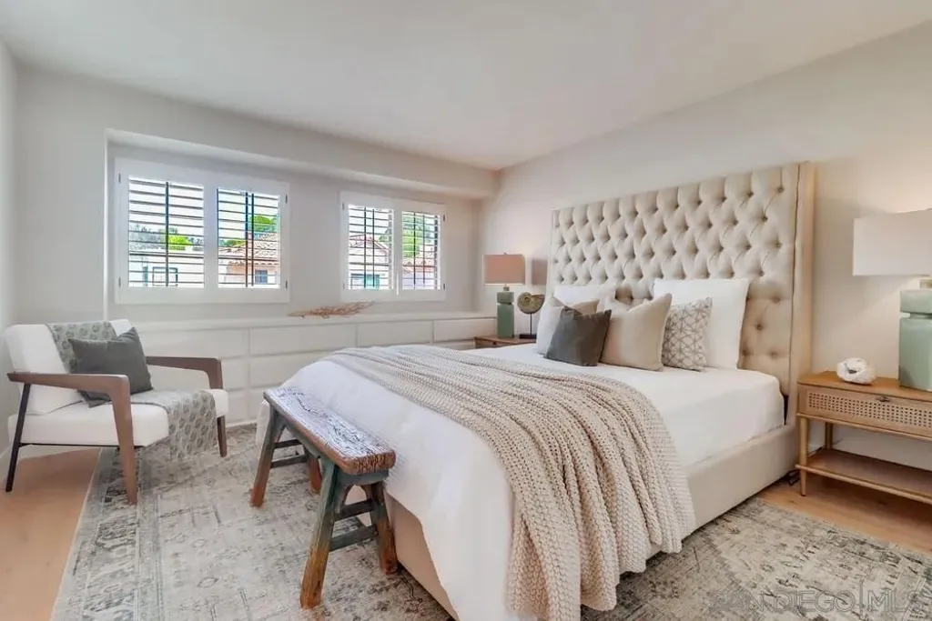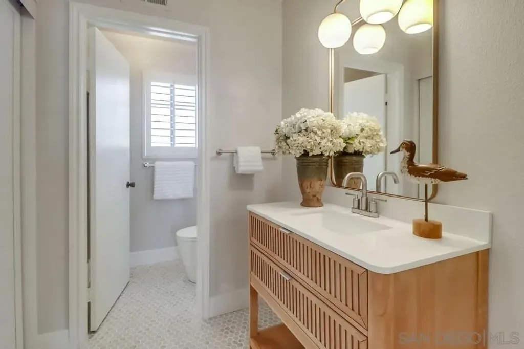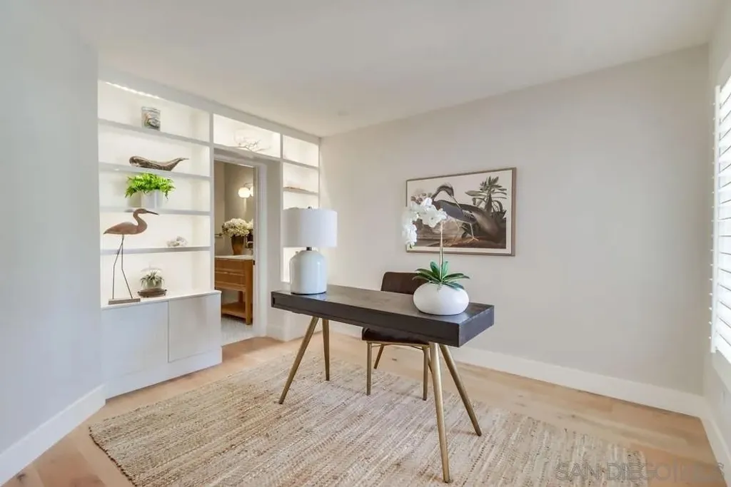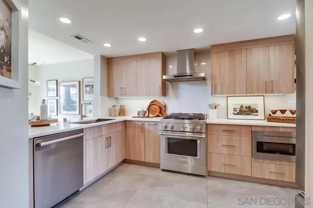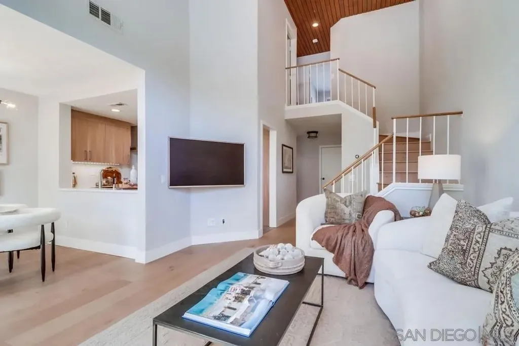 Accepting Backup offers - Stunning, sophisticated and located in the best location in the complex with views of Torrey Pines. Private and peaceful garden with beautiful fountain and a small grassy area on sprinkler system. This amazing home has been thoughtfully upgraded including a brand-new luxury kitchen with top-of-the-line appliances as well as designer bathrooms, new water resistant 8" white oak engineered hardwood floor, new plumbing, and high-end finishes throughout including a Tesla EV charger and new 125 AMP electric.Daily ocean breezes and walking distance to One Paseo and 5 minutes to the beach. Custom wood ceiling in the second floor hallway adds warmth and is a dramatic statement, custom built in bookshelves in the second bedroom have smart lighting installed and adds flexibility to be used as a home office. See attached list of upgrades. Offering two spacious ensuite bedrooms, perfect for privacy, comfort, and flexibility - ideal for dual primary suites, guests, or a home office setup. , perfect for the discerning chef. Backing to tranquil open space, the expansive yard is a gardener's paradise, featuring mature berry plants, a curated rose garden, a fountain and unique dragon fruit trellises - ideal for outdoor relaxation or entertaining.