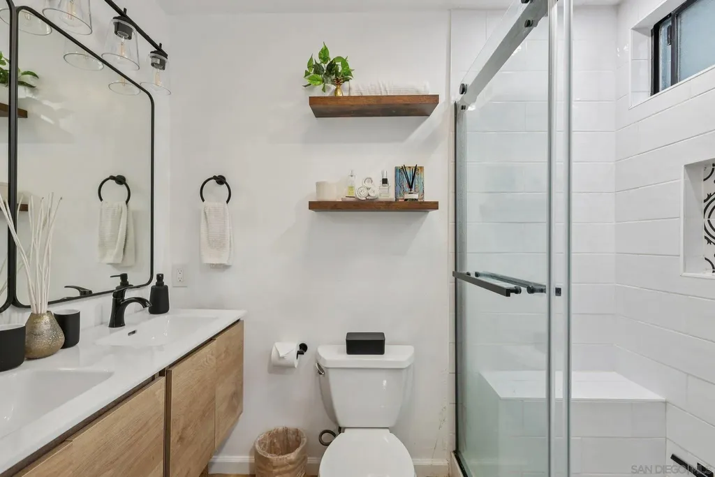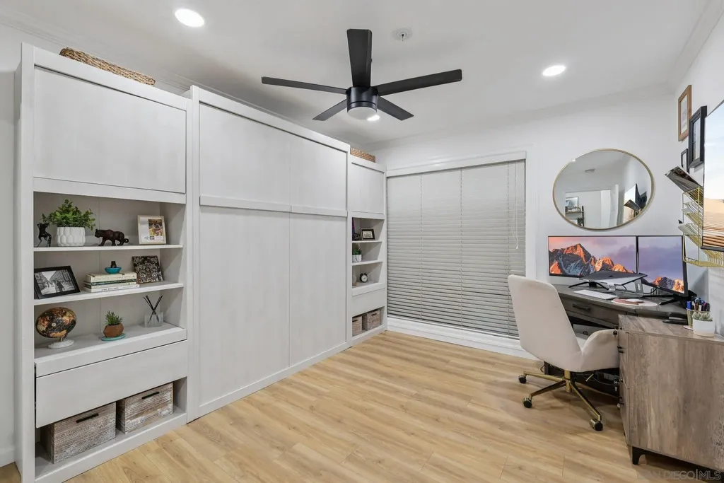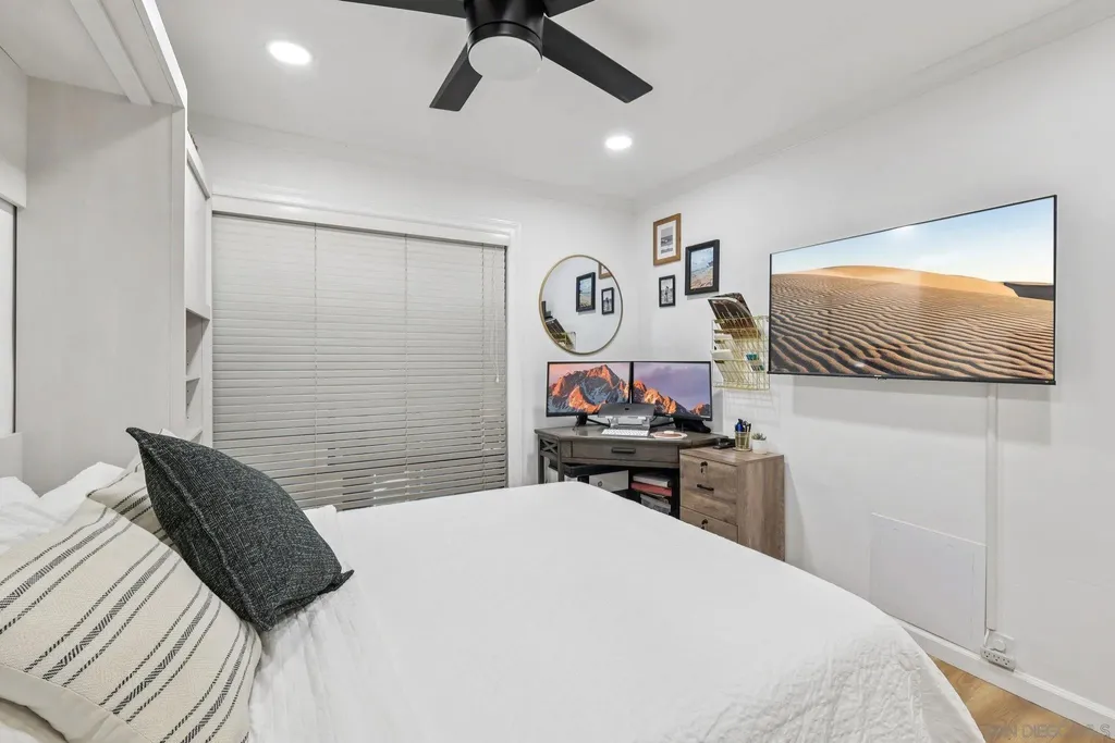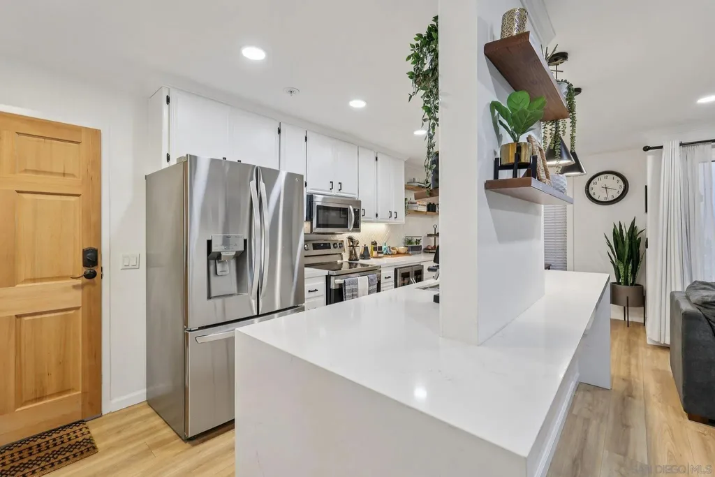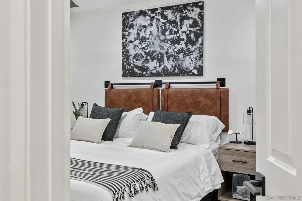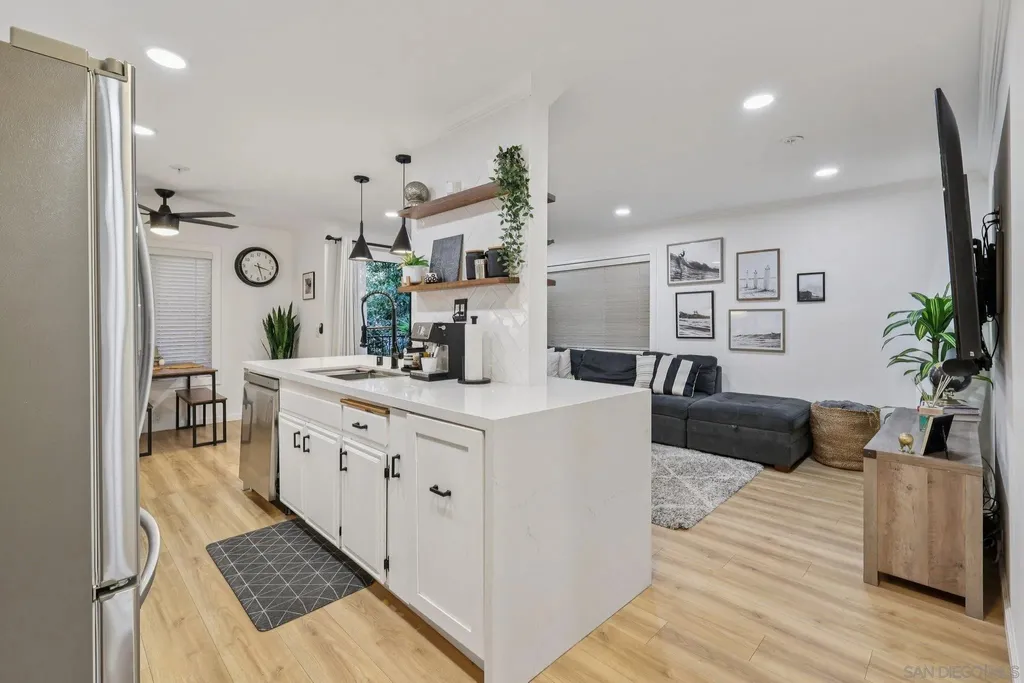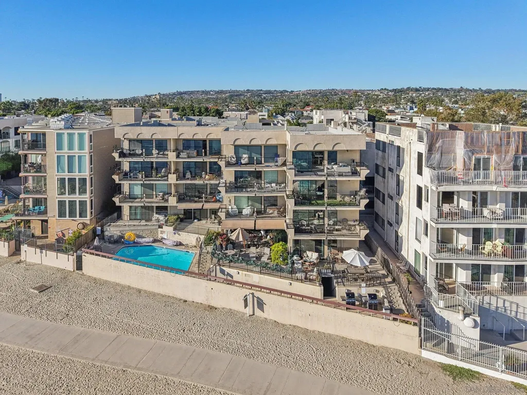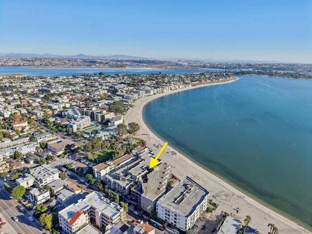 Live the quintessential coastal lifestyle in this beautifully updated Pacific Beach condo - just steps from the sun, sand, surf, and sparkling Sail Bay! Ideally situated in one of San Diego's most coveted beachside neighborhoods, this home offers exceptional access to Mission Bay, the ocean, boardwalks, bike paths, water sports, dining, caf s, and endless outdoor recreation right outside your door. Recently remodeled w/ modern finishes and a soothing neutral palette, this light-filled, move-in-ready retreat blends relaxed coastal living w/ contemporary style. The open floor plan features a bright living and dining area flowing seamlessly to a serene private balcony w/ peekaboo water views - perfect for enjoying bay breezes. The stunning kitchen is upgraded with quartz countertops, high-end stainless-steel appliances, built-in wine cooler, large center island w/ breakfast seating, and abundant workspace for cooking and entertaining. A spacious hallway leads to the primary suite, complete w/ ample closet space and a stylish barn door entry to the spa-inspired bath with dual sinks and walk-in shower. The versatile guest bedroom, outfitted w/ a Murphy bed, makes an ideal guest space/home office and is served by an additional updated full bath. Enjoy community amenities including two assigned underground parking spots, a private garage storage cabinet, elevator access, convenient laundry rooms located on each floor, a bayside swimming pool and BBQ's. This beautiful unit is perfectly suited for full-time living, a relaxing vacation home, or a reliable long-term investment opportunity