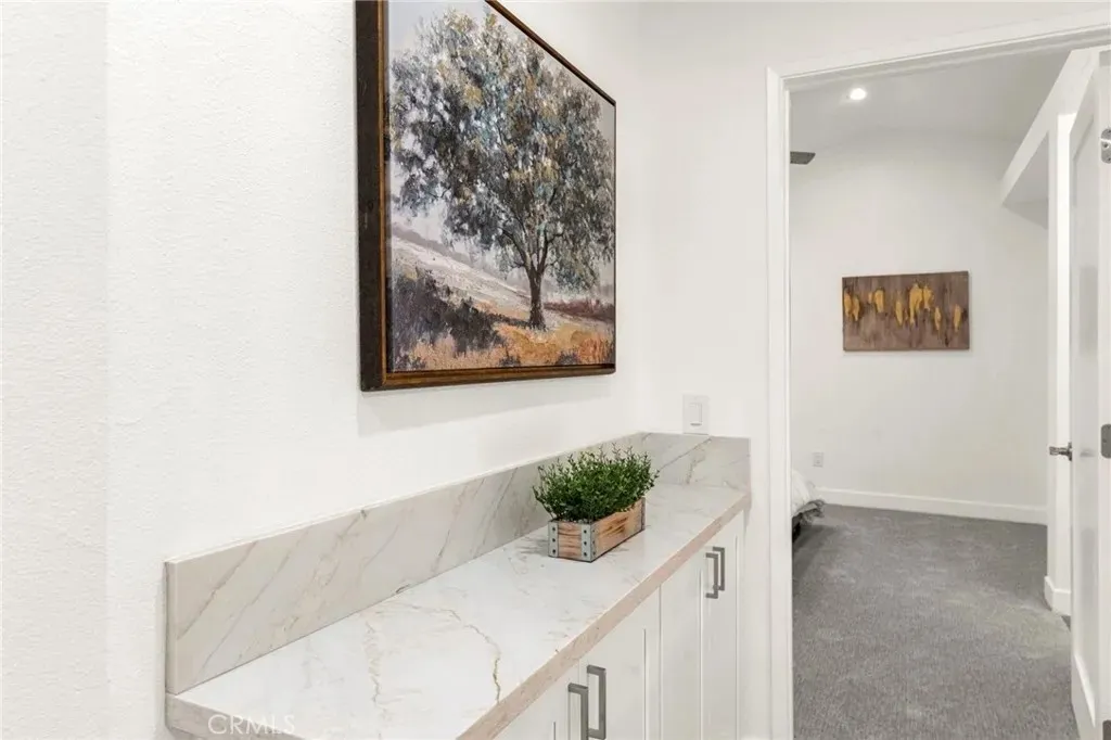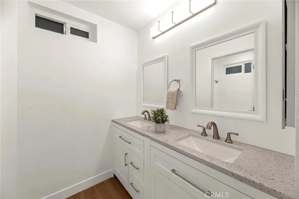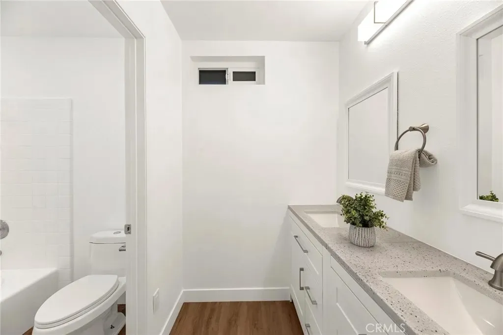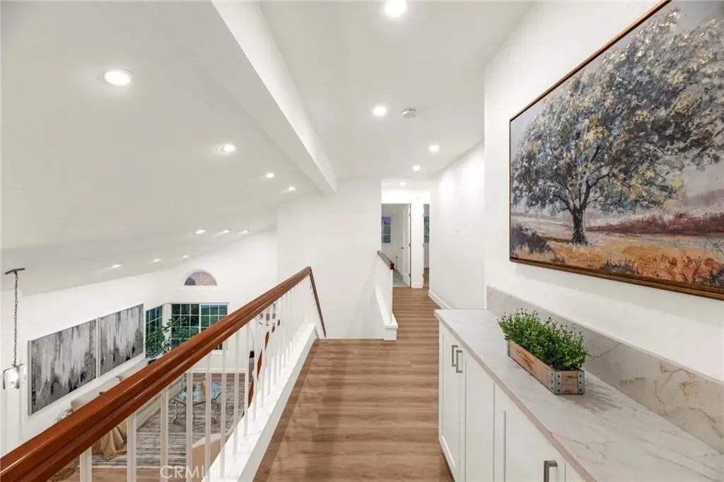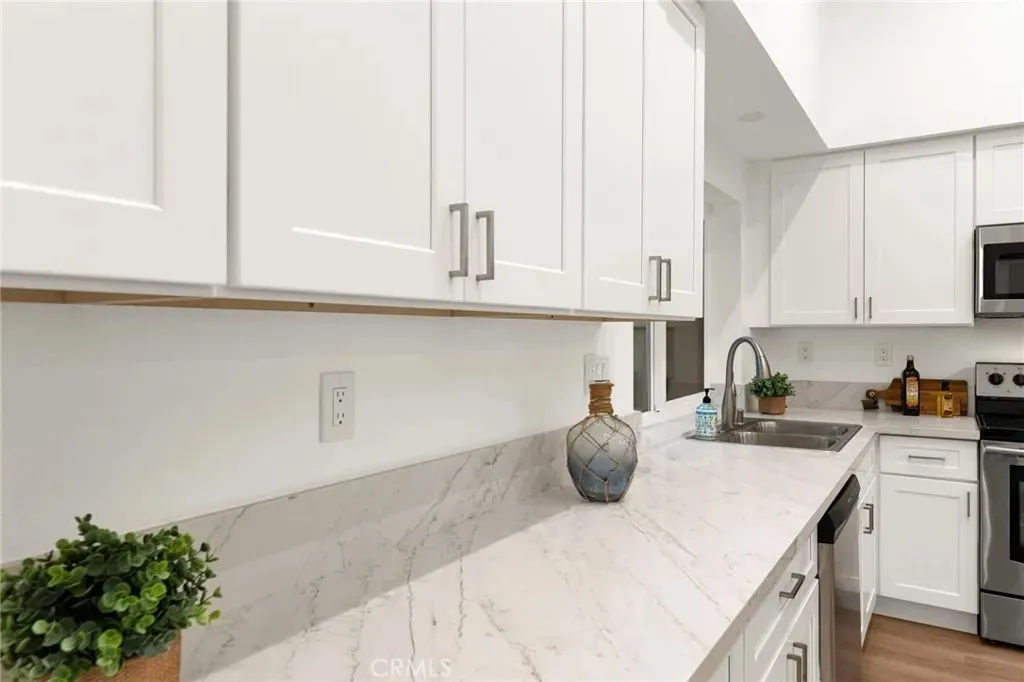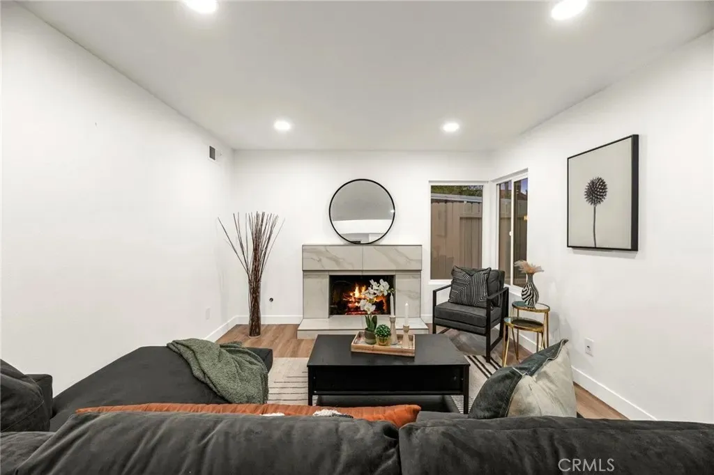 Stunning Fully Remodeled 4-Bedroom, 3-Bath Home in Coveted Park Village! Step into style and comfort in this beautifully updated home located in the highly sought-after Park Village neighborhood. From the moment you enter, youll be greeted by soaring vaulted ceilings and an abundance of natural light that accentuates the open, airy floor plan. The formal living room flows seamlessly into the separate dining area, all enhanced by the newly upgraded luxury vinyl plank flooring throughout. The fully remodeled kitchen is a showstopperfeaturing crisp white cabinetry, matching quartz countertops, brand-new stainless steel appliances, and vaulted ceilings that add to the sense of space. It overlooks the spacious family room, where a stone-faced fireplace creates a cozy focal point and a large sliding glass door opens to the private backyard. Ideal for multigenerational living or guests, the main floor includes a full bedroom and a full bath. Upstairs, you'll find two additional guest bedrooms with ceiling fans and ample closet space, along with the generous primary suite. The primary retreat boasts a deep walk-in closet, dual vanity sinks, a large soaking tub, and a separate shower. The backyard offers privacy and relaxation, complete with an Aluma-wood patio cover, grassy area, retaining wall, and freshly painted fencingperfect for entertaining or unwinding. Additional upgrades include: all-new dual-pane windows, newer roof, recessed lighting throughout, fresh interior paint, upgraded baseboards and hardware, modern appliances and so much more! Located in a quiet, family-friendly community with excellent schools, low HOA, no Mello-Roos, and a prime locationthis home is the total package. Dont miss your chance to own this picture-perfect gem!