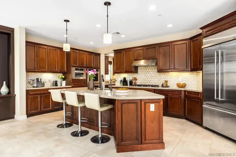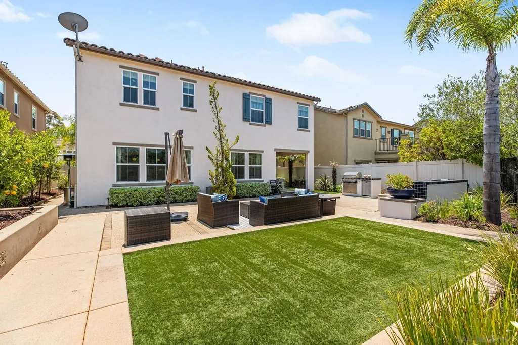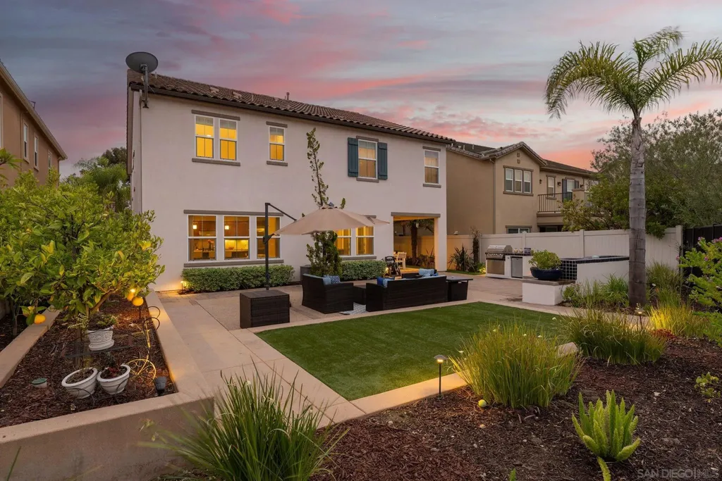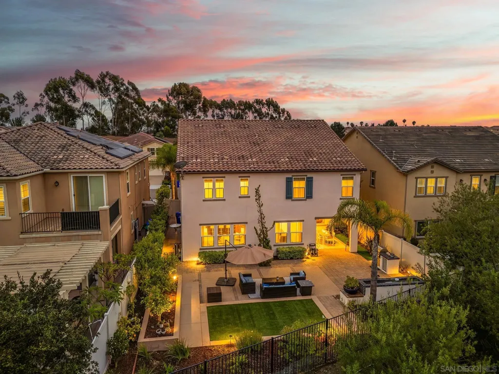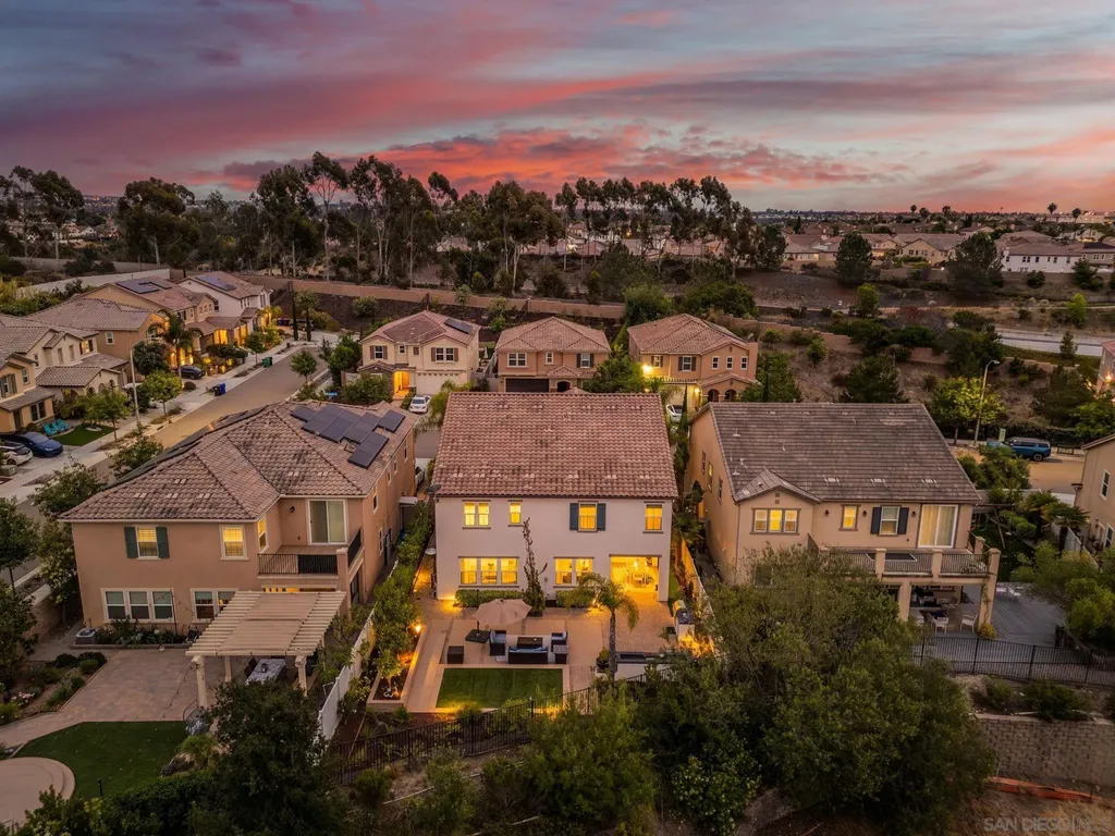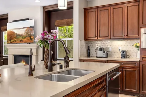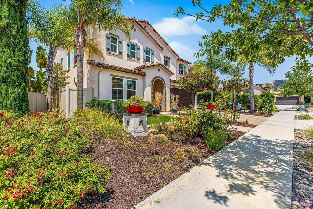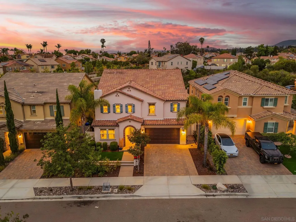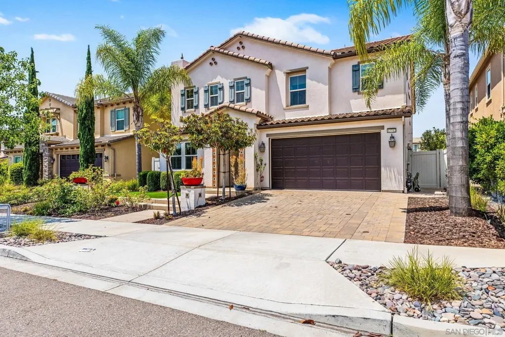 Priced to Sell! Welcome to 12712 Cloudbreak Ave - a former model home that blends thoughtful design with canyon views, smart upgrades, and space to grow. Nestled in the desirable Sea Cliff community and served by the award-winning Poway Unified School District, this 5-bedroom + loft, 4.5-bath residence offers 3,600 sq ft of beautifully maintained living space on a 6,144 sq ft lot. Inside, the open, sun-splashed layout showcases hardwood floors, designer finishes, and custom built-in cabinetry in the living room, loft, and bedrooms - including both primary closets. Every bedroom features a walk-in closet, and the home shows remarkably little wear. The chef's kitchen is the heart of the home, boasting quartz countertops, a large center island, high-end Moen plumbing fixtures, top-tier appliances, and a walk-in pantry. A first-floor bedroom with en-suite bath adds flexibility for guests, multigenerational living, or a private office. Upstairs you'll find four additional bedrooms, a versatile loft, and a spacious primary suite with luxe finishes and abundant built-in storage. Fresh paint, pristine carpeted bedrooms, and a whole-house water softener with reverse-osmosis drinking water elevate everyday comfort. Slide open the 5-panel accordion doors to a canyon-facing backyard oasis - no rear neighbors, just serenity. Enjoy a tranquil fountain, low-maintenance artificial turf, a covered California Room with surround-sound speakers, modern lighting, and fruit trees that add a sweet touch of nature. It's perfect for al-fresco dinners, weekend hangouts, or stargazing nights. Practical perks include a tankless water heater, Tesla charger, and whole-house speaker system - and best of all, no Mello-Roos tax. Built in 2016 with timeless upgrades and practical luxury, this move-in-ready home is minutes from top schools, parks, and freeway access. Discover the perfect blend of style, comfort, and canyon tranquility at 12712 Cloudbreak Ave.