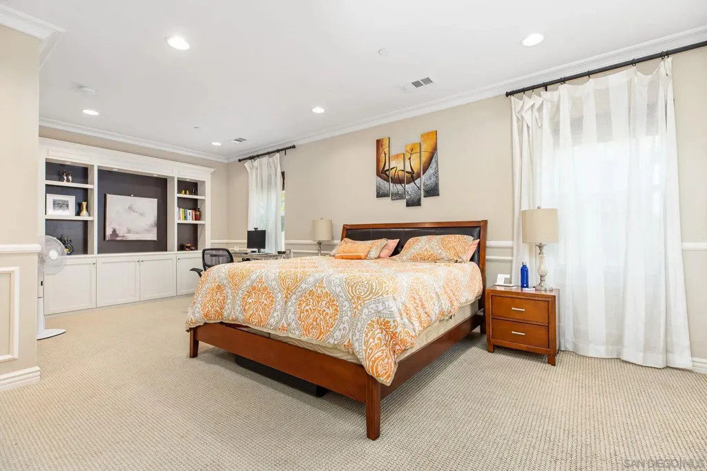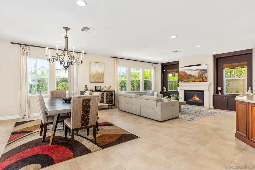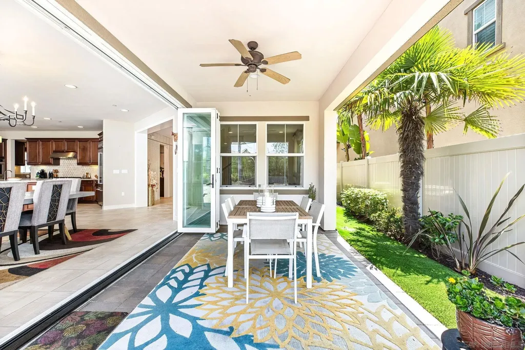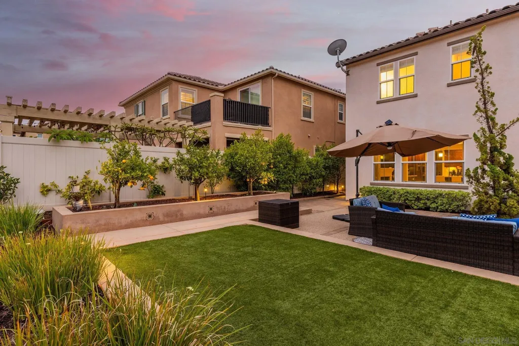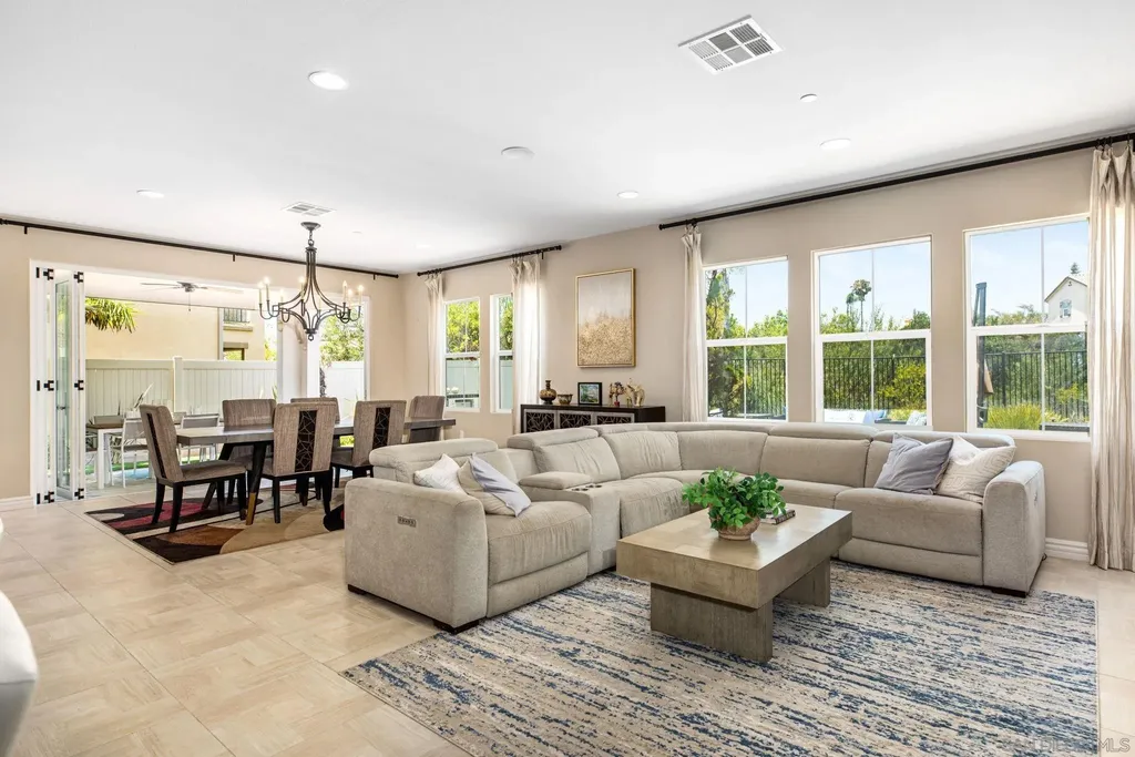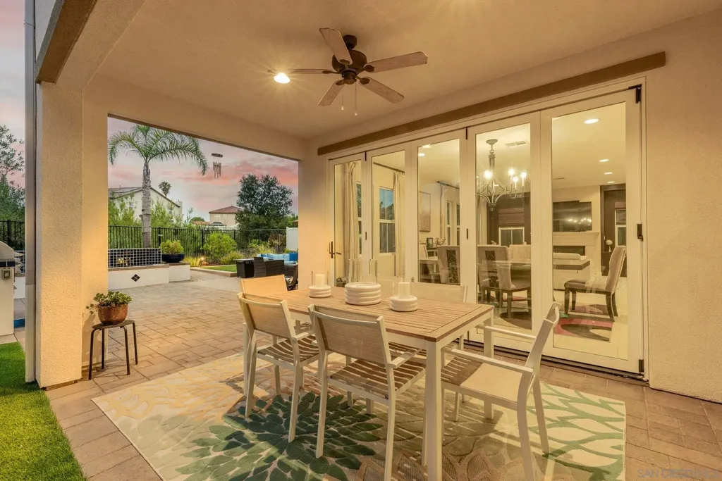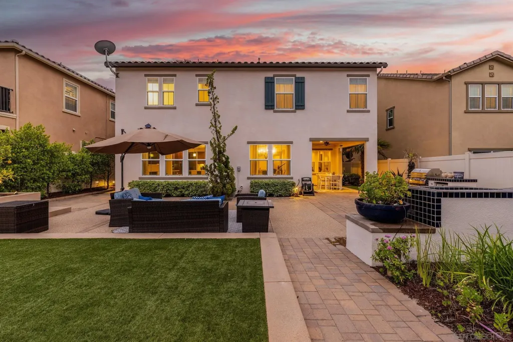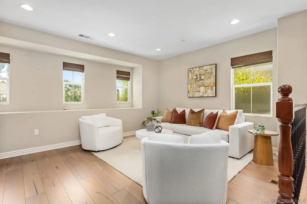Priced to Sell! Welcome to 12712 Cloudbreak Ave - a former model home that blends thoughtful design with canyon views, smart upgrades, and space to grow. Nestled in the desirable Sea Cliff community and served by the award-winning Poway Unified School District, this 5-bedroom + loft, 4.5-bath residence offers 3,600 sq ft of beautifully maintained living space on a 6,144 sq ft lot. Inside, the open, sun-splashed layout showcases hardwood floors, designer finishes, and custom built-in cabinetry in the living room, loft, and bedrooms - including both primary closets. Every bedroom features a walk-in closet, and the home shows remarkably little wear. The chef's kitchen is the heart of the home, boasting quartz countertops, a large center island, high-end Moen plumbing fixtures, top-tier appliances, and a walk-in pantry. A first-floor bedroom with en-suite bath adds flexibility for guests, multigenerational living, or a private office. Upstairs you'll find four additional bedrooms, a versatile loft, and a spacious primary suite with luxe finishes and abundant built-in storage. Fresh paint, pristine carpeted bedrooms, and a whole-house water softener with reverse-osmosis drinking water elevate everyday comfort. Slide open the 5-panel accordion doors to a canyon-facing backyard oasis - no rear neighbors, just serenity. Enjoy a tranquil fountain, low-maintenance artificial turf, a covered California Room with surround-sound speakers, modern lighting, and fruit trees that add a sweet touch of nature. It's perfect for al-fresco dinners, weekend hangouts, or stargazing nights. Practical perks include a tankless water heater, Tesla charger, and whole-house speaker system - and best of all, no Mello-Roos tax. Built in 2016 with timeless upgrades and practical luxury, this move-in-ready home is minutes from top schools, parks, and freeway access. Discover the perfect blend of style, comfort, and canyon tranquility at 12712 Cloudbreak Ave.