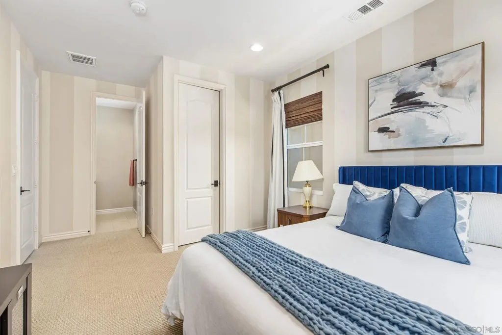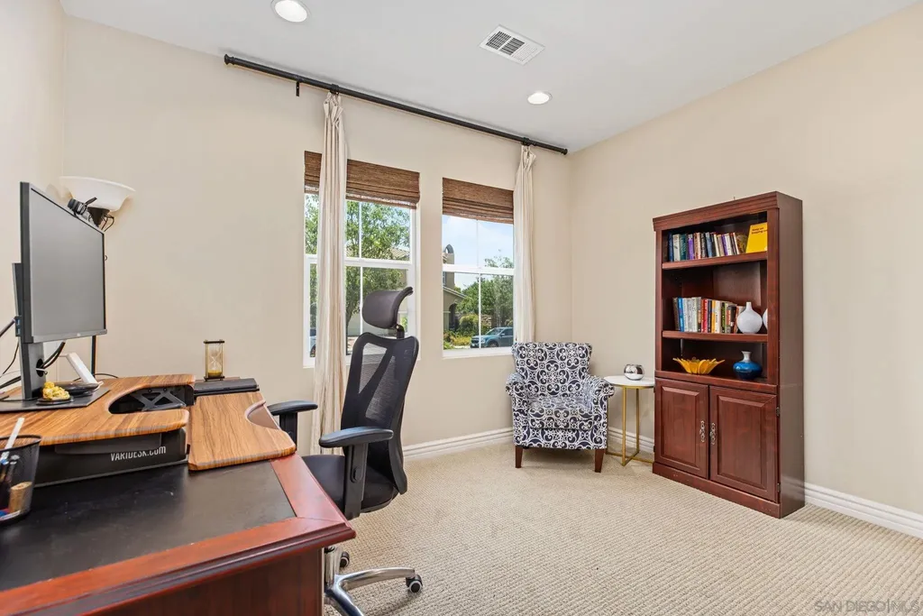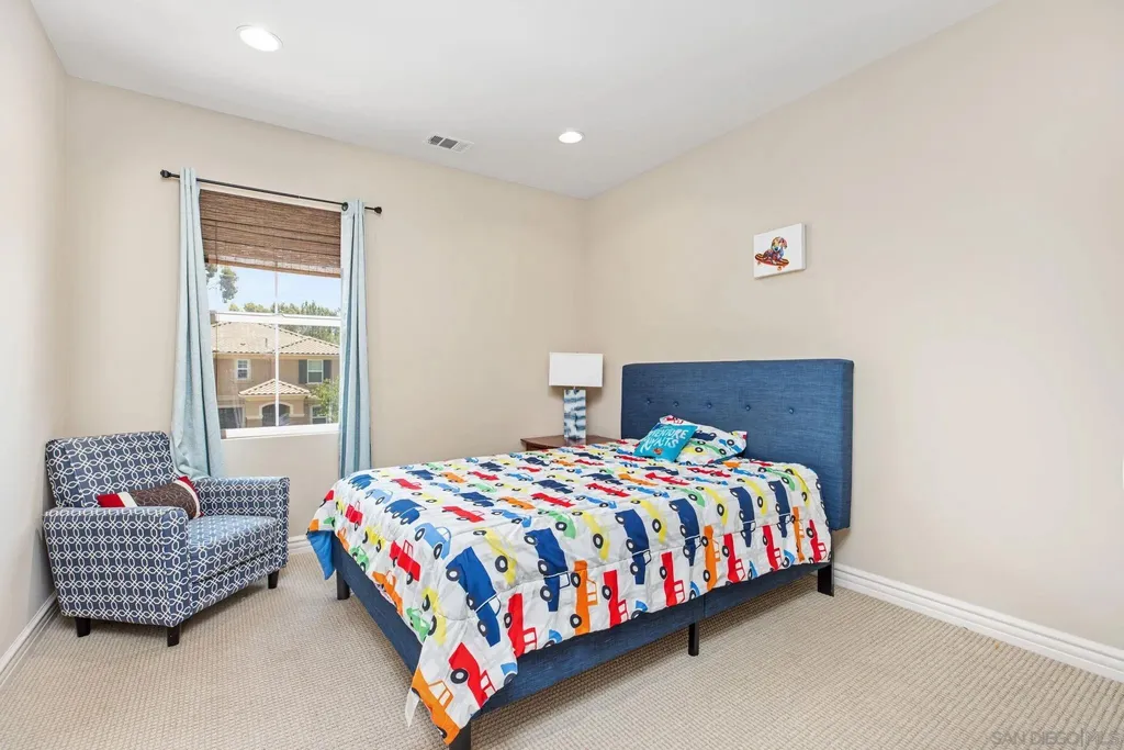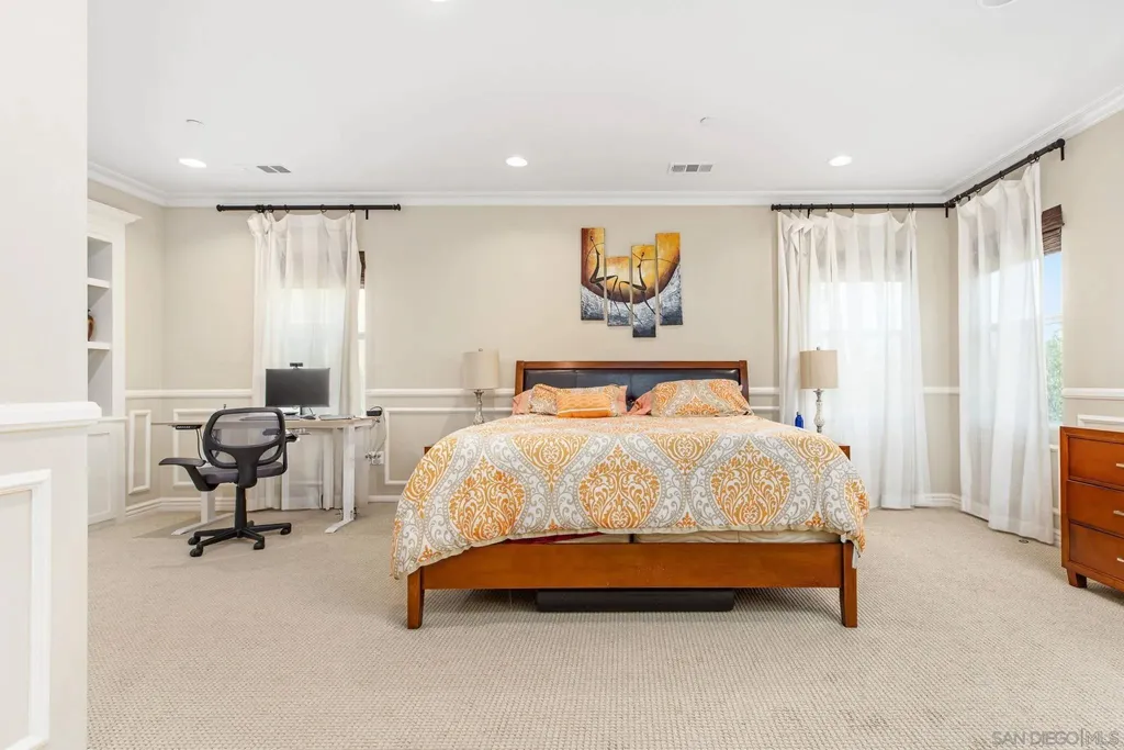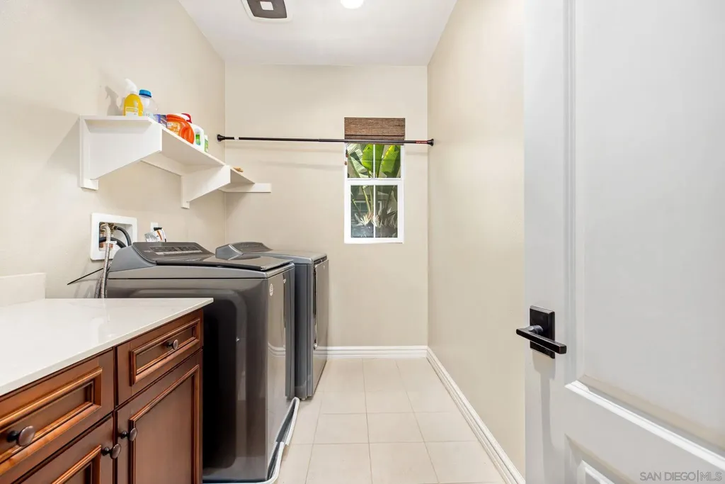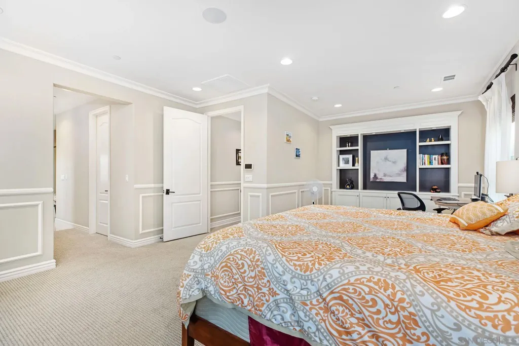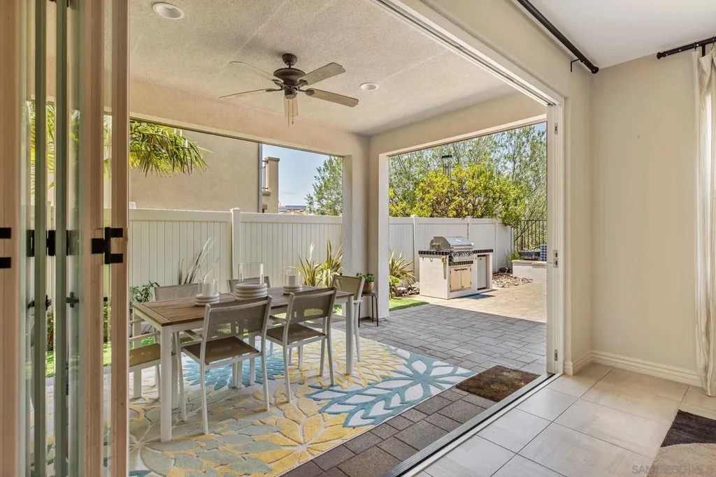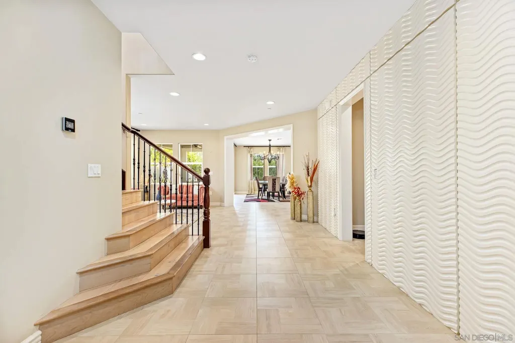 Priced to Sell! Welcome to 12712 Cloudbreak Ave - a former model home that blends thoughtful design with canyon views, smart upgrades, and space to grow. Nestled in the desirable Sea Cliff community and served by the award-winning Poway Unified School District, this 5-bedroom + loft, 4.5-bath residence offers 3,600 sq ft of beautifully maintained living space on a 6,144 sq ft lot. Inside, the open, sun-splashed layout showcases hardwood floors, designer finishes, and custom built-in cabinetry in the living room, loft, and bedrooms - including both primary closets. Every bedroom features a walk-in closet, and the home shows remarkably little wear. The chef's kitchen is the heart of the home, boasting quartz countertops, a large center island, high-end Moen plumbing fixtures, top-tier appliances, and a walk-in pantry. A first-floor bedroom with en-suite bath adds flexibility for guests, multigenerational living, or a private office. Upstairs you'll find four additional bedrooms, a versatile loft, and a spacious primary suite with luxe finishes and abundant built-in storage. Fresh paint, pristine carpeted bedrooms, and a whole-house water softener with reverse-osmosis drinking water elevate everyday comfort. Slide open the 5-panel accordion doors to a canyon-facing backyard oasis - no rear neighbors, just serenity. Enjoy a tranquil fountain, low-maintenance artificial turf, a covered California Room with surround-sound speakers, modern lighting, and fruit trees that add a sweet touch of nature. It's perfect for al-fresco dinners, weekend hangouts, or stargazing nights. Practical perks include a tankless water heater, Tesla charger, and whole-house speaker system - and best of all, no Mello-Roos tax. Built in 2016 with timeless upgrades and practical luxury, this move-in-ready home is minutes from top schools, parks, and freeway access. Discover the perfect blend of style, comfort, and canyon tranquility at 12712 Cloudbreak Ave.