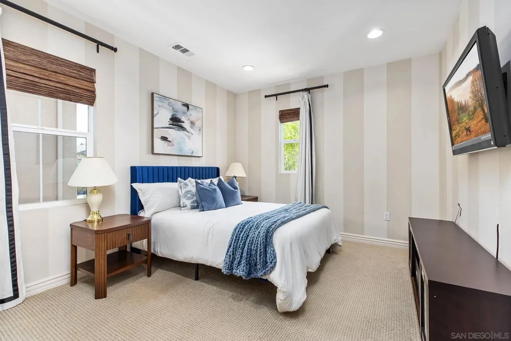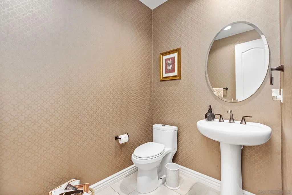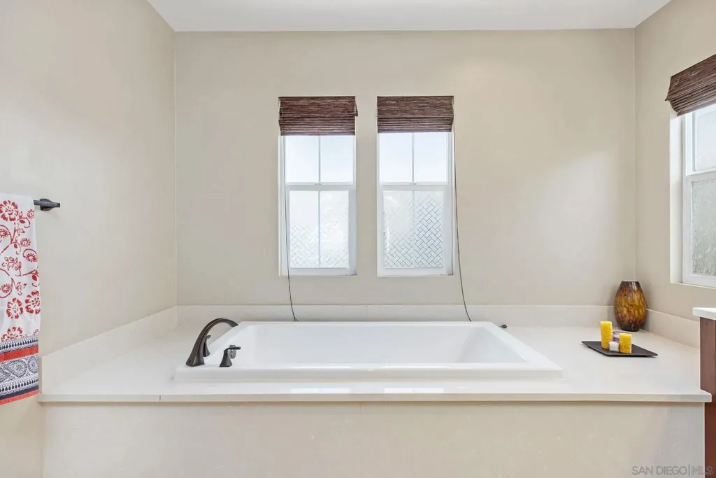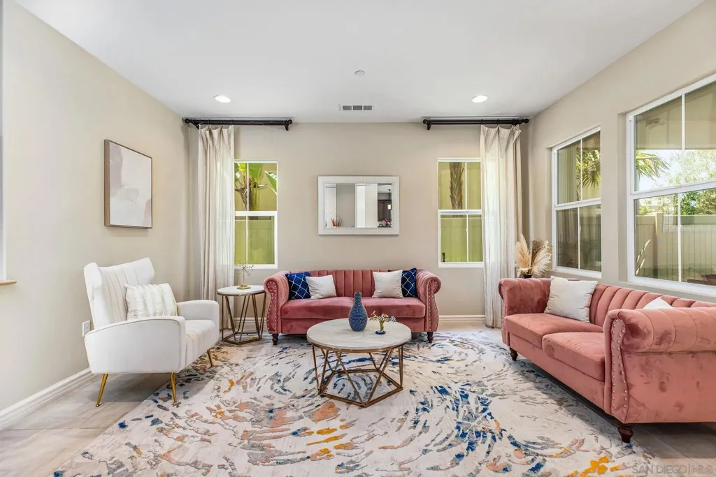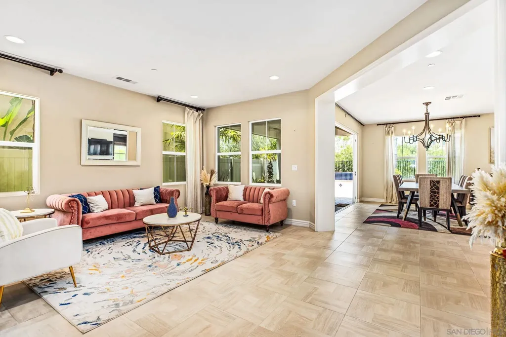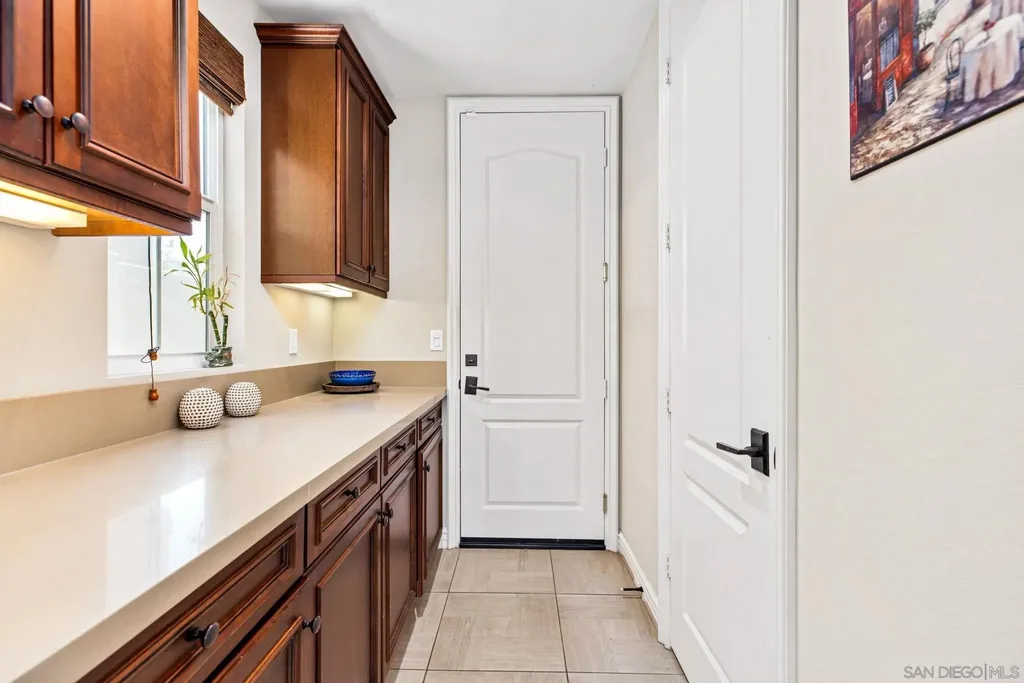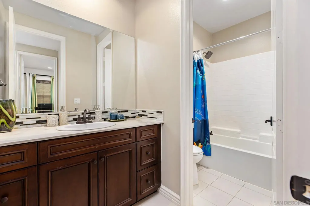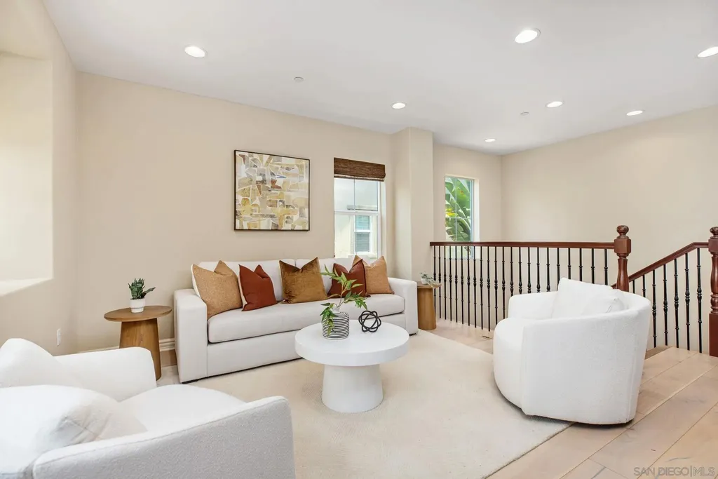 Priced to Sell! Welcome to 12712 Cloudbreak Ave - a former model home that blends thoughtful design with canyon views, smart upgrades, and space to grow. Nestled in the desirable Sea Cliff community and served by the award-winning Poway Unified School District, this 5-bedroom + loft, 4.5-bath residence offers 3,600 sq ft of beautifully maintained living space on a 6,144 sq ft lot. Inside, the open, sun-splashed layout showcases hardwood floors, designer finishes, and custom built-in cabinetry in the living room, loft, and bedrooms - including both primary closets. Every bedroom features a walk-in closet, and the home shows remarkably little wear. The chef's kitchen is the heart of the home, boasting quartz countertops, a large center island, high-end Moen plumbing fixtures, top-tier appliances, and a walk-in pantry. A first-floor bedroom with en-suite bath adds flexibility for guests, multigenerational living, or a private office. Upstairs you'll find four additional bedrooms, a versatile loft, and a spacious primary suite with luxe finishes and abundant built-in storage. Fresh paint, pristine carpeted bedrooms, and a whole-house water softener with reverse-osmosis drinking water elevate everyday comfort. Slide open the 5-panel accordion doors to a canyon-facing backyard oasis - no rear neighbors, just serenity. Enjoy a tranquil fountain, low-maintenance artificial turf, a covered California Room with surround-sound speakers, modern lighting, and fruit trees that add a sweet touch of nature. It's perfect for al-fresco dinners, weekend hangouts, or stargazing nights. Practical perks include a tankless water heater, Tesla charger, and whole-house speaker system - and best of all, no Mello-Roos tax. Built in 2016 with timeless upgrades and practical luxury, this move-in-ready home is minutes from top schools, parks, and freeway access. Discover the perfect blend of style, comfort, and canyon tranquility at 12712 Cloudbreak Ave.