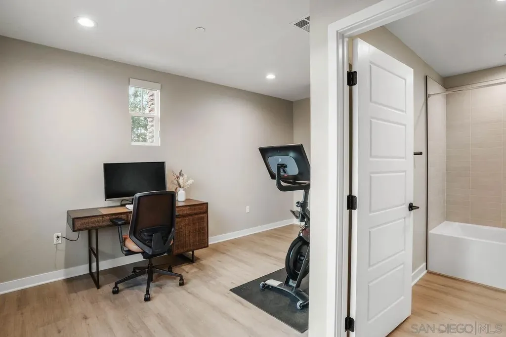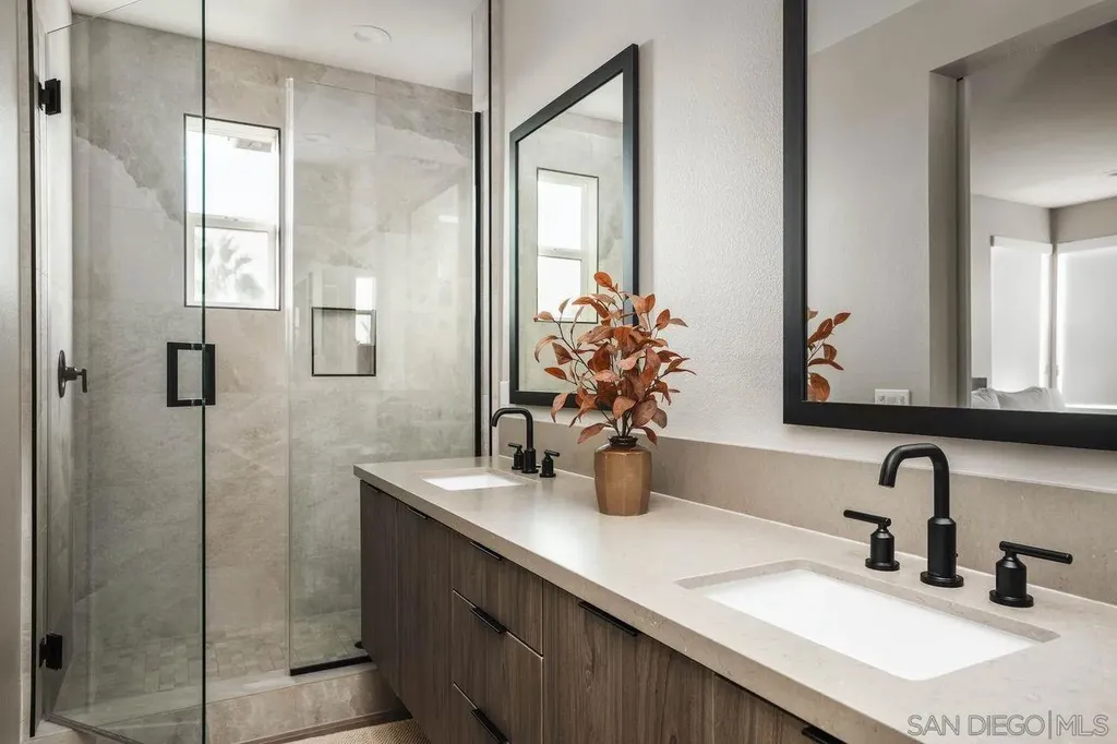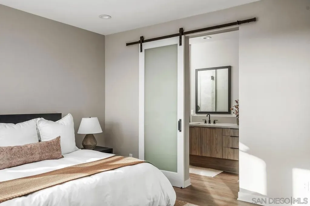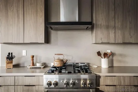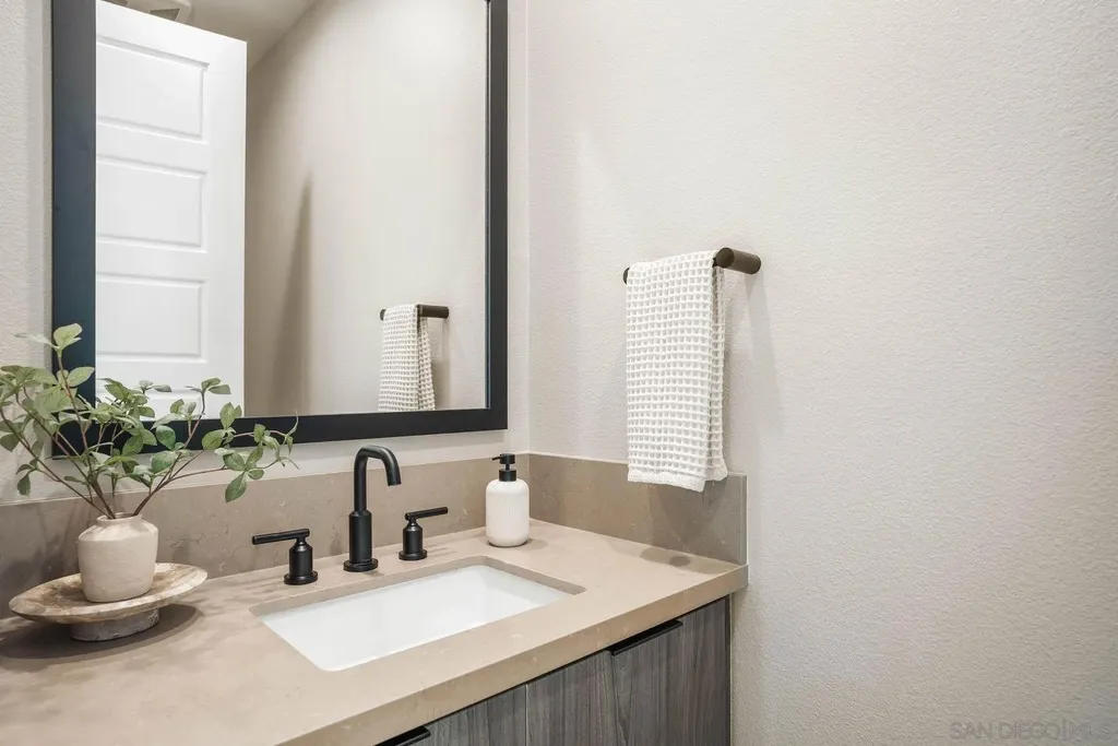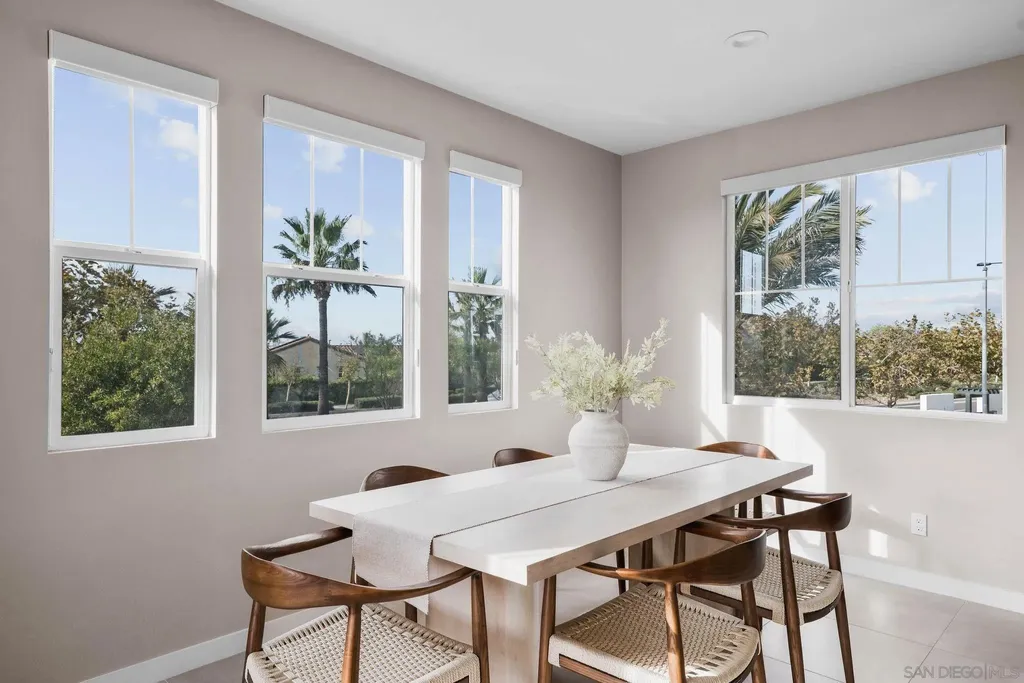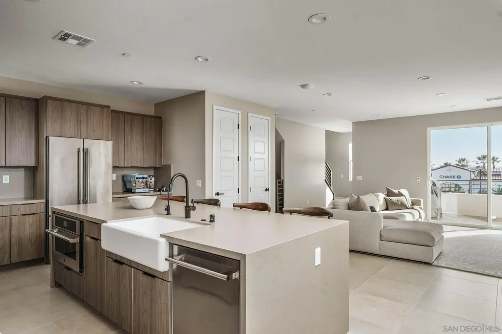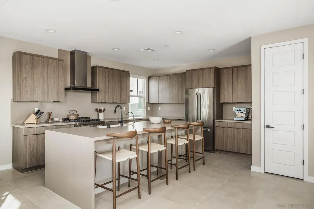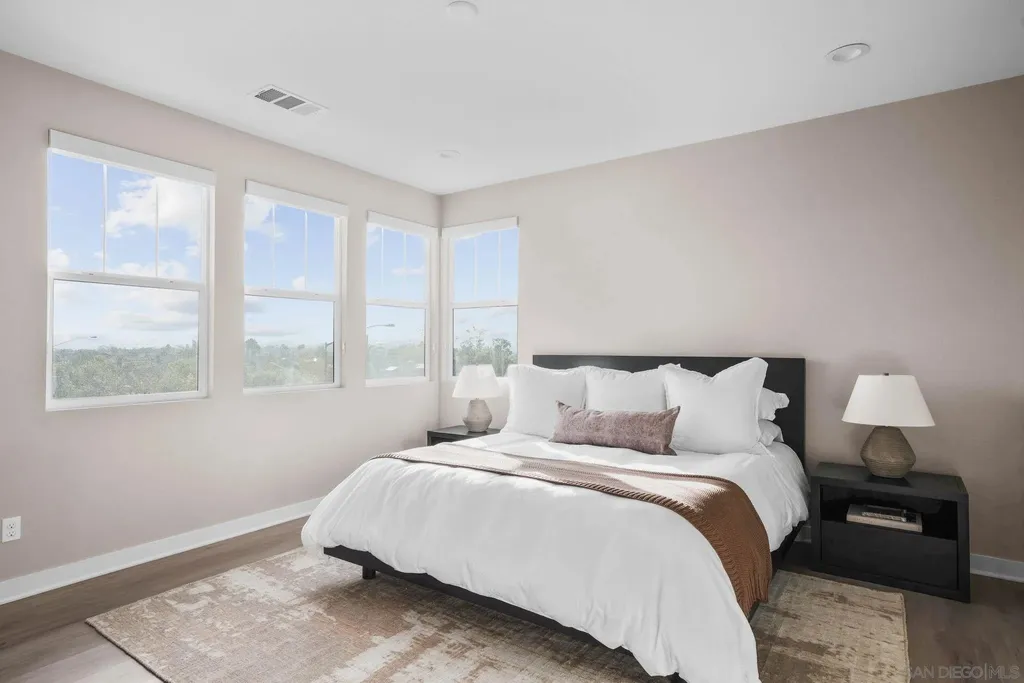Welcome to 13016 Lumen Way, a Mediterranean-inspired retreat where warm earth tones, natural textures, and minimalist design create effortless style and inviting comfort. Located in the Lumen community of Pacific Highlands Ranch, this 4-bedroom, 3.5-bath, 2,118 sq.ft end-unit townhome sits in the most desirable location in the neighborhood - next to a semi-private parklet, with expansive views of Carmel Valley and peekaboo ocean views from the primary and second bedrooms. This light-filled home features over $100,000 in upgrades, including fully owned solar, high-end quartz countertops throughout, a striking waterfall island, and a full backsplash in the kitchen. Additional highlights include upgraded flooring throughout, luxury tile on all shower walls, soft-close custom cabinetry, enhanced recessed lighting in every room, custom window shades, and a finished garage with epoxy floors and ceiling-mounted storage racks. Fresh, modern interior paint adds the final touch. Top-of-the-line appliances including a premium washer and dryer, as well as a reverse osmosis system are included, making this home move-in ready. Lumen residents enjoy resort-style amenities with a pool, jacuzzi, and walkability to top-rated schools, shopping, dining, and trails. A rare chance to own a thoughtfully designed home that fuses Mediterranean inspiration with North County living.