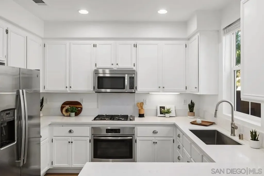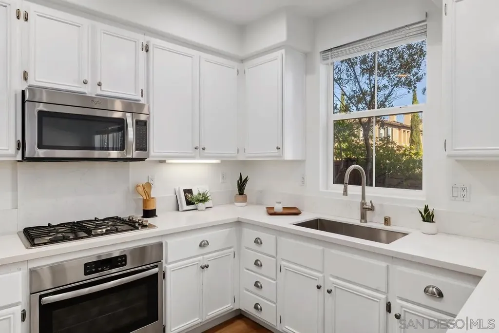 Experience a stylish, remodeled townhome with dual primary suites in the Monaco community of Torrey Highlands. Inside, luxury vinyl plank flooring flows throughout, complemented by ceiling fans in every room. The updated kitchen features quartz countertops and stainless steel appliances, while refreshed bathrooms modern fixtures. With no neighbors behind, enjoy a private yard with pavers and turf - perfect for relaxing or entertaining. Close to freeways, top schools, shops, and dining, this home blends comfort and convenience.
