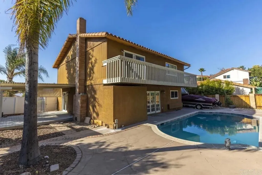 Welcome to your Bonita retreat! This spacious 4 bedroom, 2.5 bath home offers 2,176 SQ. FT. of comfortable living on a QUIET, NO-THROUGH street. Step inside to find FRESH INTERIOR PAINT, NEW CARPET, and UPDATED KITCHEN & BATHS. The family room features a STONE FIREPLACE and FRENCH DOORS that open to a backyard designed for fun and relaxation with an IN-GROUND POOL. A versatile DOWNSTAIRS STUDY/DEN also has FRENCH DOORS leading to the side patio perfect for ENTERTAINING or a PRIVATE RETREAT. Upstairs, the primary bedroom includes a LARGE BALCONY overlooking the POOL perfect for morning coffee or evening relaxation. With a little TLC, this home will truly shine! Low maintenance landscaping, a 2-car garage, LARGE DRIVEWAY, and RV/BOAT PARKING. Plus, NO HOA and NO MELLO ROOS
