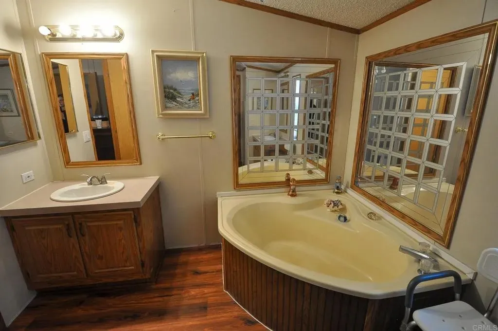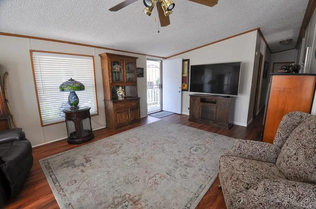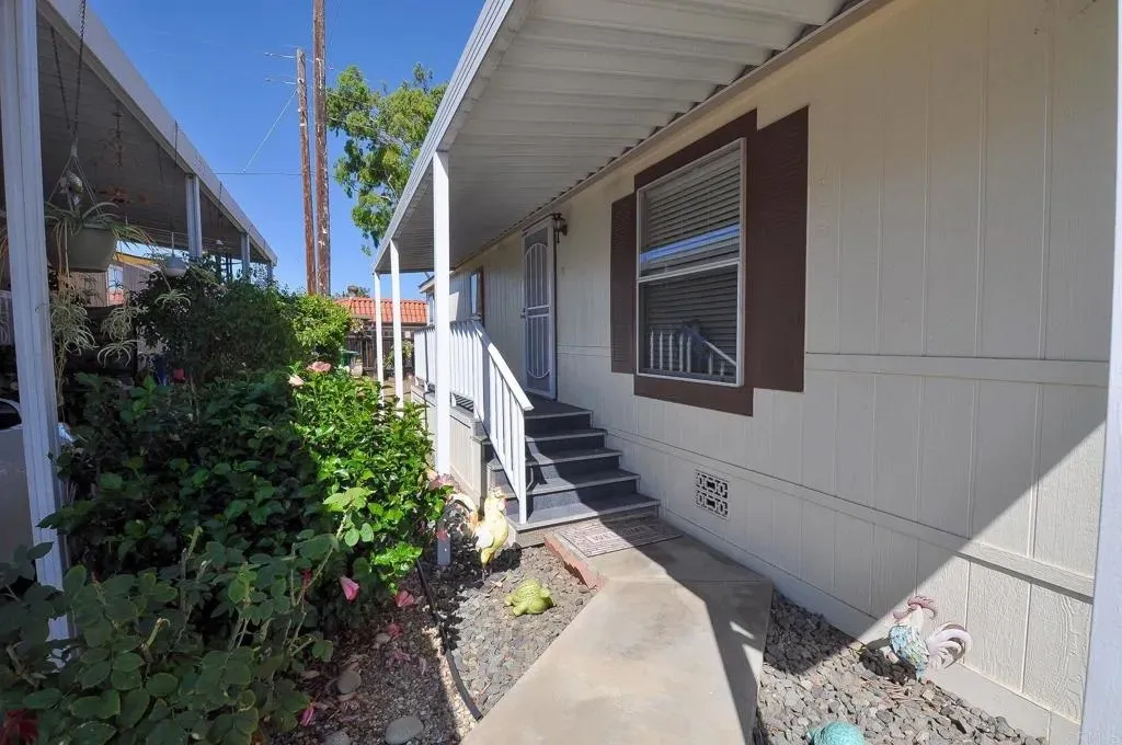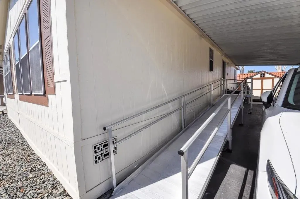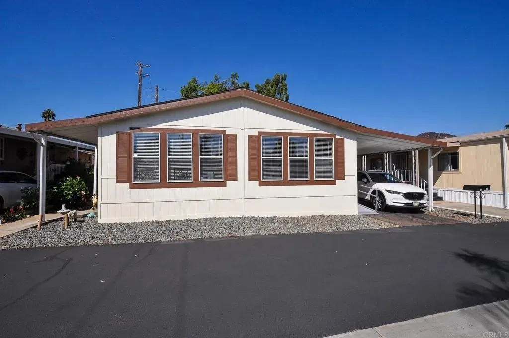 Beautifully renovated home located in one of East Countys most desirable and rare resident-owned, non-profit senior 55+ communities. This well-managed and impeccably maintained neighborhood offers resort-style amenities including a private dog park, pool, spa, clubhouse, and a vibrant calendar of social activities. With one of the lowest buy-ins in the area-just $6,000 (fully refundable upon sale) and a monthly space rent of only $615, this community is as affordable as it is welcoming. The home itself has been thoughtfully updated inside and out. Upgrades include a new roof (2024), new HVAC system with AC condenser (2023), new appliances and sink, new laminate flooring, and new Tuff shed. The spacious primary suite features an en-suite bathroom with a soaking tub and a generous walk-in closet. A built-in ramp in the carport area provides easy, convenient access to the front door. The private lot offers the perfect space to relax, BBQ, or entertain while enjoying peaceful sunsets. Additional highlights include a large 2-car covered driveway and convenient visitor parking directly across from the home. Great location has easy access to shopping, restaurants, and more.