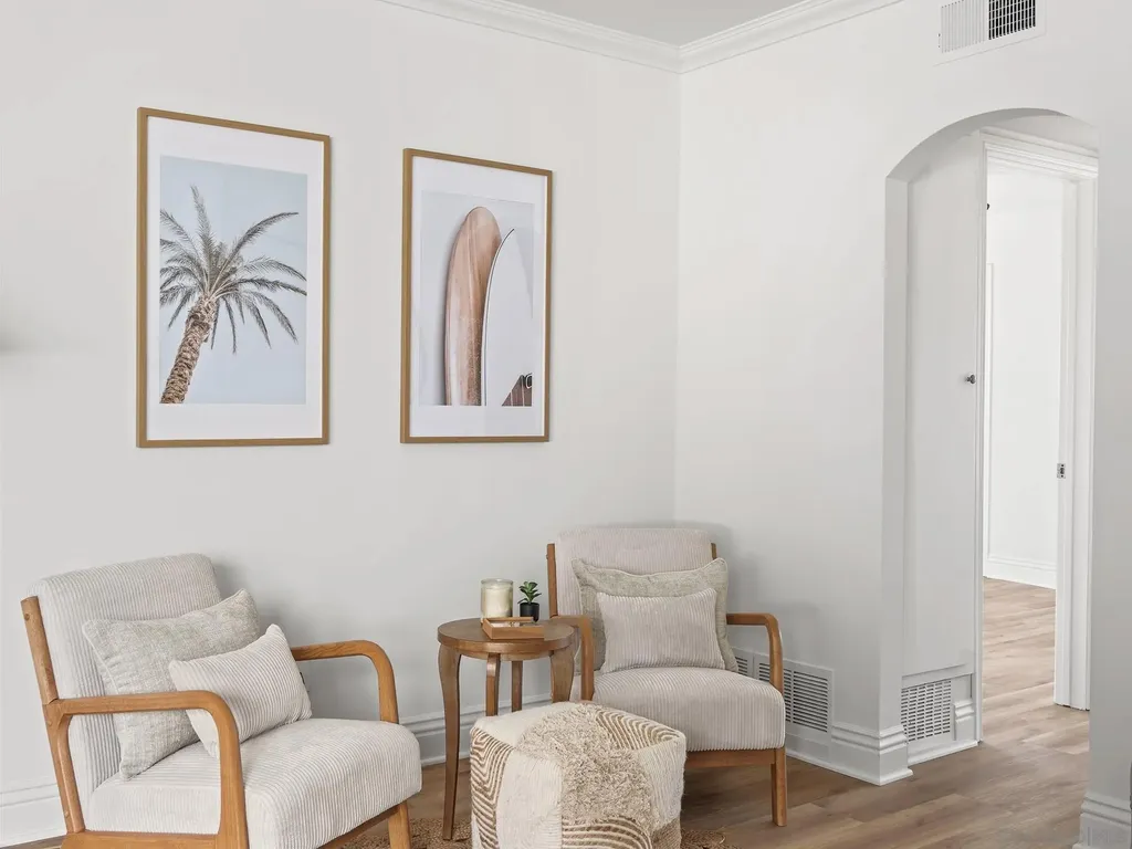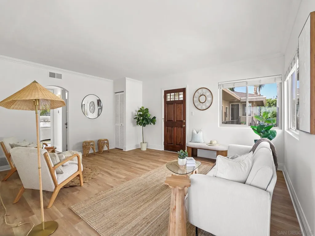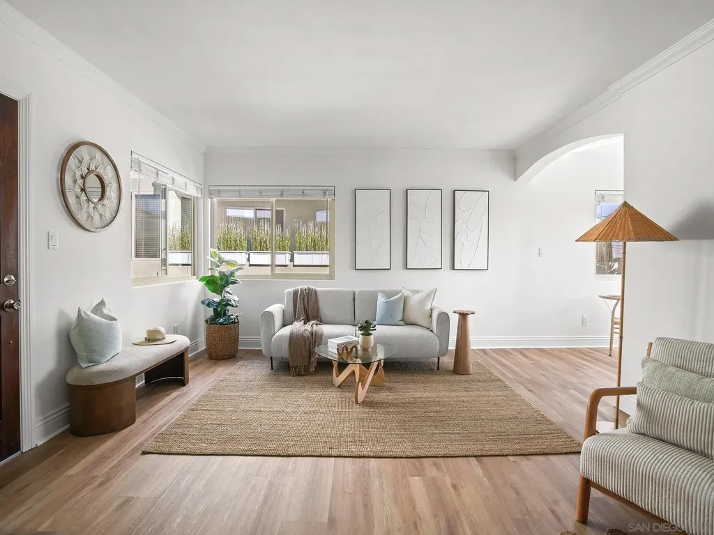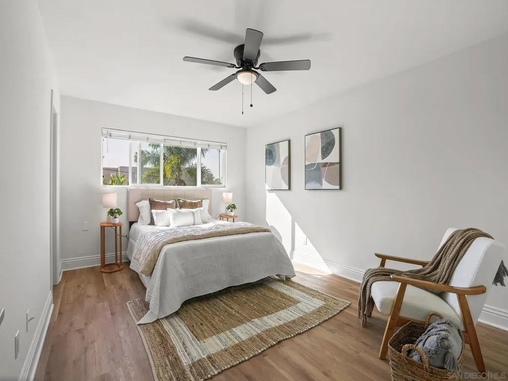 Just blocks from the sand and steps from the best of Pacific Beach, this top-floor, corner-unit condo offers bright, coastal living with no downstairs neighbor. The open layout features fresh paint, updated LVP flooring, and dual-pane windows that welcome natural light and ocean breezes. The kitchen shines with stainless steel appliances, granite countertops, and custom cabinetry. Both bedrooms offer walk-in closets, and the home includes in-unit laundry, a private one-car garage with storage, an additional parking space, and access to a shared storage room. The secure, pet-friendly building features gated entry, a BBQ courtyard, and attractively low HOA fees. Perfectly situated near popular caf s, restaurants, local shops, and entertainment, this well-maintained home is ideal as a full-time residence or turnkey coastal escape. Some additional recent upgrades in the complex include: New roof (2020), New windows on west facing wall (2020), New stucco, west-facing wall (2021) Water heater replacement (2022), Termite treatment (Feb 2023), Fence repairs/replacements (May 2022 & Oct 2024), New water meter (2022)