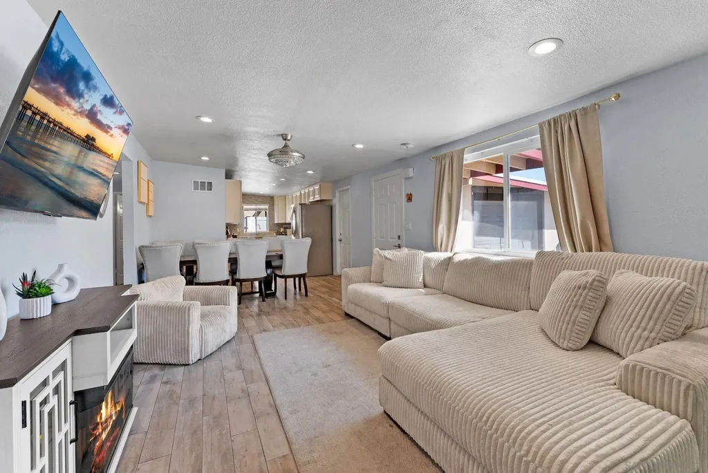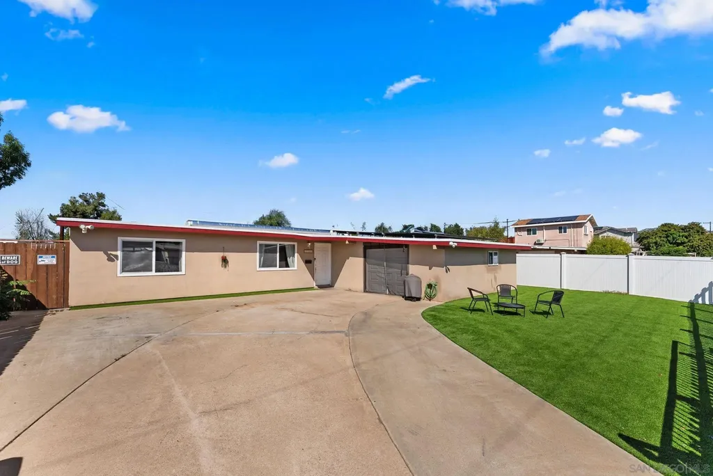 Step inside to 1362 Joliet St - a remodeled solar-powered home with a versatile bonus room & private outdoor oasis. This conveniently located and beautifully updated 3-bedroom, 2-bath home blends modern upgrades with everyday comfort. Enjoy a versatile bonus room - ideal for a home office, playroom, or extra living space in addition to a stylish galley-style kitchen featuring sleek cabinetry, modern appliances, and a built-in microwave. The home features bright and inviting rooms, dual-pane windows, contemporary flooring, and recessed lighting throughout. The primary suite includes backyard access through a sliding glass door, while the epoxy-finished oversized garage provides ample parking and storage. Step outside to a spacious, fully fenced, yard designed for easy living with low-maintenance artificial turf and a private outdoor seating area under a canopy in the front of the house. Additional highlights include a 3-car driveway and solar panels for energy efficiency. Perfectly located just off N 2nd St. and Jamacha Rd. with quick access to the 8 Freeway, this move-in ready home delivers the ideal combination of style, functionality, and convenience. Come have a look!